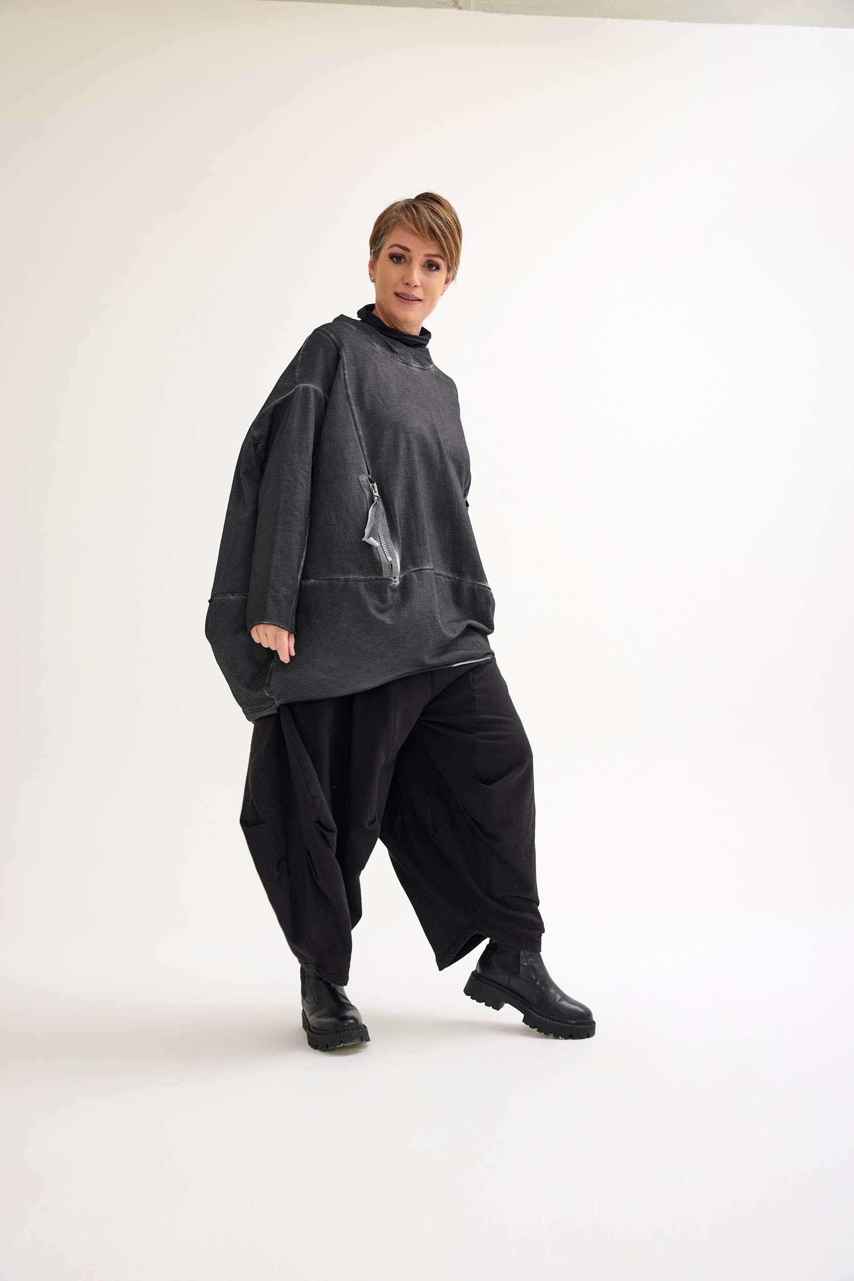 Oversize Hooded Tunic – Relaxed Fit, Double-Zip, Modern Comfort This oversize hooded tunic is designed with a relaxed silhouette and crafted from soft, washed fabric for a casual yet refined feel. Featuring a double-ended front zipper and two practical zippered pockets, it blends functionality with contemporary style. Dropped shoulders and an easy hood with drawstring enhance its laid-back character, while the oversized cut ensures all-day comfort. Perfect for layering or wearing solo, it’s a versatile staple for effortless everyday outfits. Key features: Oversize fit with dropped shoulders Double-ended front zipper Two functional front zip pockets Hood with drawstring Washed cotton-blend fabric for comfort A modern essential that combines ease, practicality, and style — ideal for casual wear with a contemporary twist.