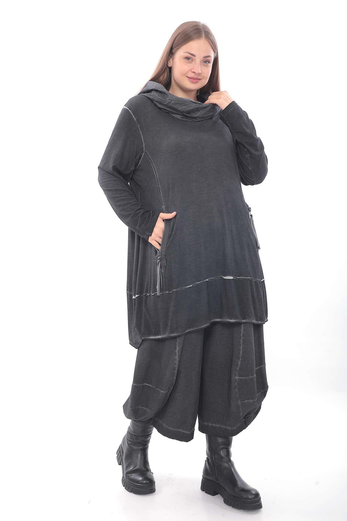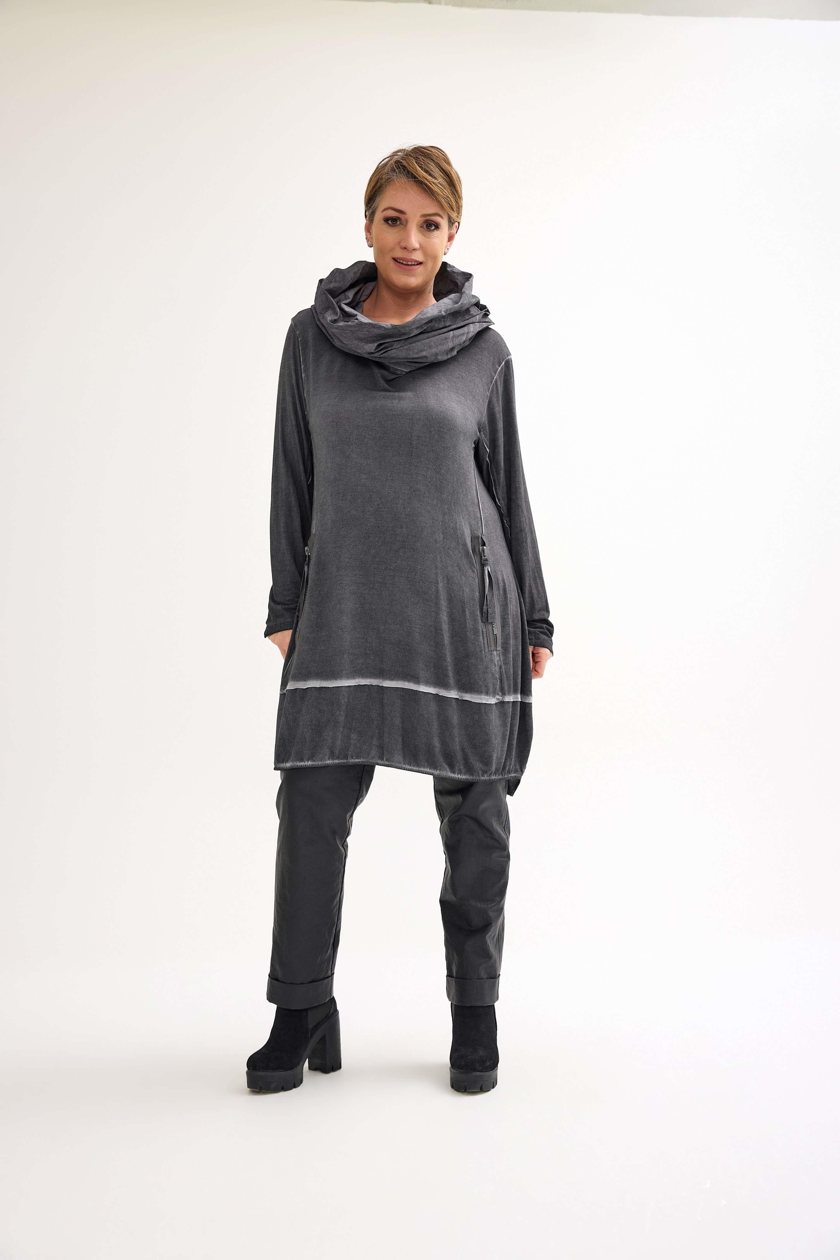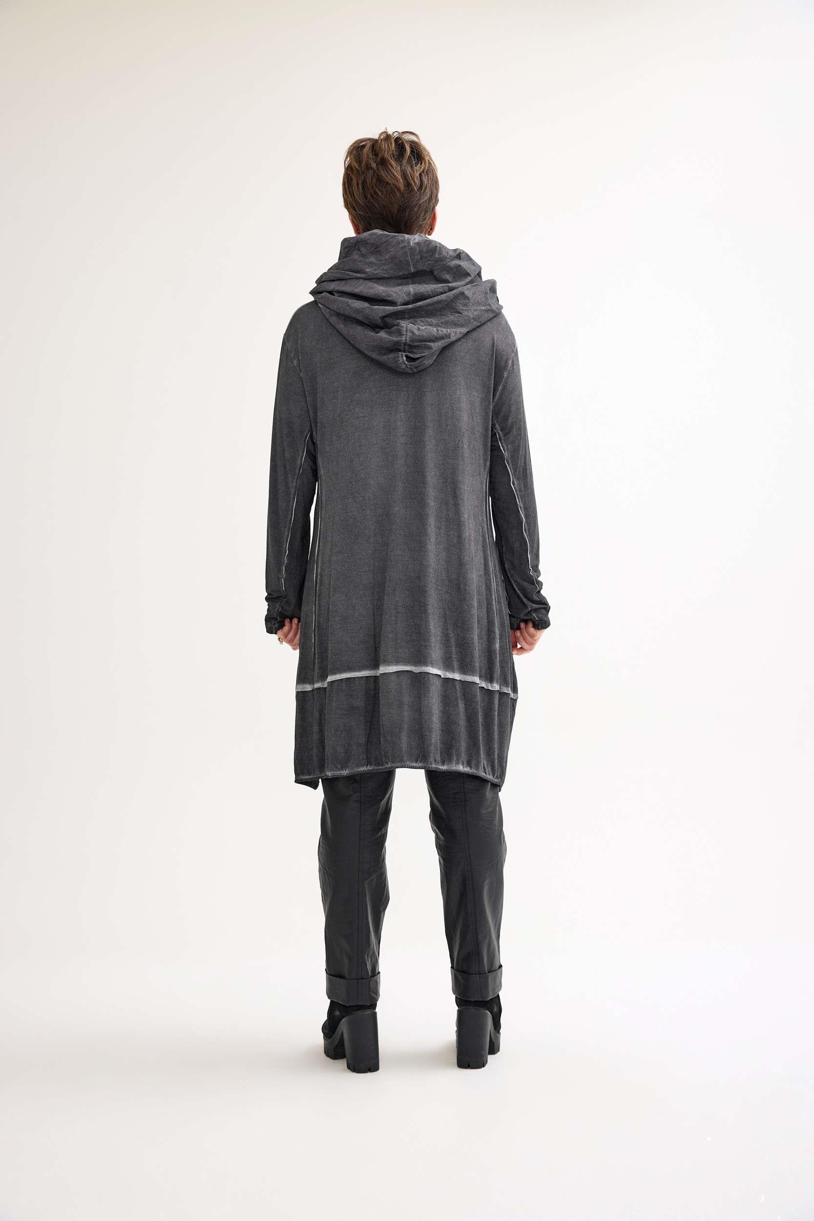 Oversized Viscose Tunic with Hood, Zippered Pockets, and Long Sleeves A relaxed-fit viscose tunic featuring a roomy hood, bold zippered pockets, and long sleeves, designed in an oversized silhouette for versatile and comfortable everyday wear.