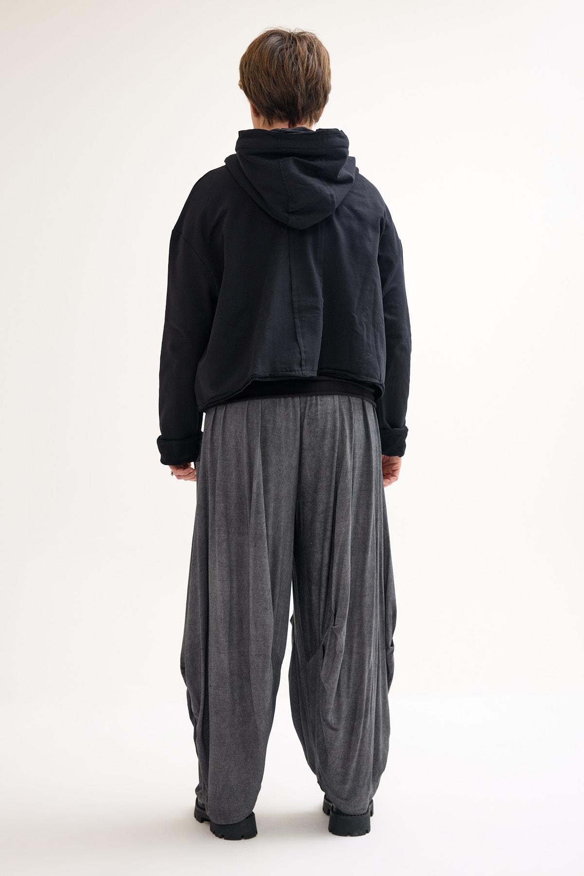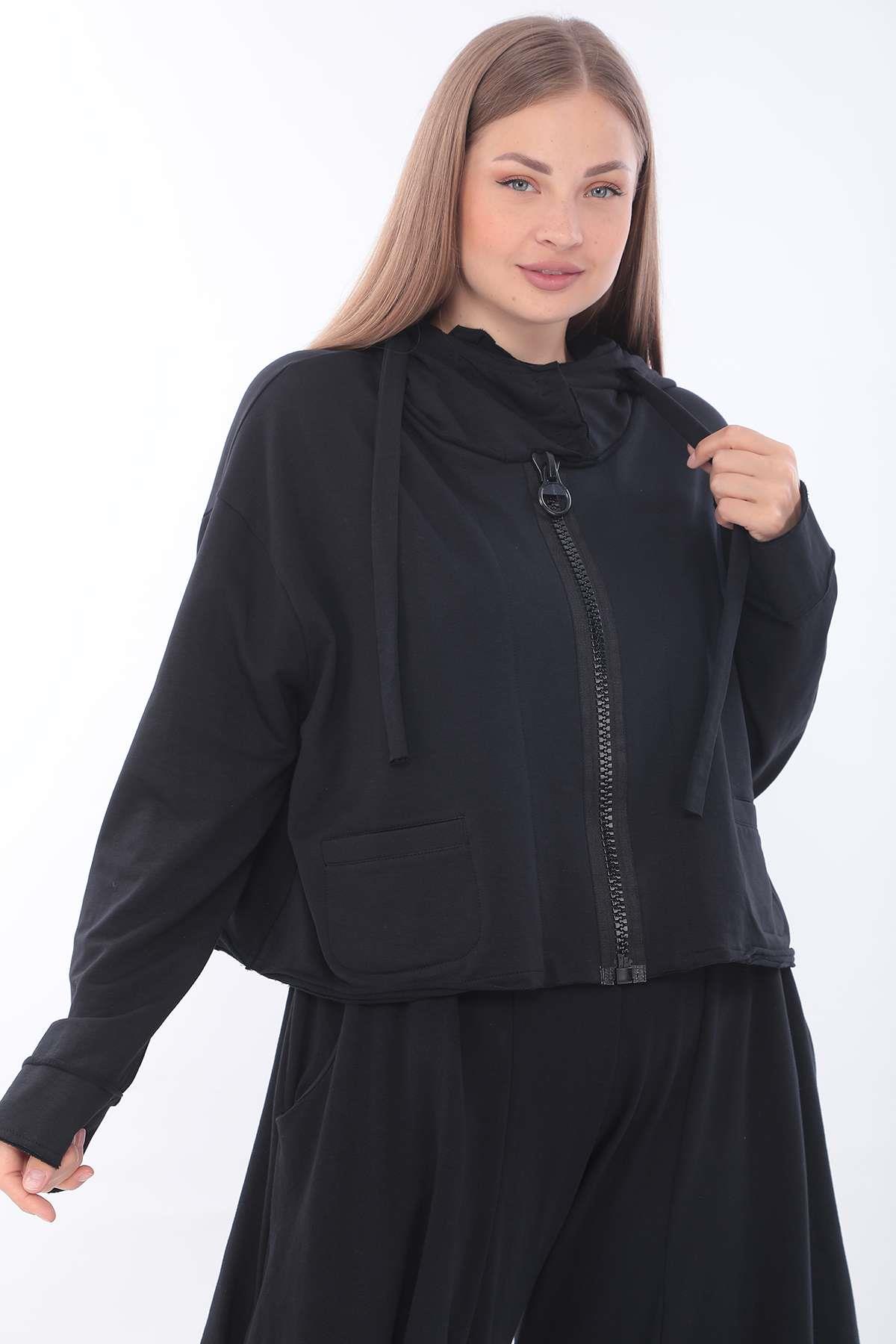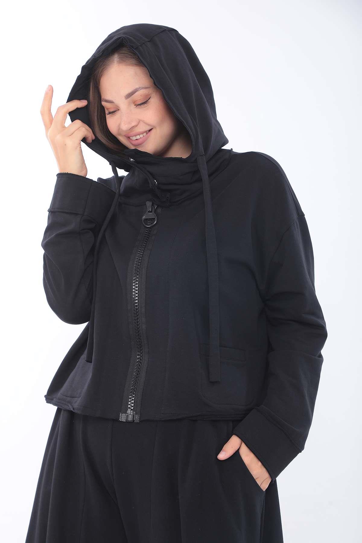 Oversized Hooded Sweat Jacket with Extra-Large Zipper A relaxed oversized sweat jacket featuring a bold front zipper and roomy hood, combining everyday comfort with a modern avant-garde edge.