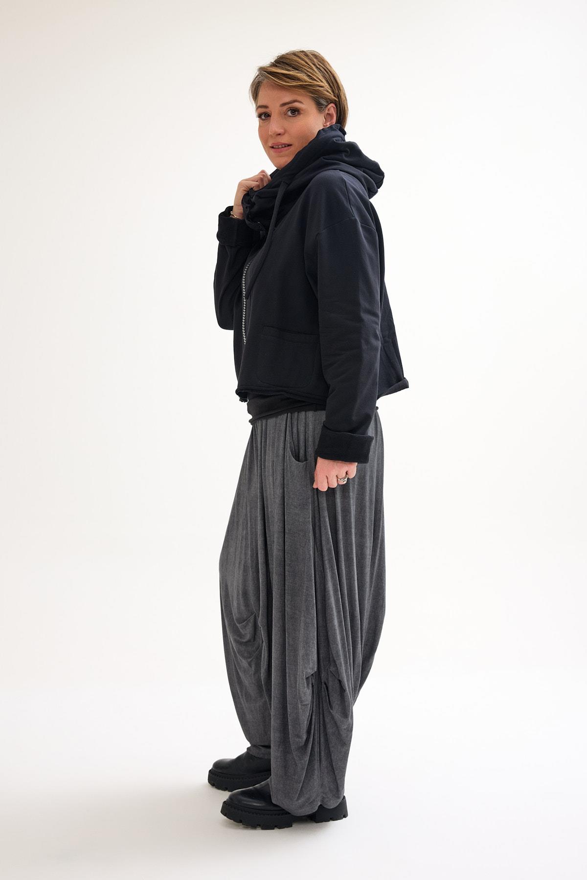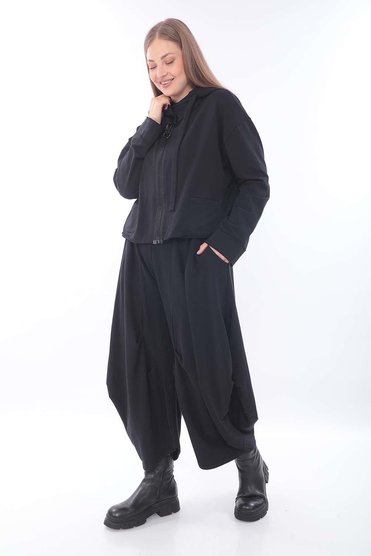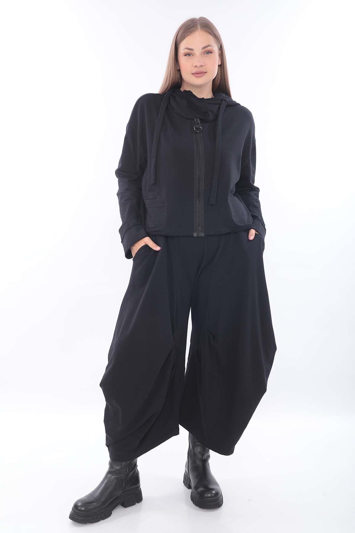 Oversized Hooded Sweat Jacket with Extra-Large Zipper A relaxed oversized sweat jacket featuring a bold front zipper and roomy hood, combining everyday comfort with a modern avant-garde edge.