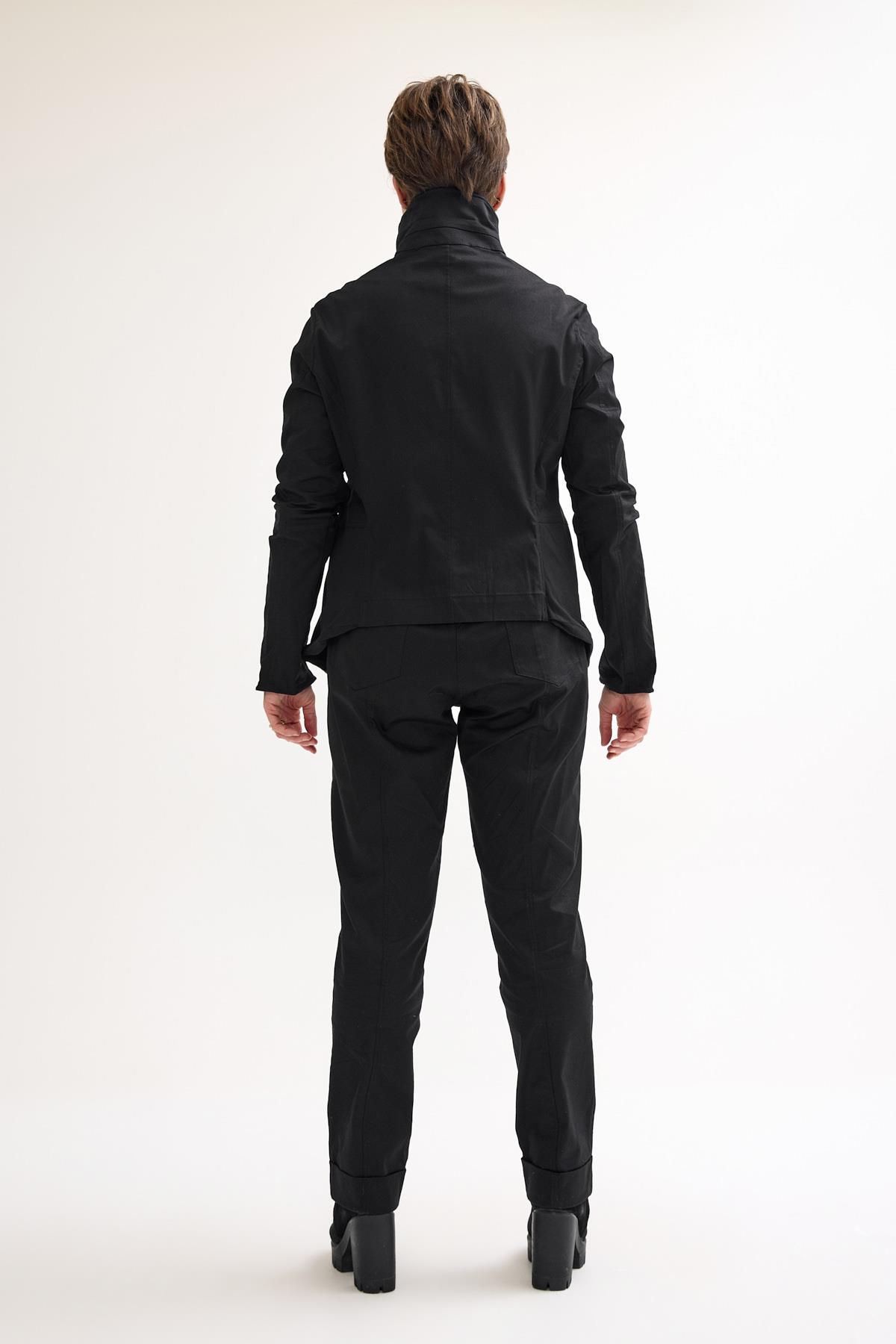 Cotton Jacket – Adjustable Wire Collar & Sleeves, Modern Detailing This cotton jacket combines functionality with a contemporary edge. Designed with an adjustable wire detail in the collar and sleeves, it allows you to shape and style the silhouette as you wish. Hidden snap buttons at the front provide a clean finish, while zippered pockets add both practicality and modern flair. Crafted from stretch-cotton fabric, the jacket ensures comfort and flexibility, making it perfect for layering throughout the seasons. Key features: Adjustable wire detail in collar and sleeves Concealed snap button fastening Functional zippered pockets Stretch-cotton fabric for ease of movement 95% cotton, 5% elastane A versatile and stylish piece that blends innovative tailoring with everyday wearability.