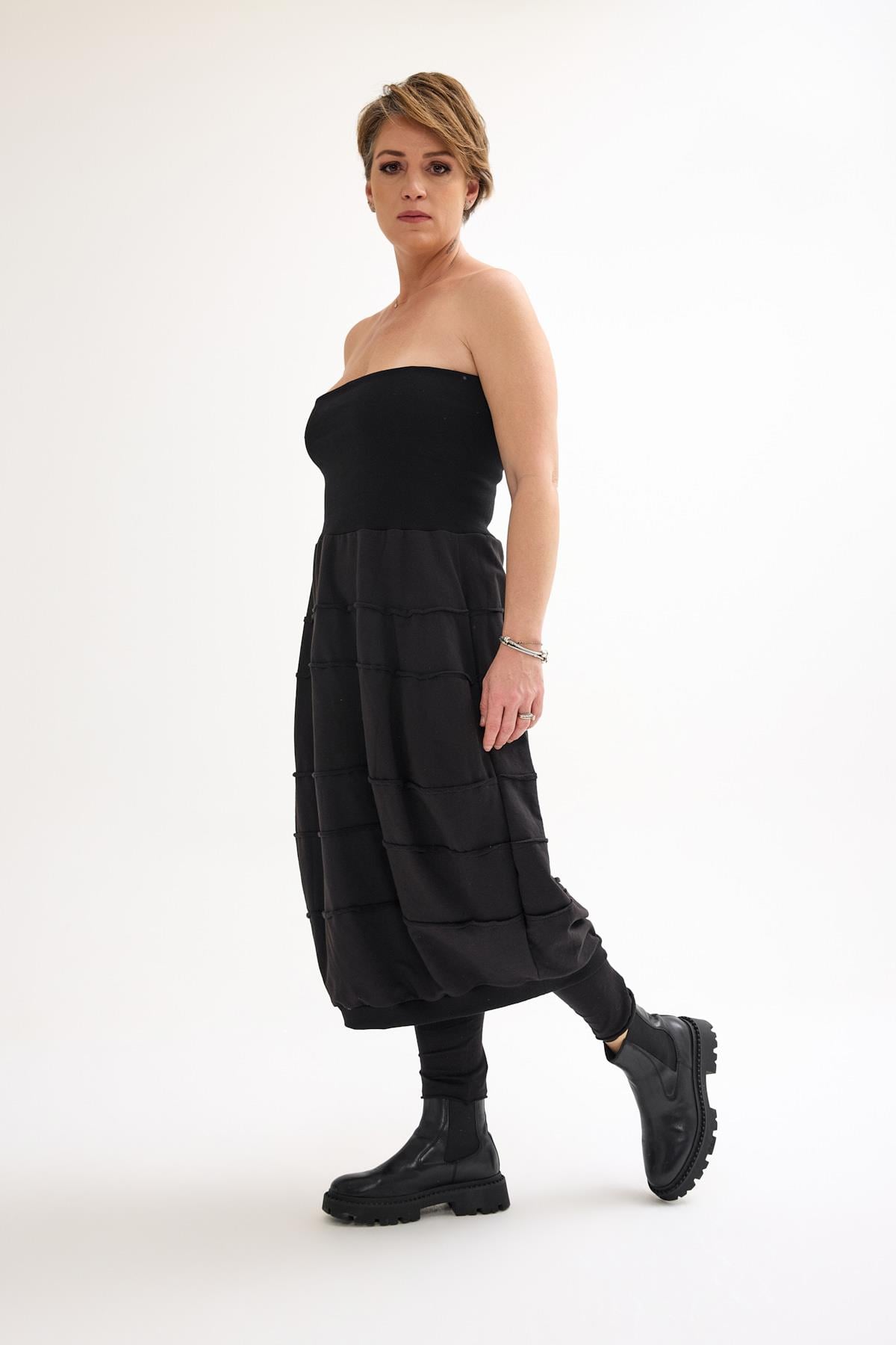 This avant-garde cotton skirt features a tulip-shaped silhouette with decorative seams, a ribbed jersey waistband, and side pockets with concealed zippers. Finished with a cuffed hem, it combines everyday comfort with modern design.