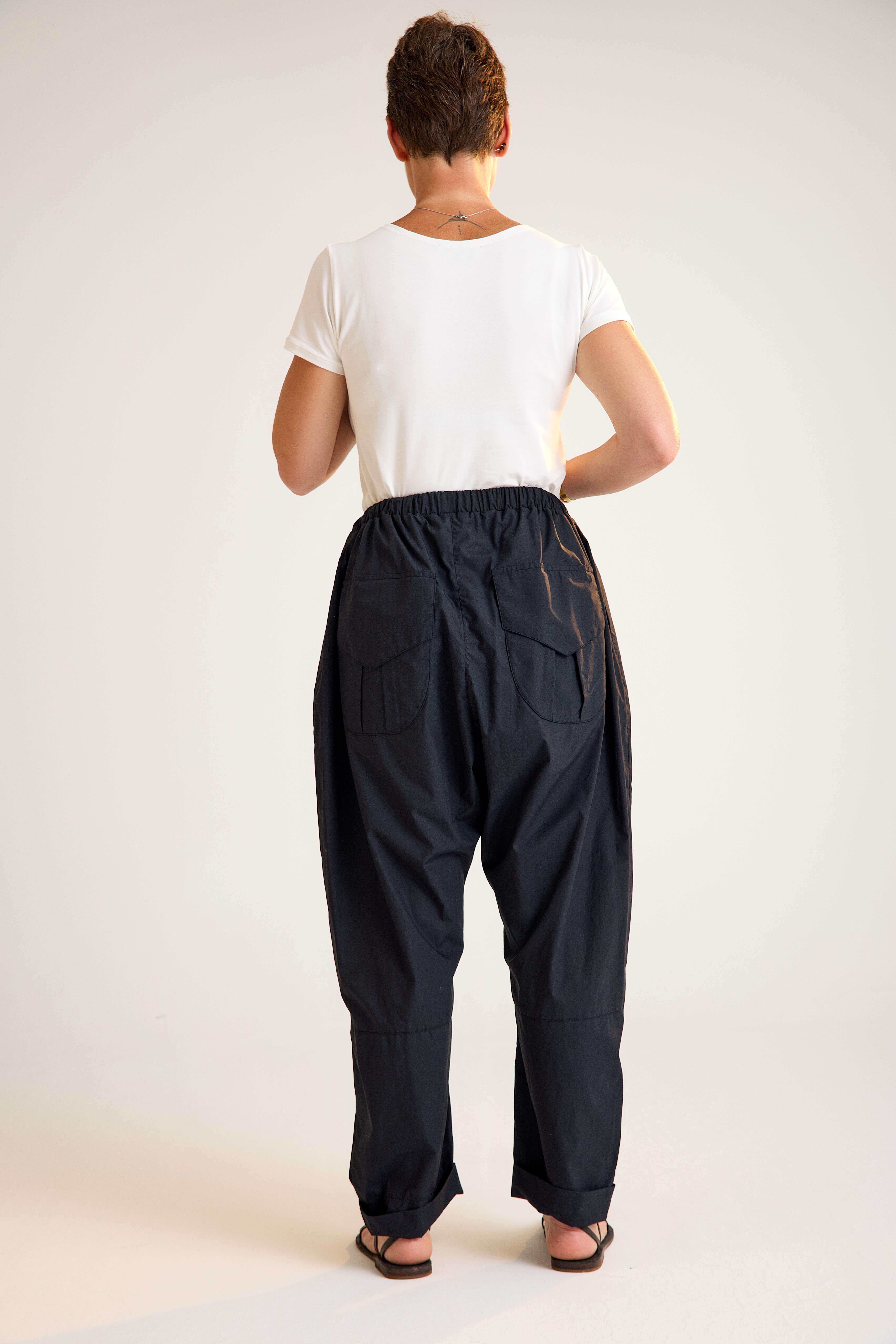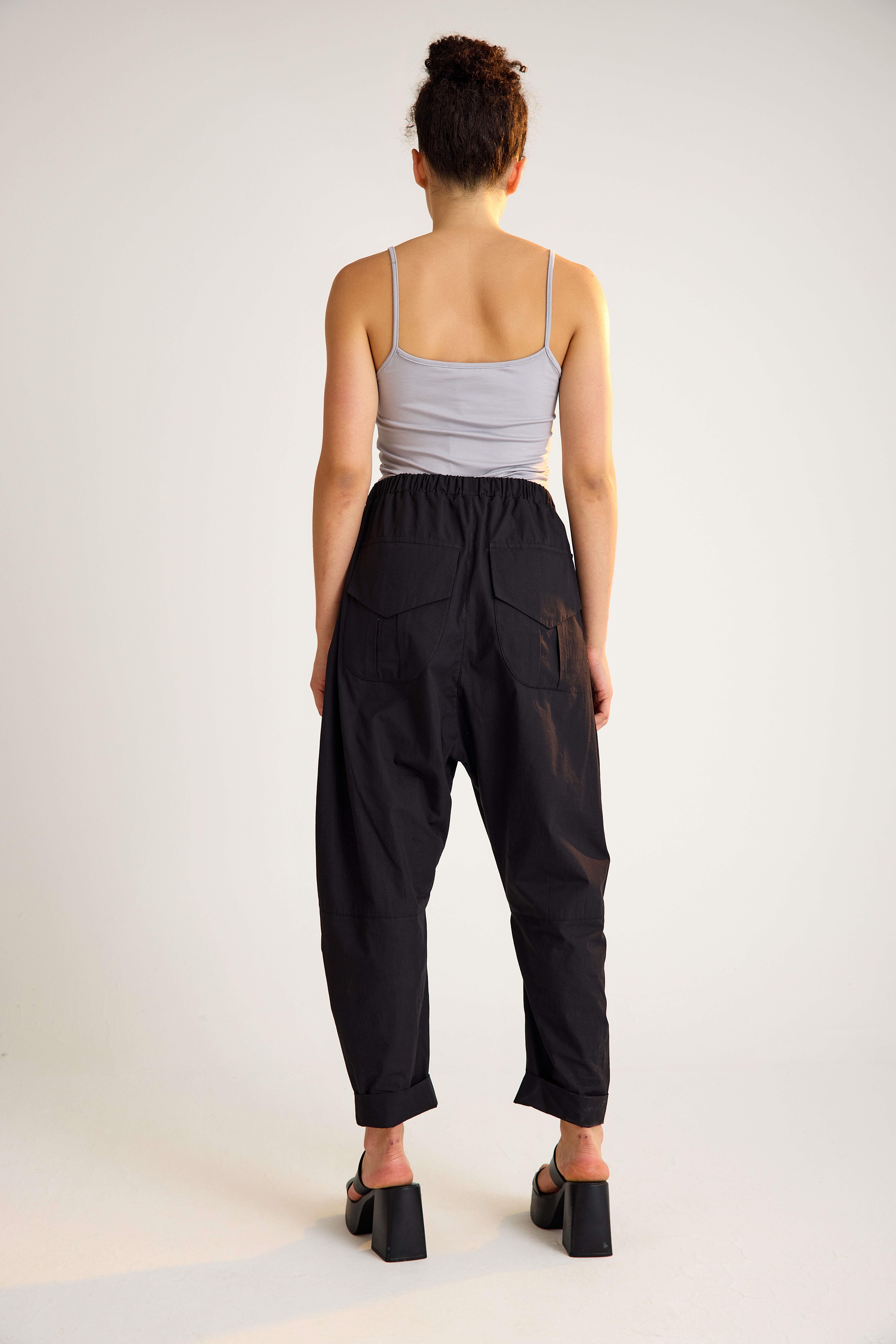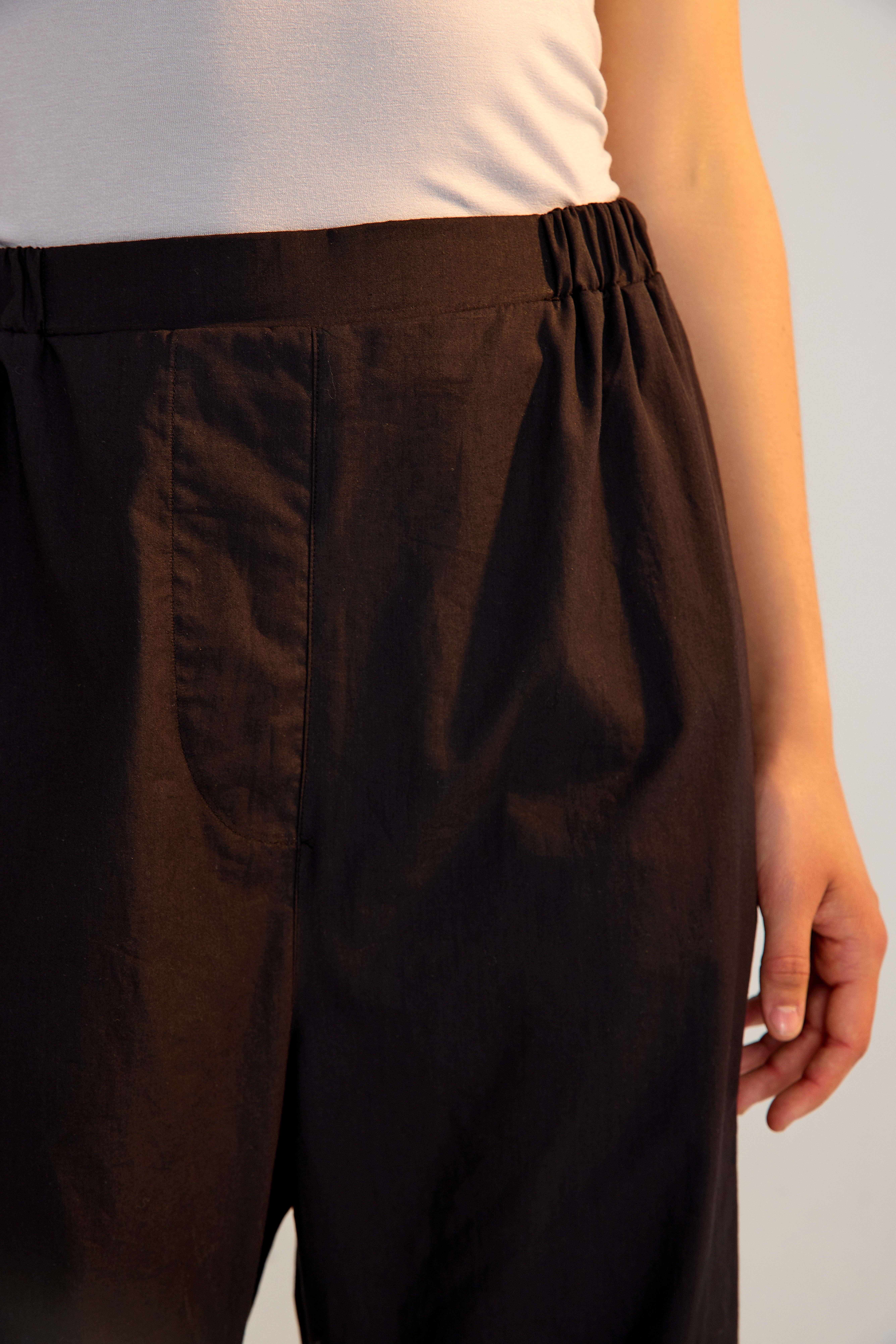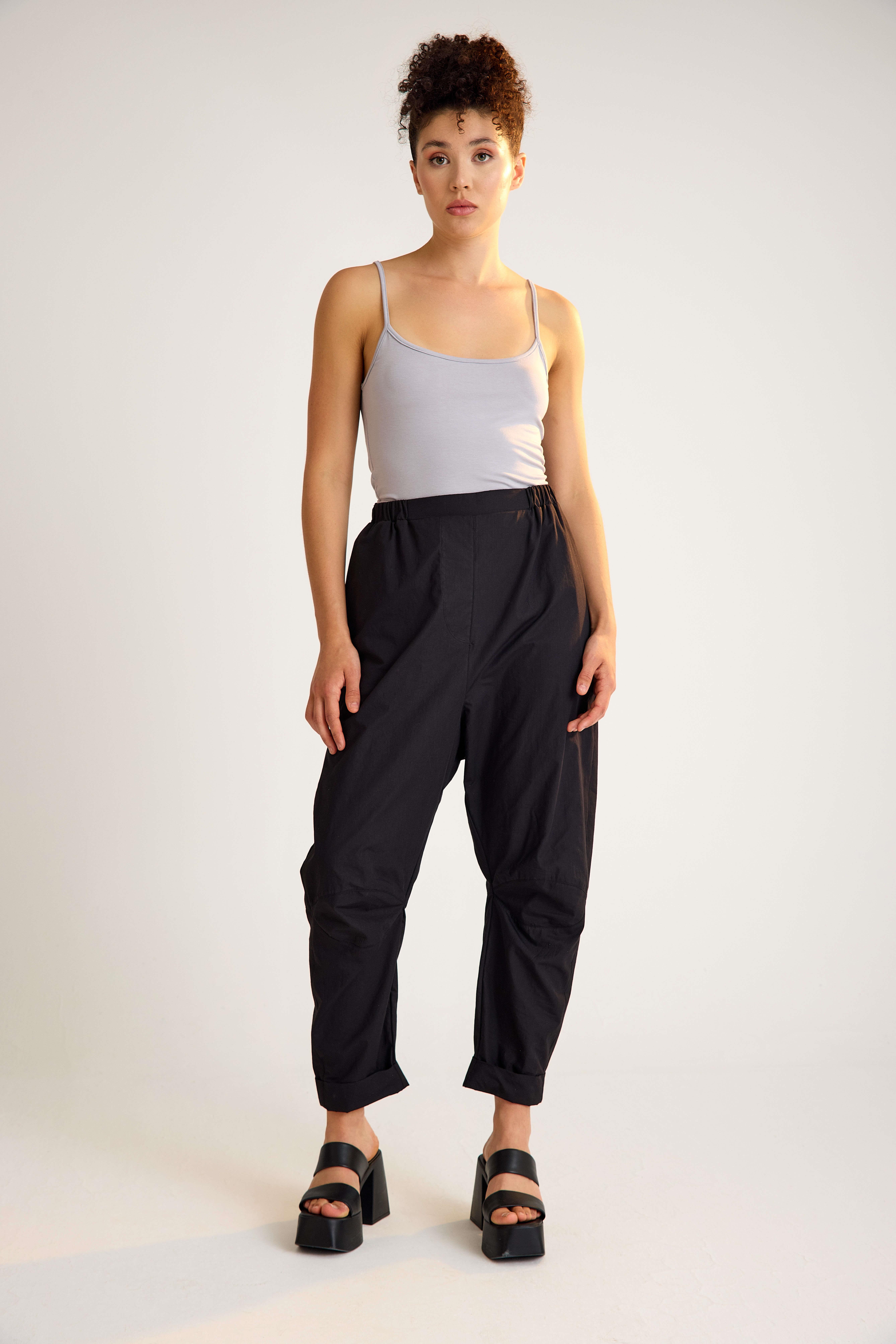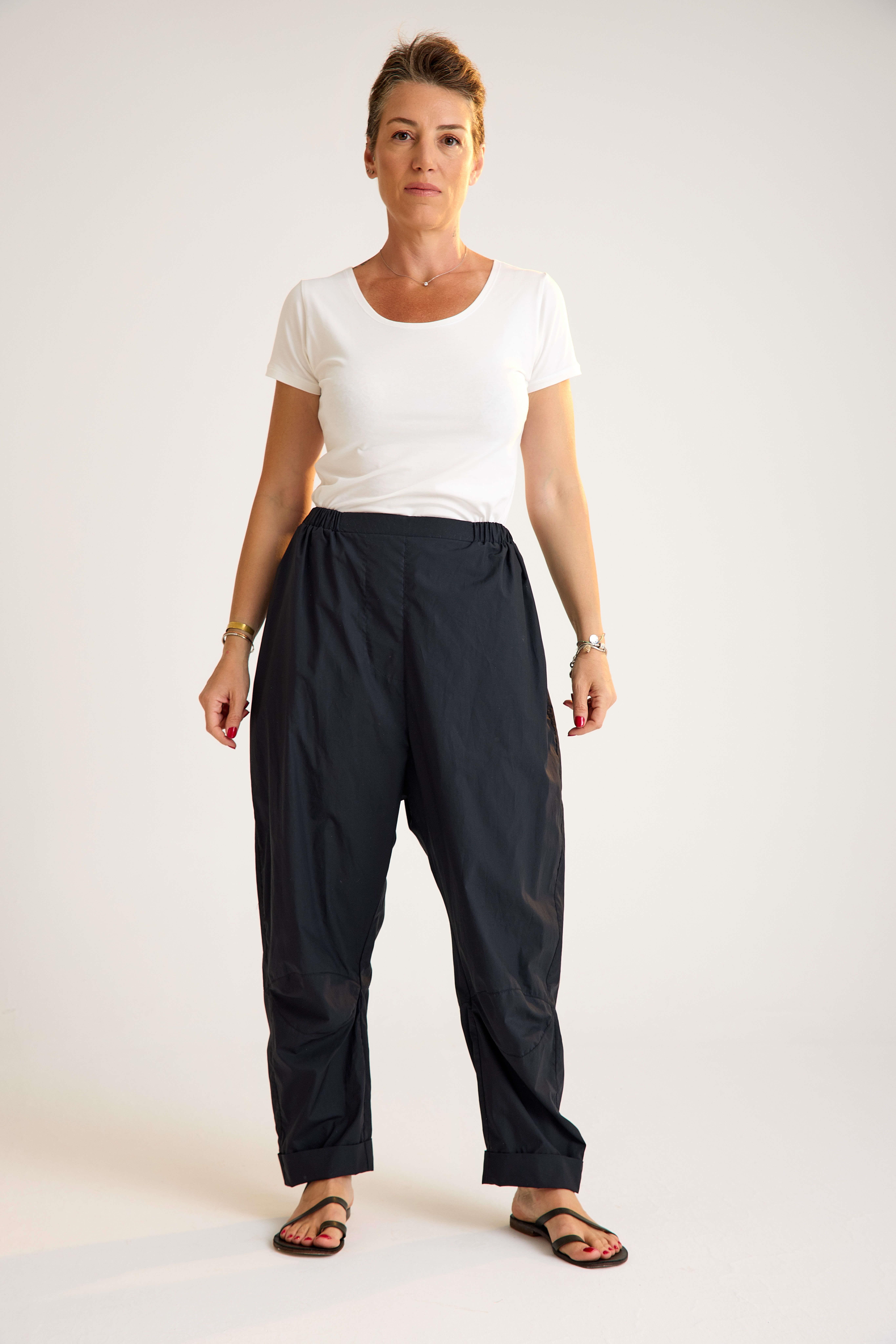 Cotton trousers with an elastic waistband – a comfortable and versatile essential, styled with a timeless avant-garde touch. Perfect for wholesale collections and retail fashion buyers.
