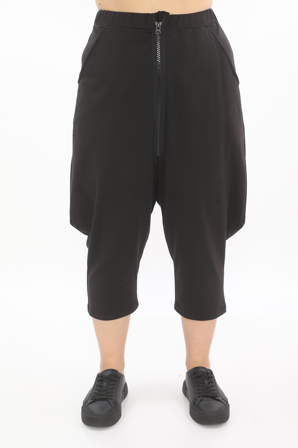 Midi Cotton Trousers with Large Zipper and Pockets Comfortable cotton midi trousers featuring oversized zipper detailing, practical pockets, and a relaxed salopette-inspired silhouette for versatile everyday wear.