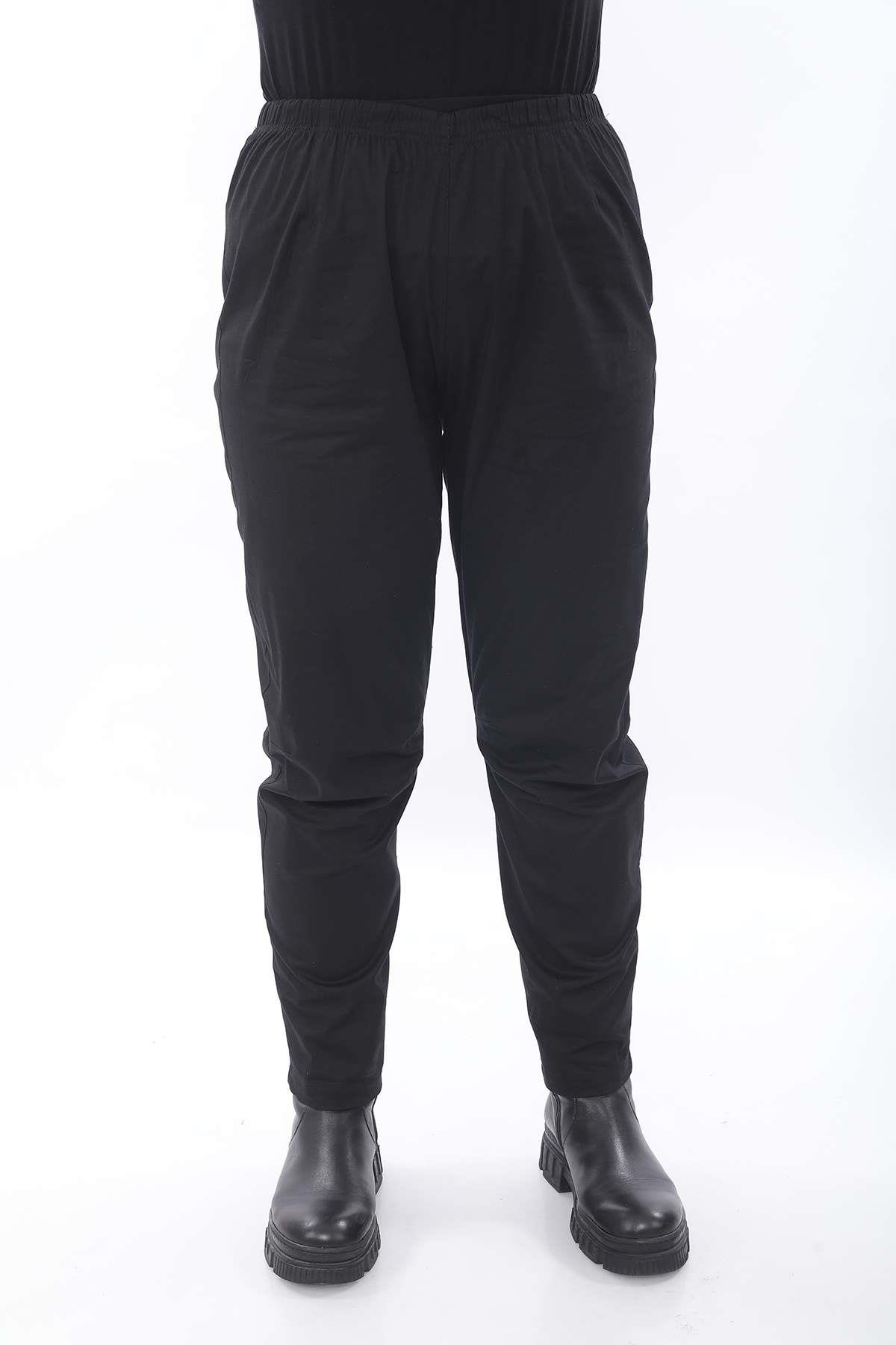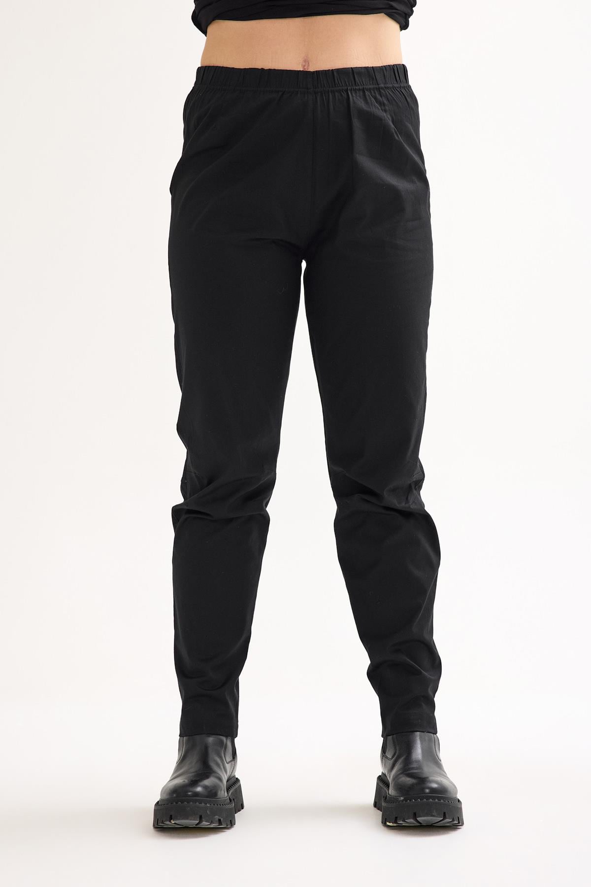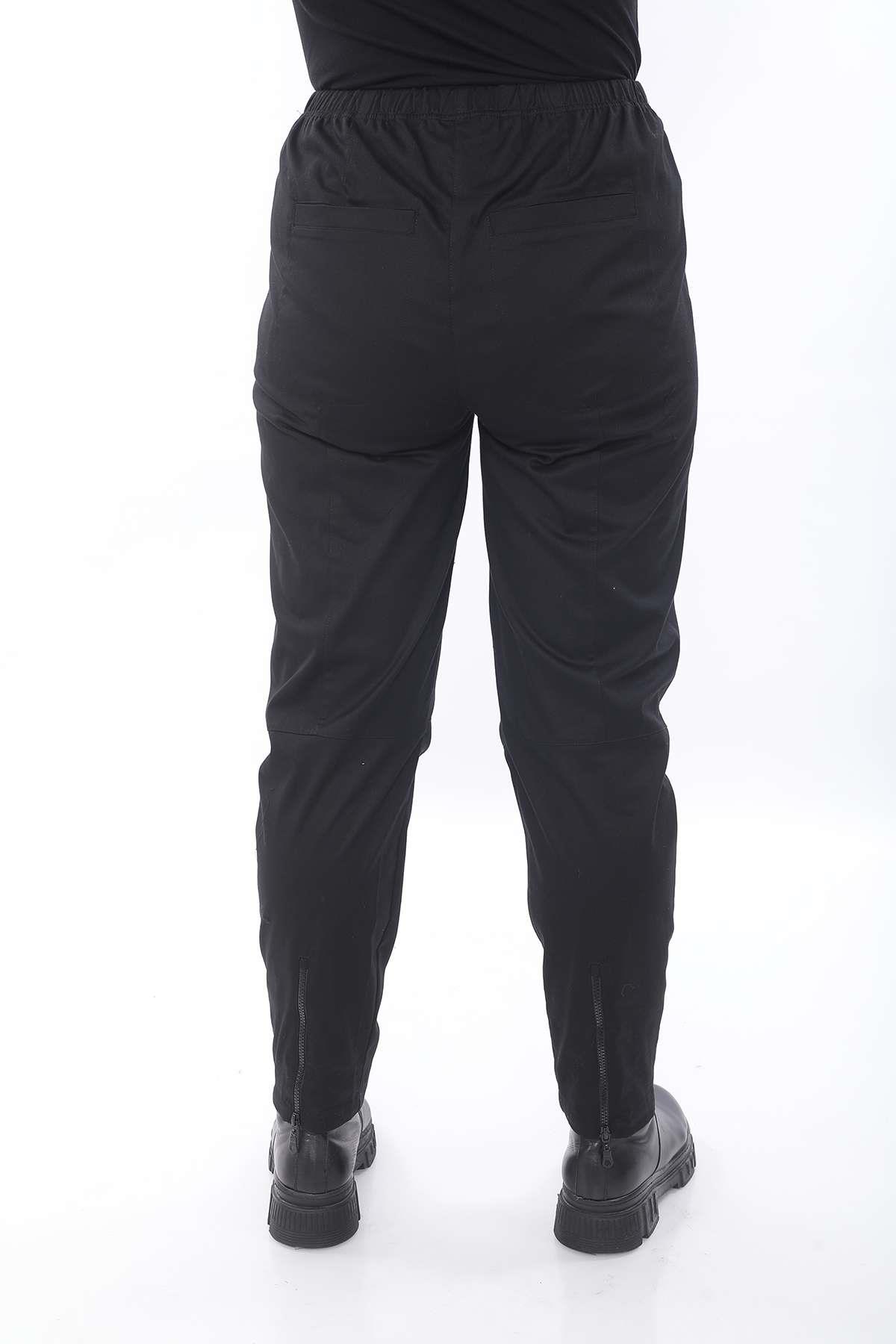 Straight-cut cotton trousers with an elastic fit, featuring back-zip details at the hem. Designed for a sleek yet comfortable silhouette, perfect for versatile styling.