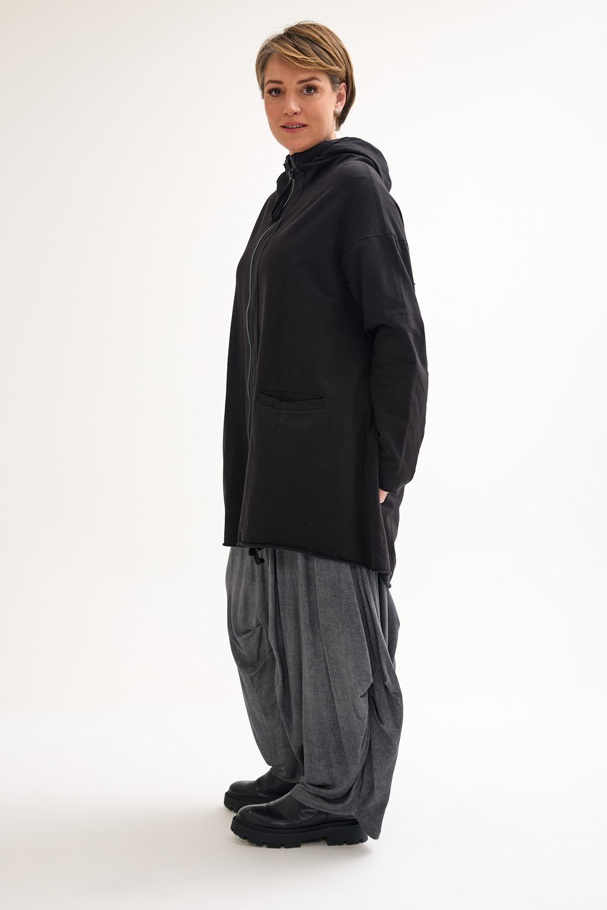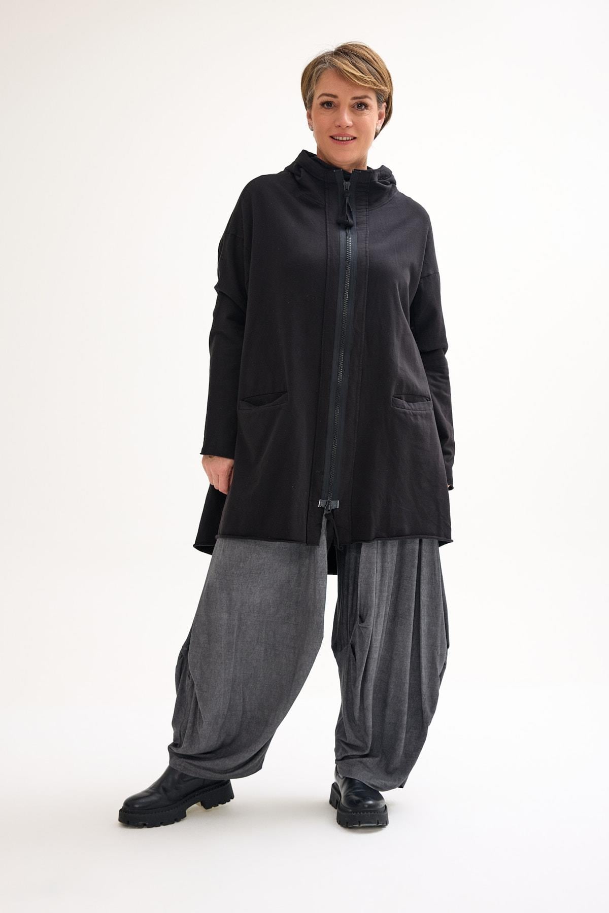 Oversized Cotton Jacket with Double-Sided Zipper and Pockets An oversized cotton jacket featuring a bold two-way zipper and functional front pockets, designed for a relaxed fit and versatile everyday styling.