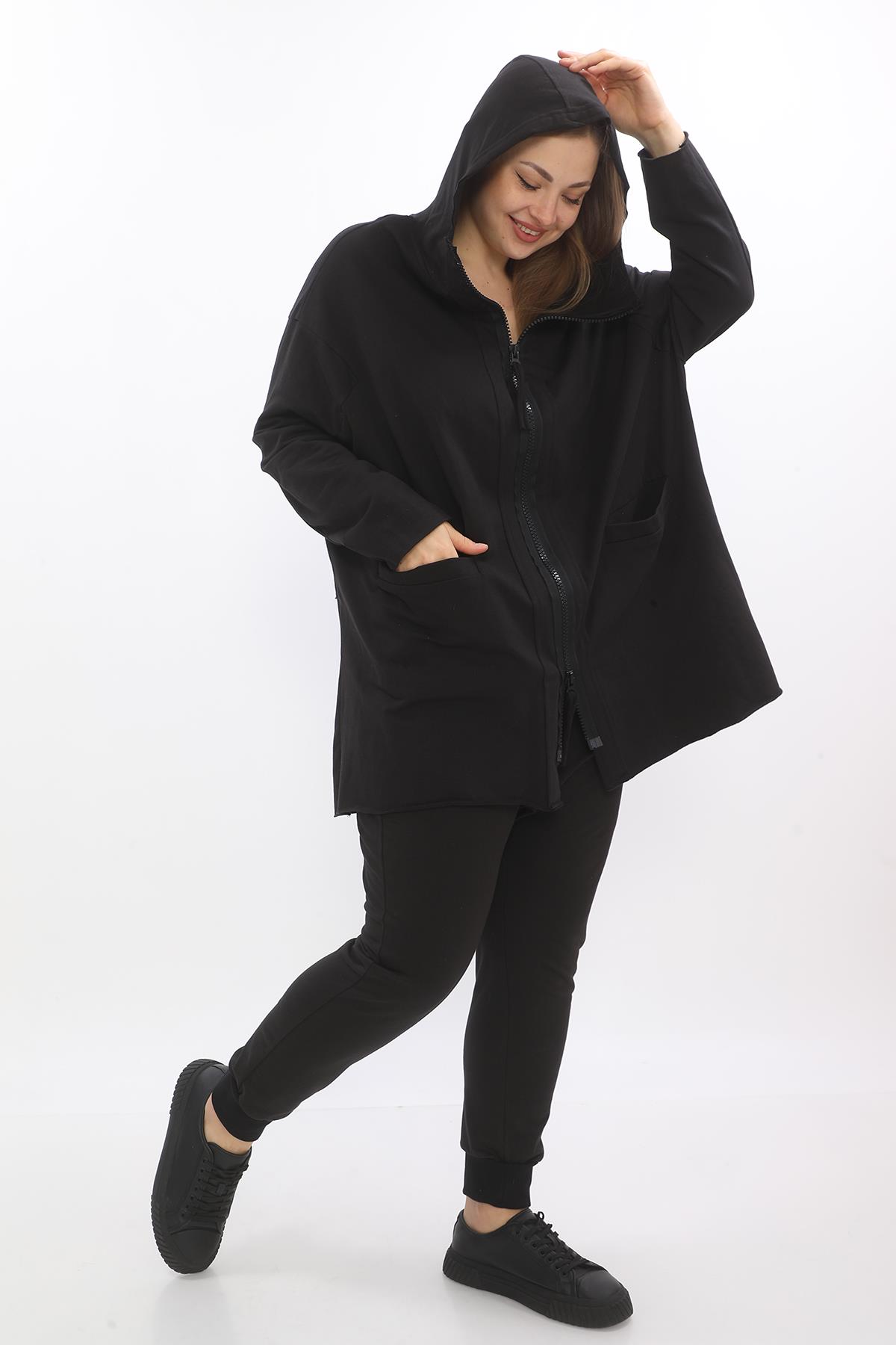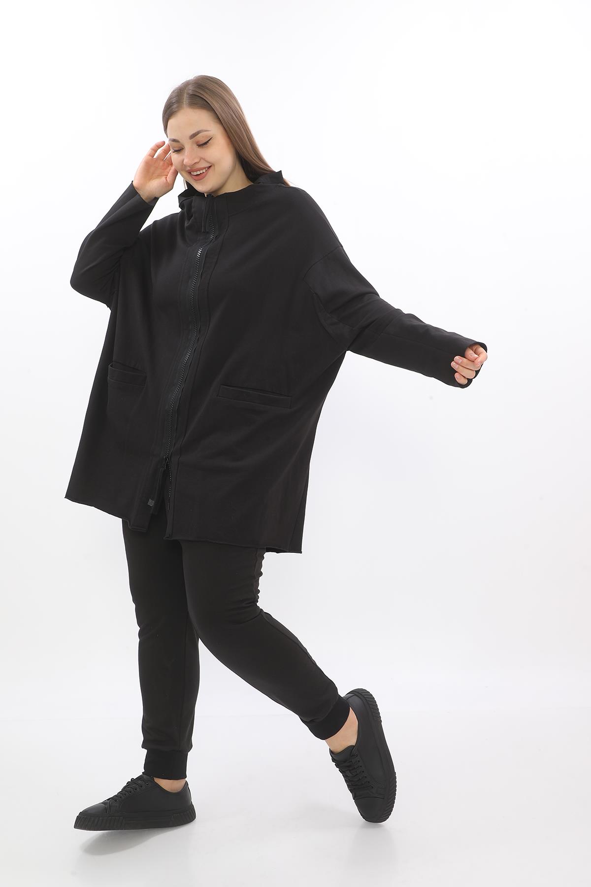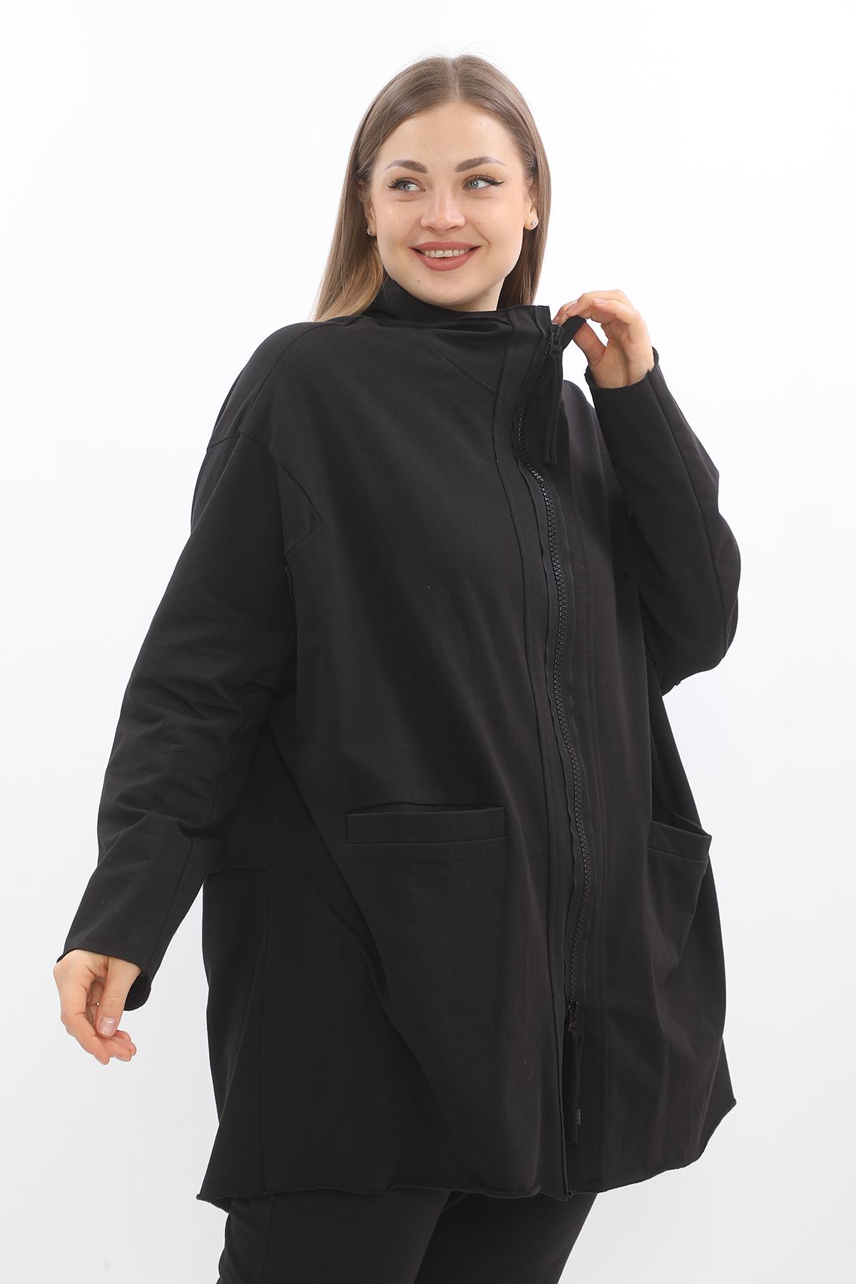 Black Oversize Cotton Jacket (24512)