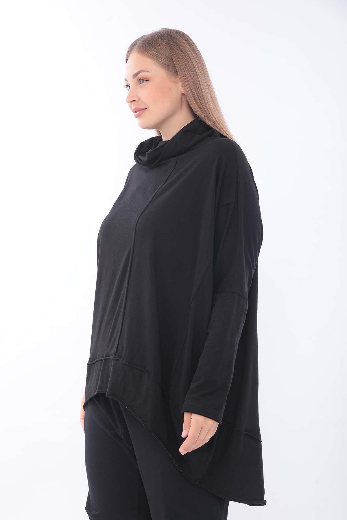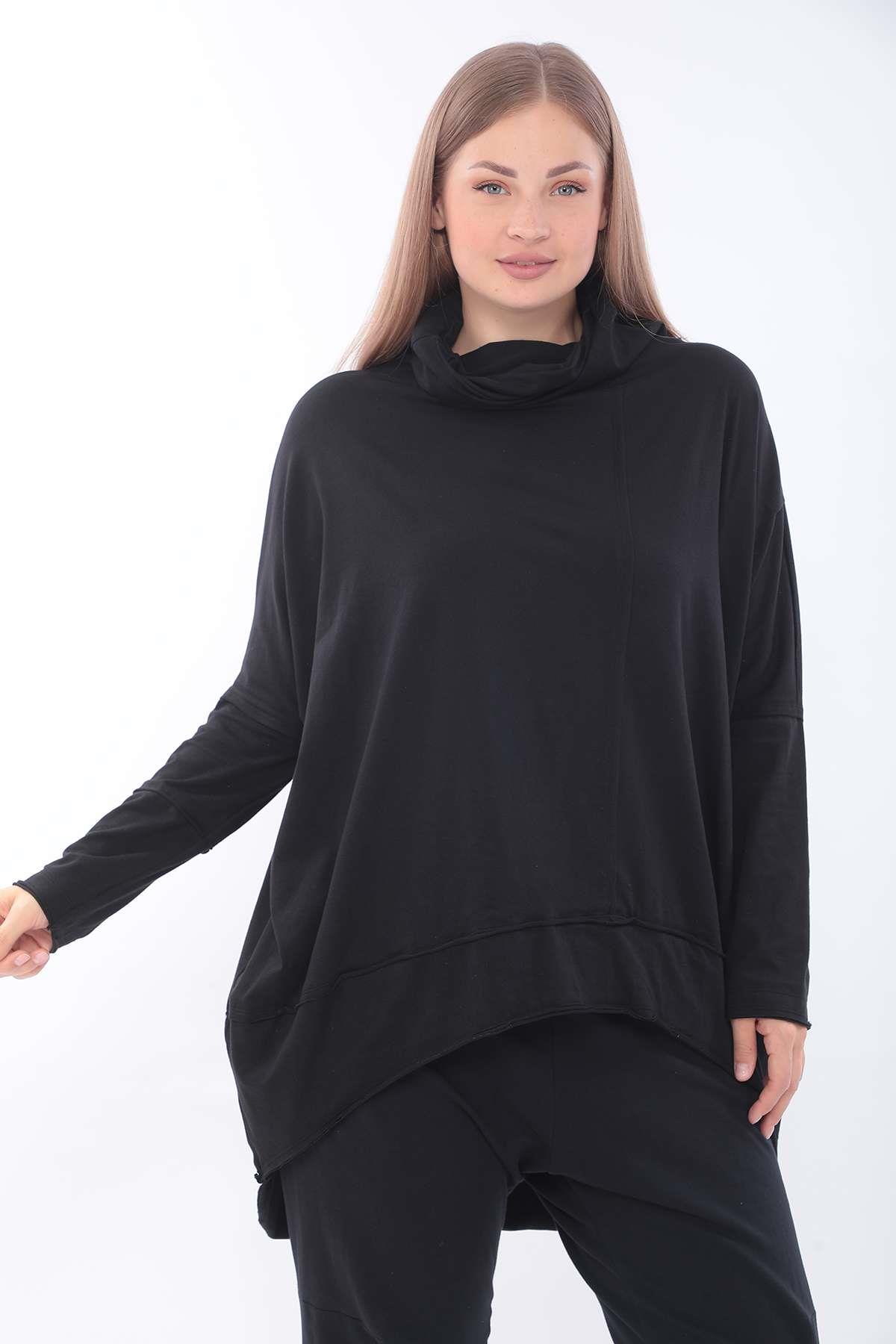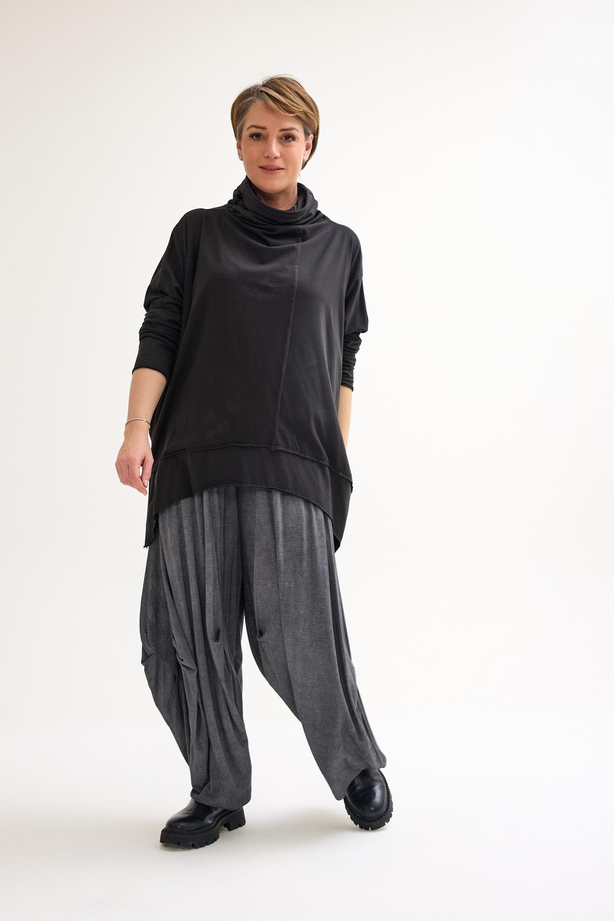 Oversized Cotton Tunic with Draped Neckline and Asymmetric Hem An avant-garde cotton tunic featuring a relaxed draped neckline, long sleeves, and a high-low asymmetric cut, designed in an oversized silhouette for modern everyday style.