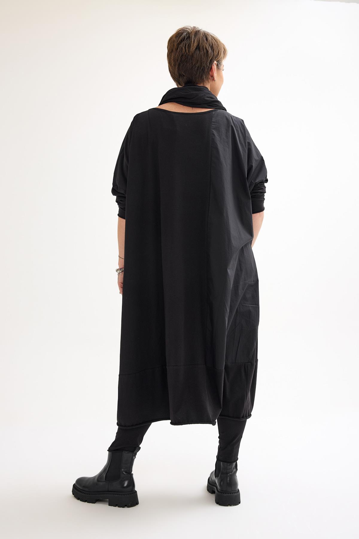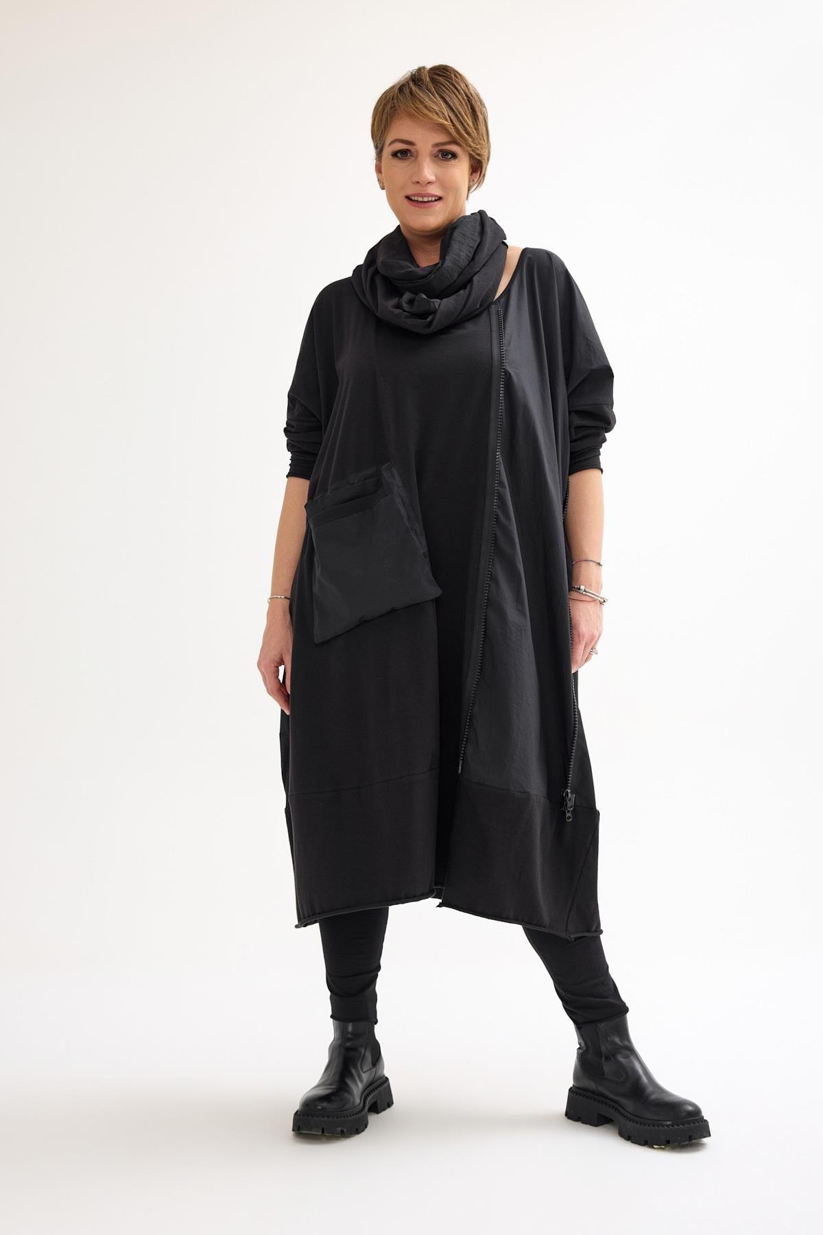 Oversized Viscose Dress with Adjustable Side Zippers and Pocket Detailing This avant-garde viscose dress features full-length two-way side zippers that allow the silhouette to be adjusted for added width, paired with oversized decorative pockets. Designed with a relaxed round neckline, extended shoulders, and raw edge finishes, it blends everyday comfort with a bold, contemporary tulip-inspired cut.
