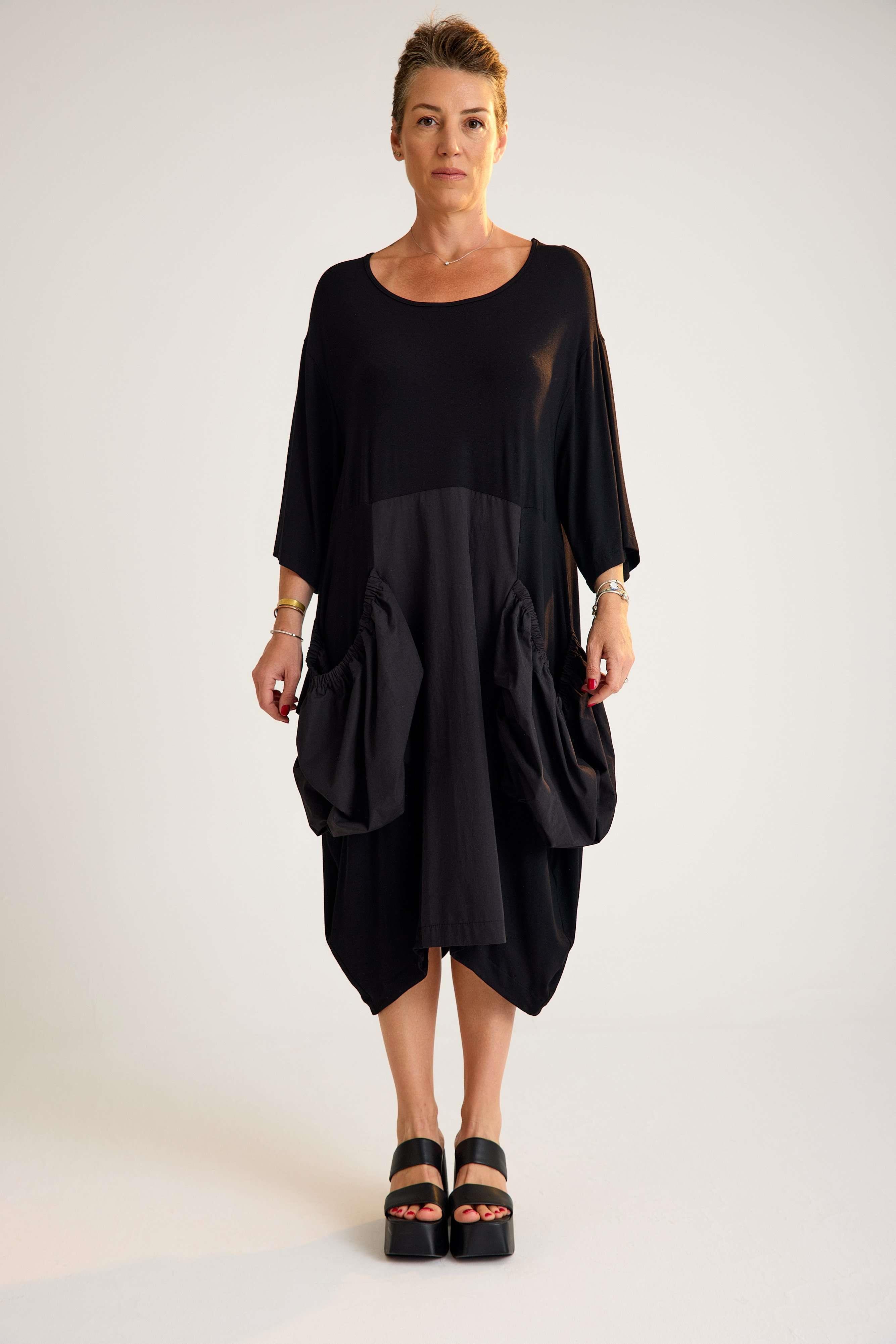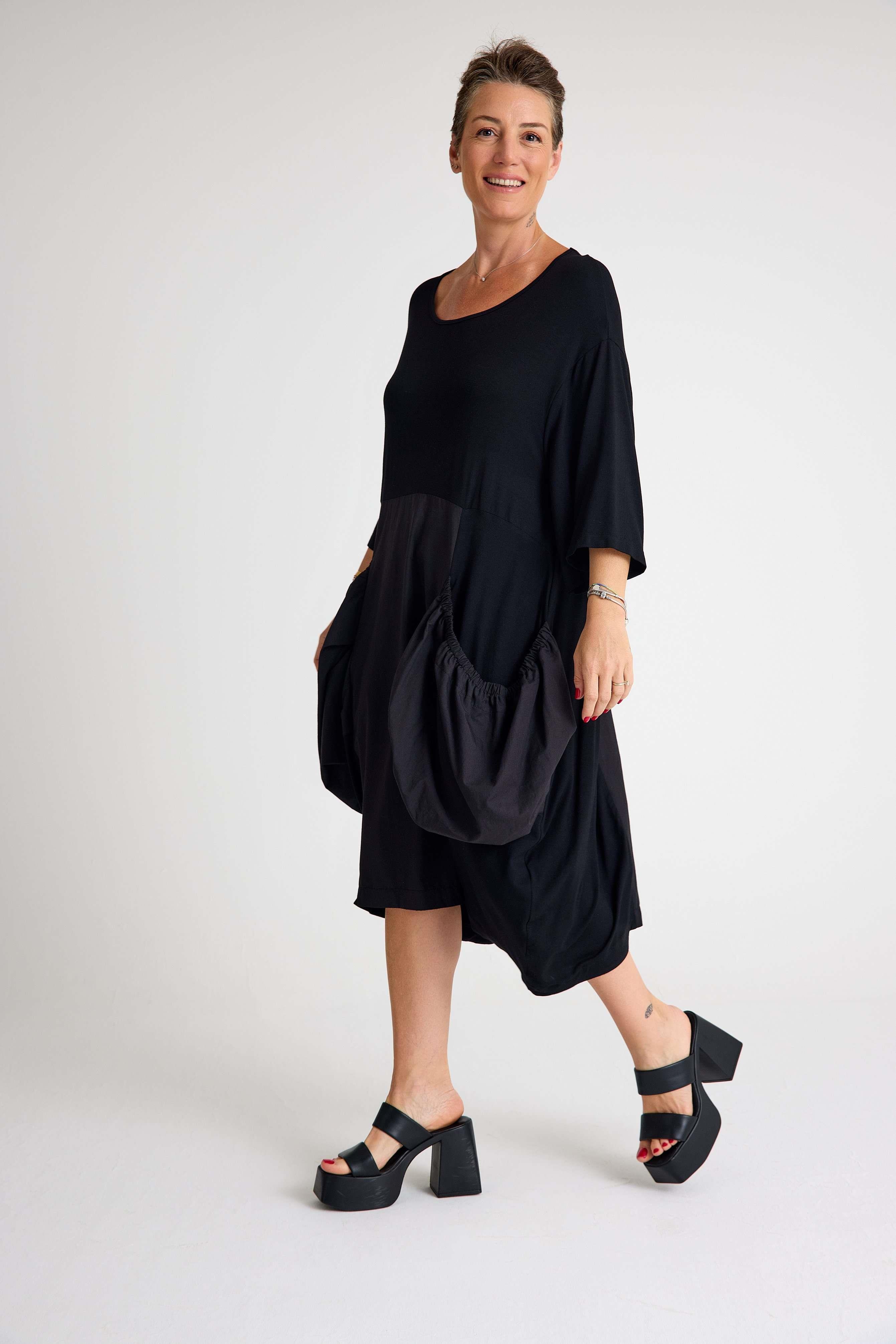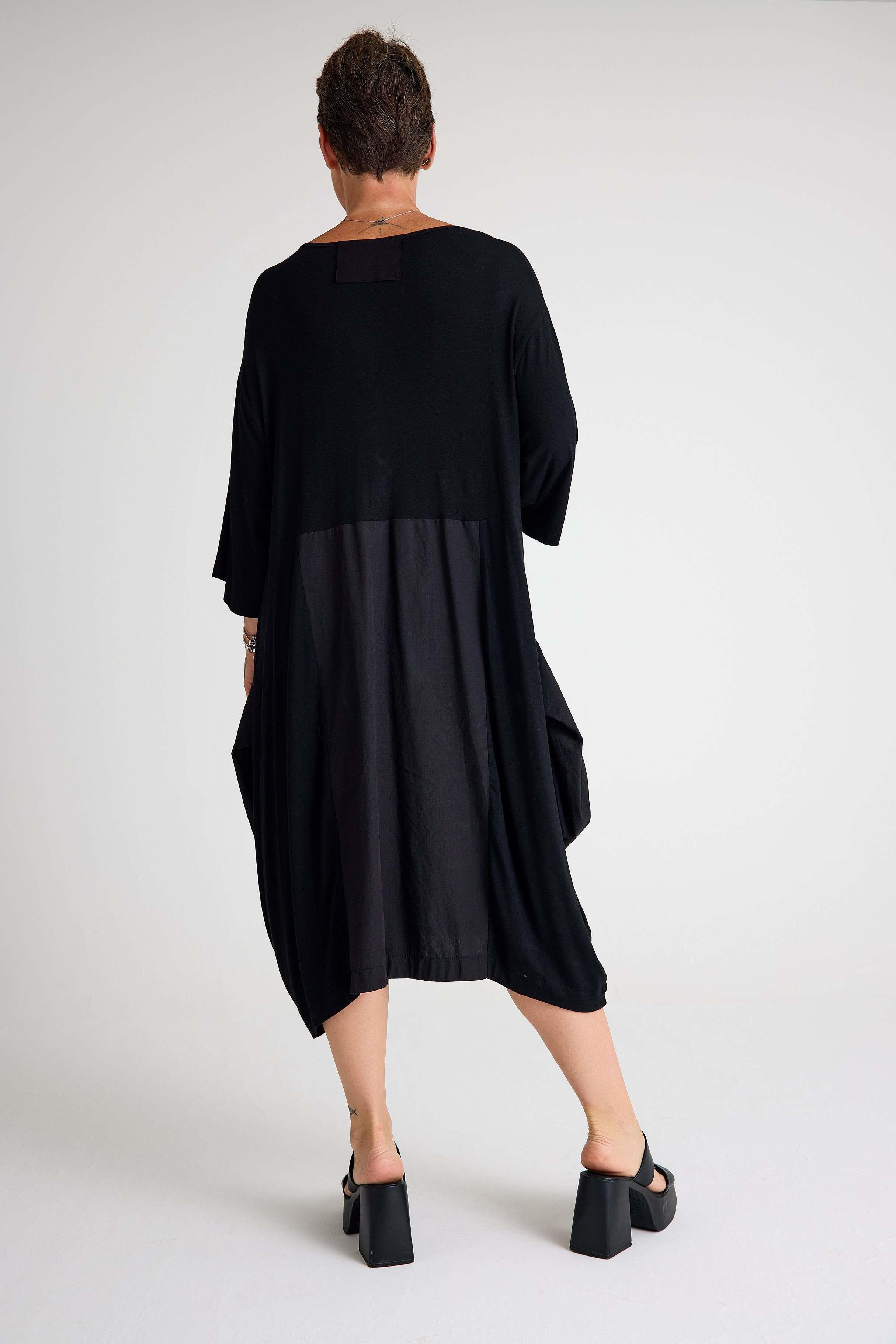 Oversize Viscose Tunic – Asymmetrical Flow, Effortless Elegance This oversize viscose tunic is designed with three-quarter sleeves and an asymmetrical draped hemline that adds movement and contemporary flair. The relaxed silhouette and soft viscose fabric create a naturally flowing look that is both stylish and comfortable. Crafted from a viscose blend with stretch, it offers flexibility and ease of wear. The asymmetrical cut and layered drape effect make it a versatile piece that can be styled casually or elevated for chic occasions. Key features: Three-quarter sleeves (truvakar style) Asymmetrical draped hemline Relaxed oversize fit Soft and elastic viscose blend (95% viscose, 5% elastane) Modern silhouette with effortless movement A stylish, contemporary tunic that balances comfort, elegance, and everyday versatility.