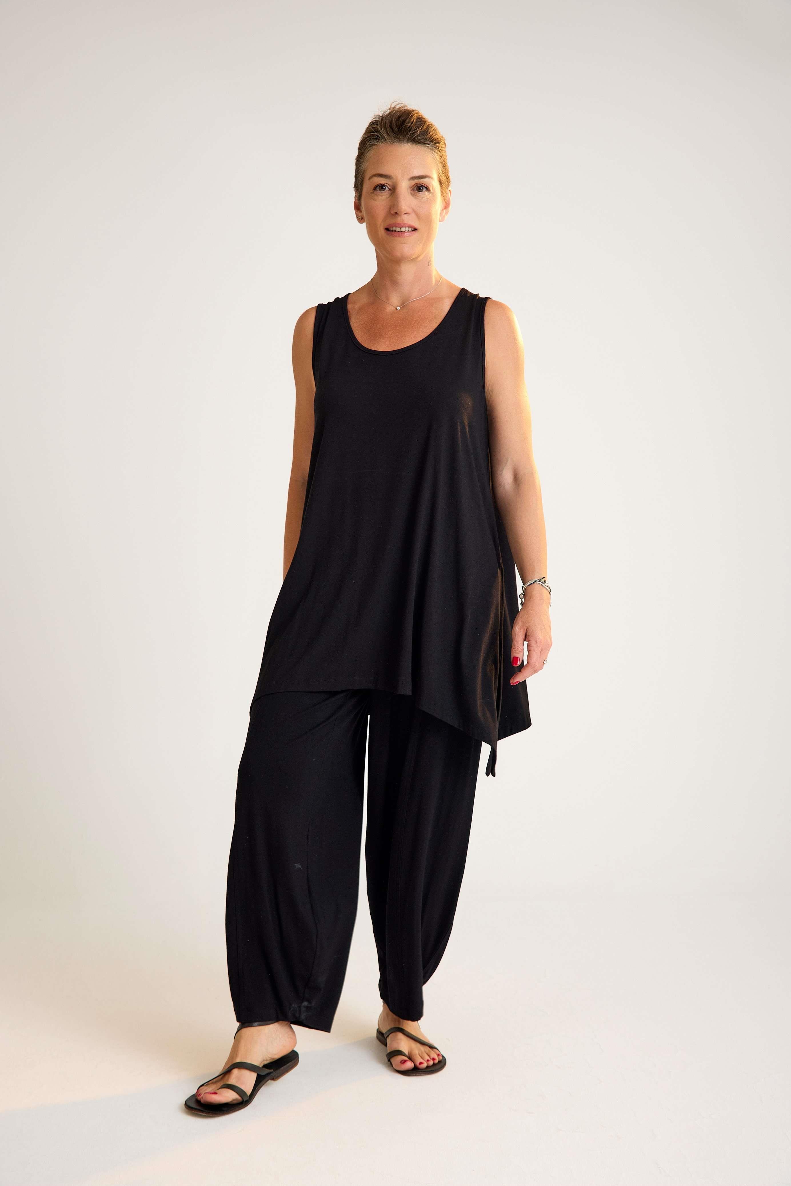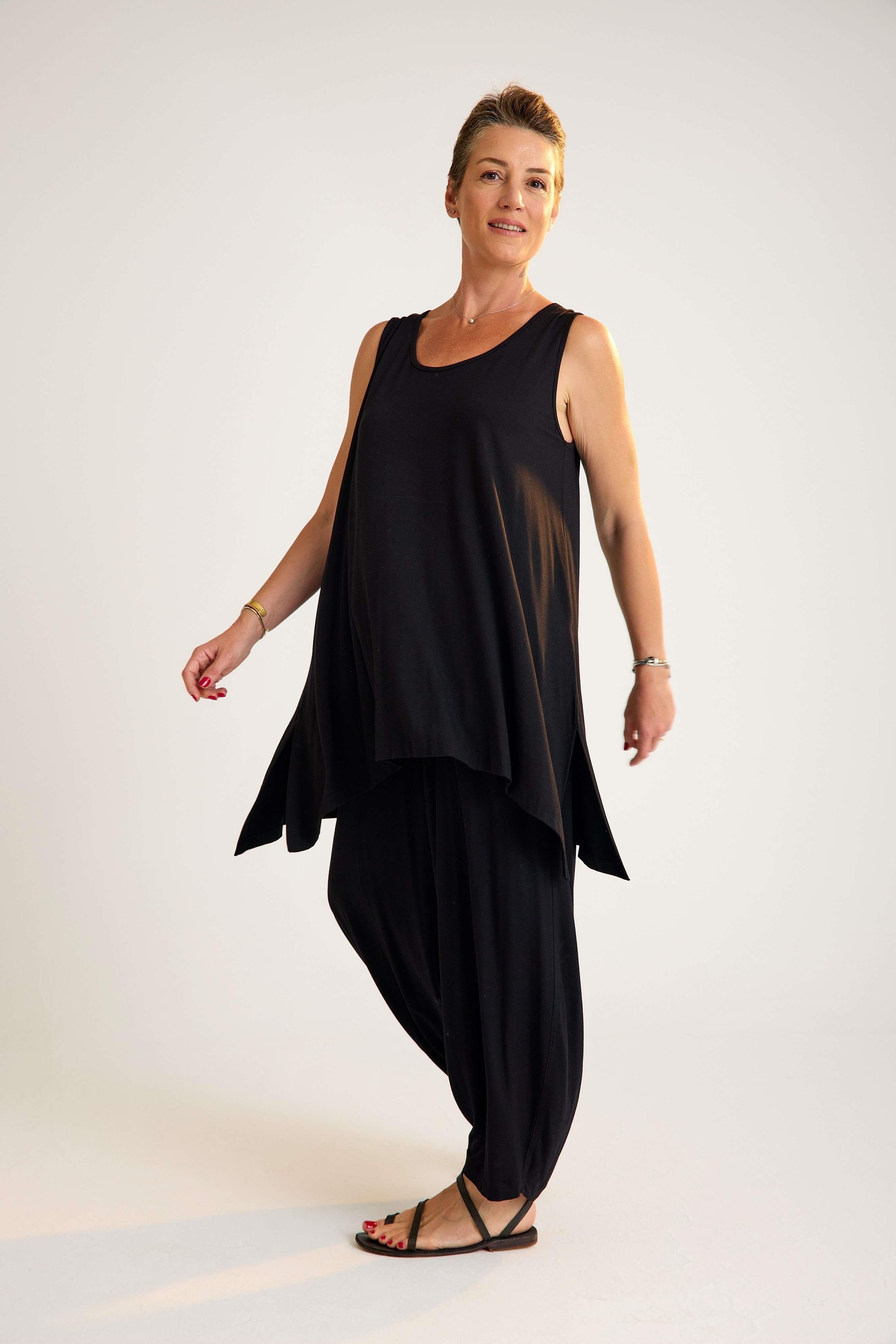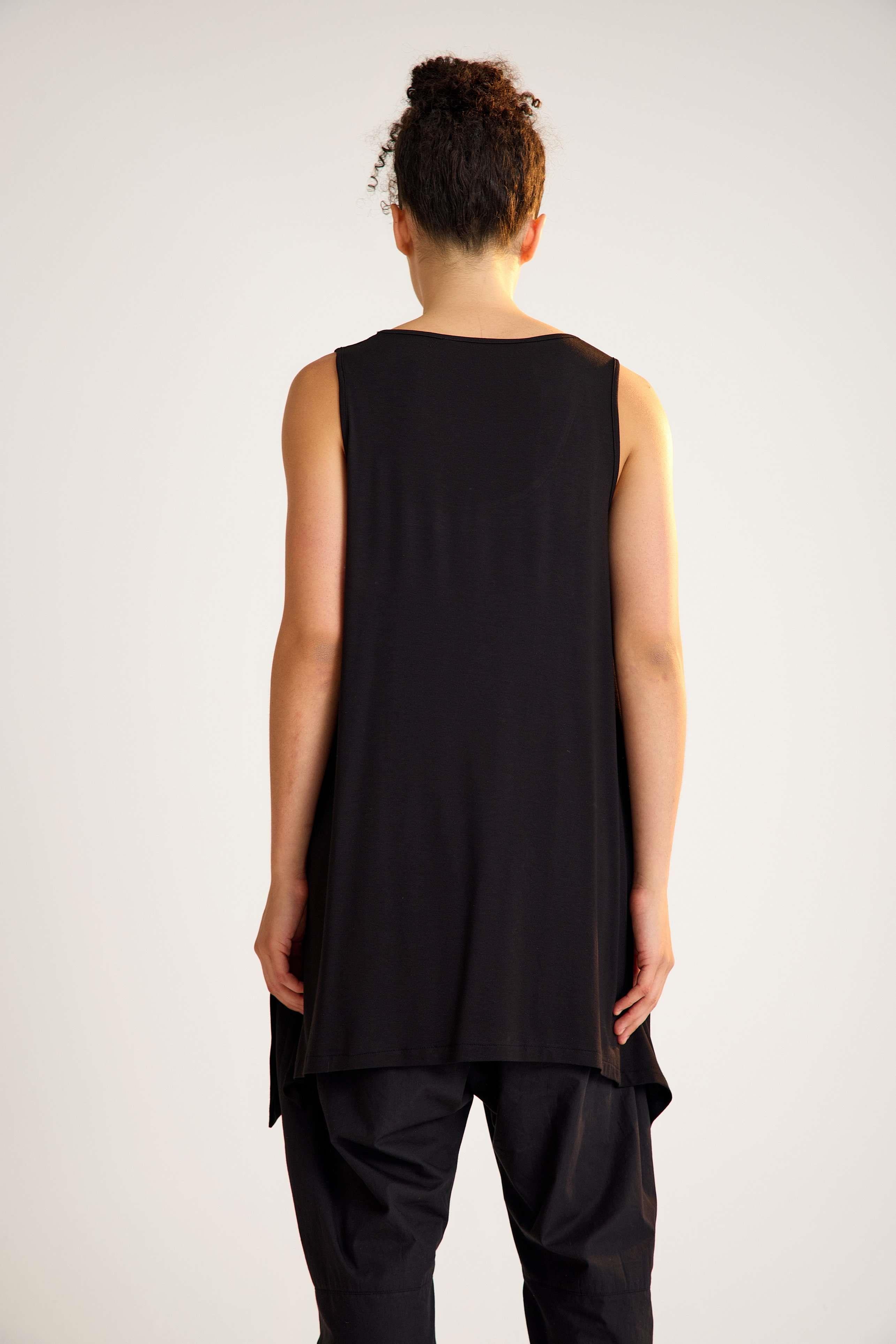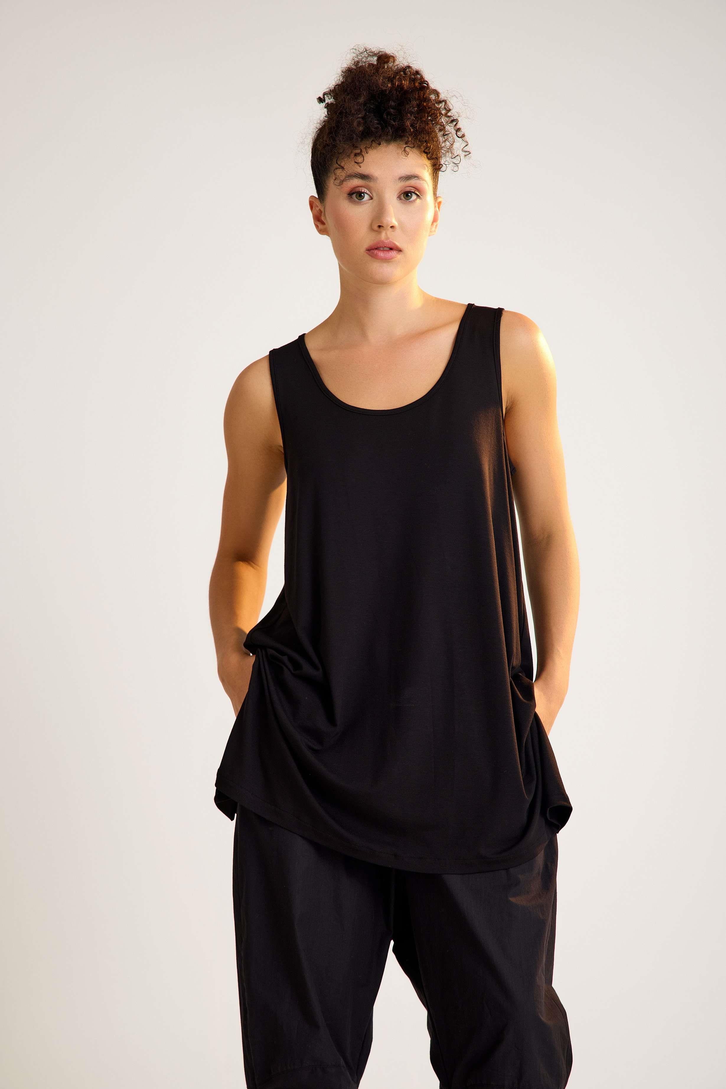 Oversize Viscose Tunic – Sleeveless, Minimal, Effortless This oversize viscose tunic is a versatile basic designed for modern comfort. Featuring a clean crew neckline and sleeveless cut, it creates a minimalist silhouette perfect for layering or wearing on its own. Side slits add ease of movement and a touch of casual style, while the oversized fit ensures a relaxed, breathable feel. Crafted from a soft and elastic viscose blend, the tunic drapes naturally and adapts effortlessly to everyday looks. A timeless essential that combines simplicity with comfort. Key features: Sleeveless oversize cut Crew neckline (zero collar) Side slit detail for comfort and style 95% viscose, 5% elastane for stretch and softness Minimal, versatile design A must-have wardrobe staple that transitions seamlessly from casual wear to layered, contemporary outfits.