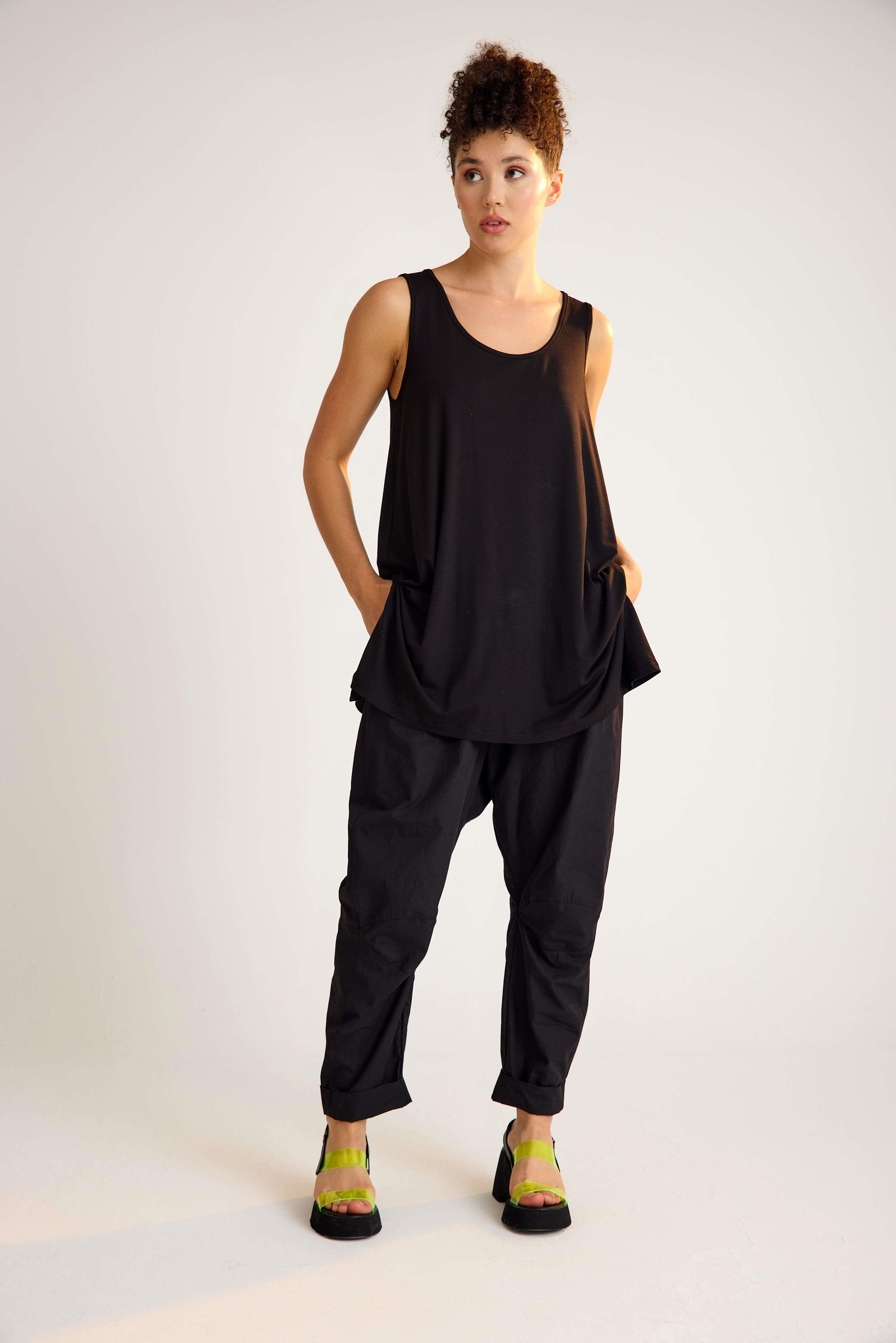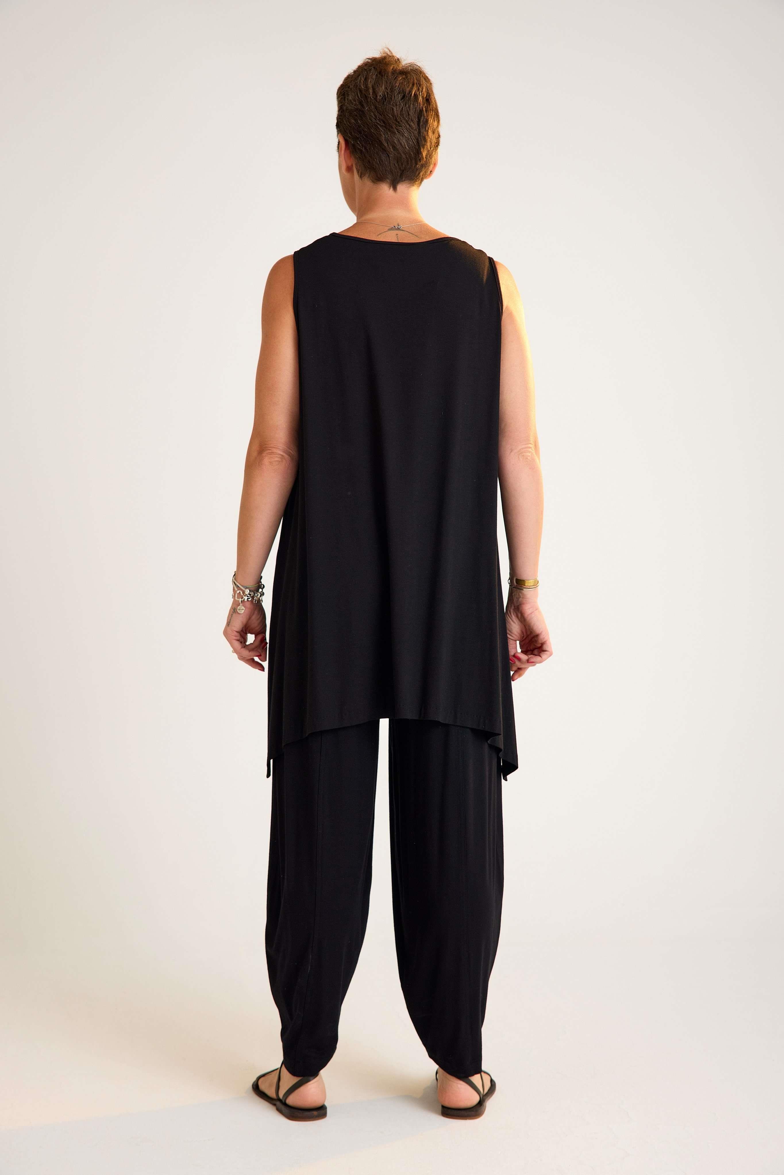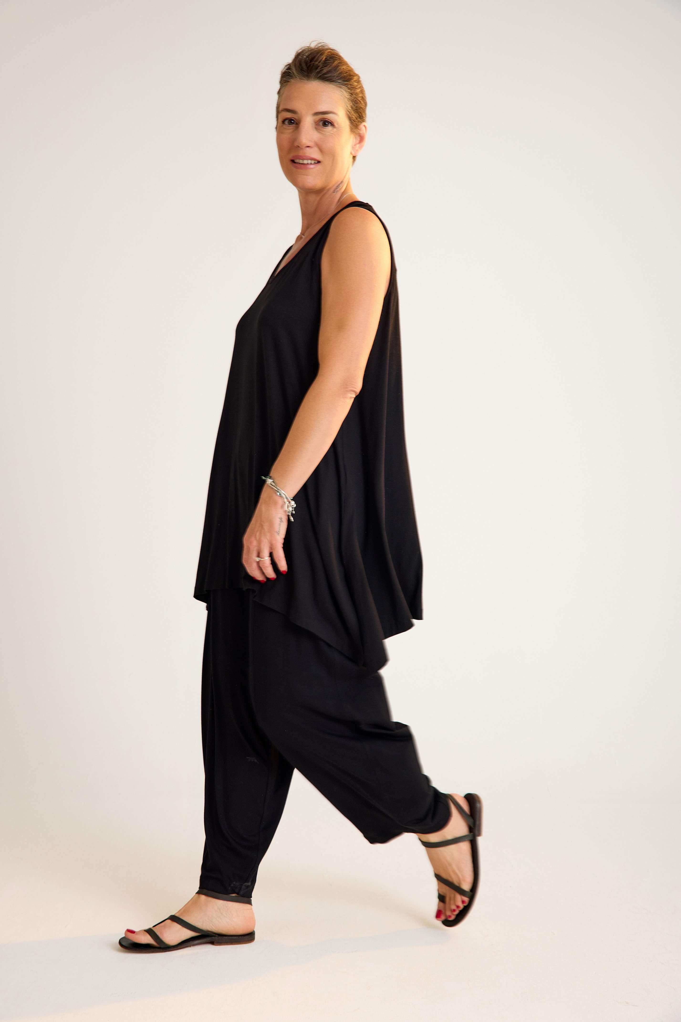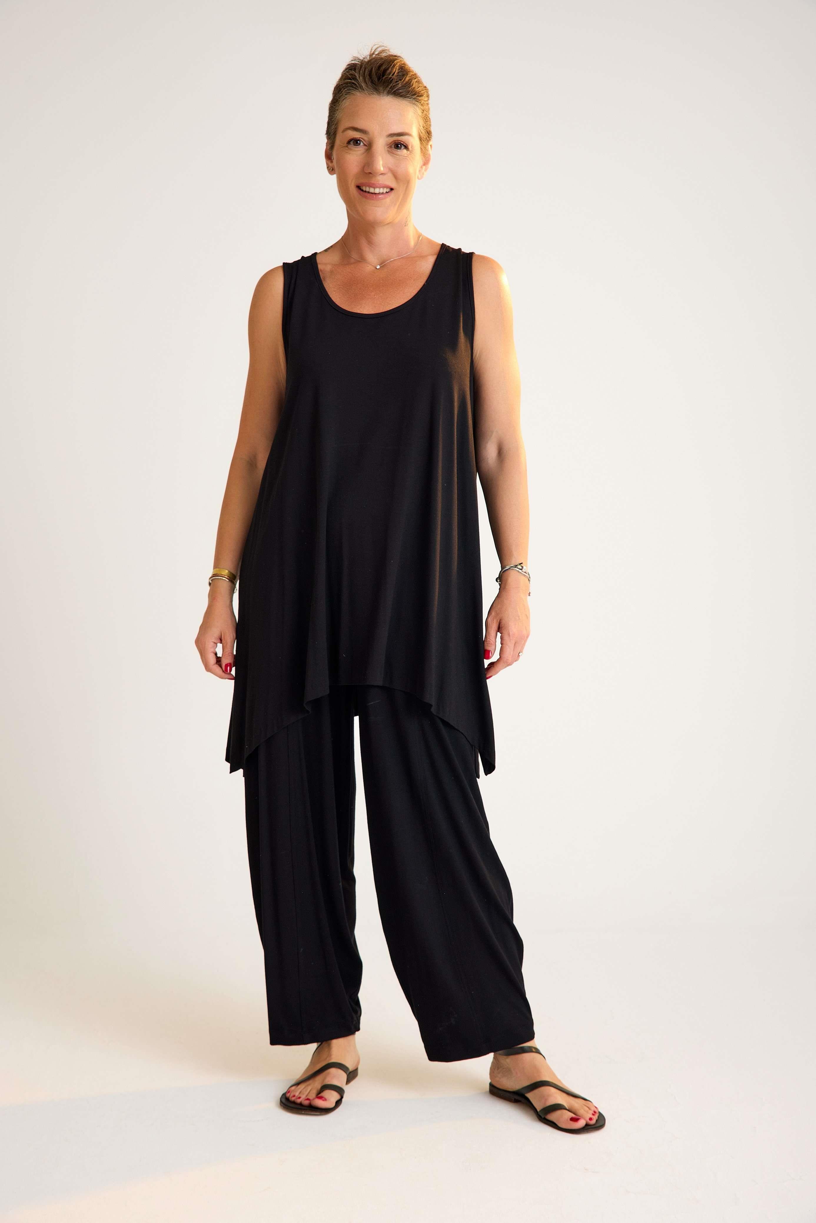 Oversize Viscose Tunic – Sleeveless, Minimal, Effortless This oversize viscose tunic is a versatile basic designed for modern comfort. Featuring a clean crew neckline and sleeveless cut, it creates a minimalist silhouette perfect for layering or wearing on its own. Side slits add ease of movement and a touch of casual style, while the oversized fit ensures a relaxed, breathable feel. Crafted from a soft and elastic viscose blend, the tunic drapes naturally and adapts effortlessly to everyday looks. A timeless essential that combines simplicity with comfort. Key features: Sleeveless oversize cut Crew neckline (zero collar) Side slit detail for comfort and style 95% viscose, 5% elastane for stretch and softness Minimal, versatile design A must-have wardrobe staple that transitions seamlessly from casual wear to layered, contemporary outfits.