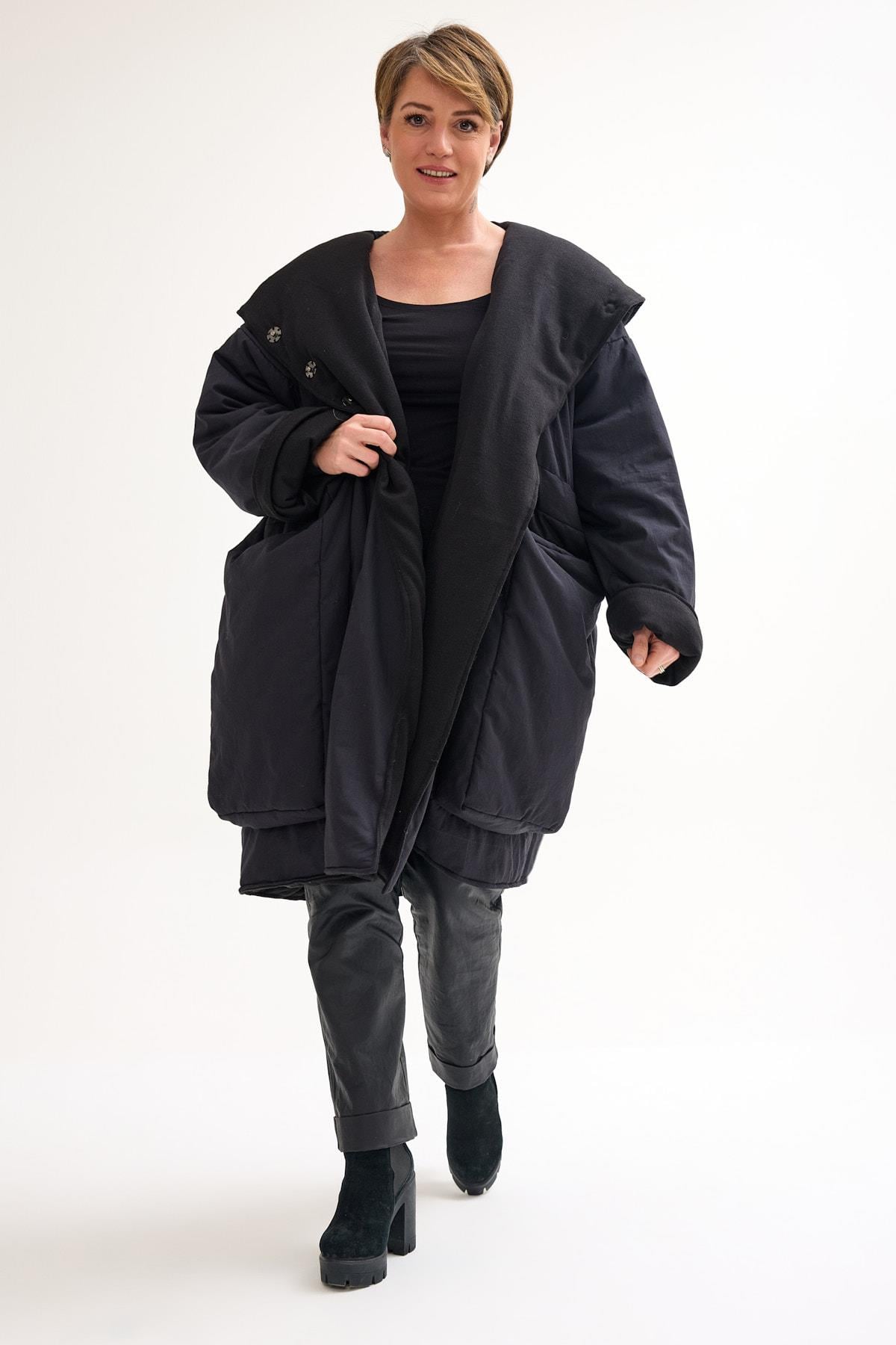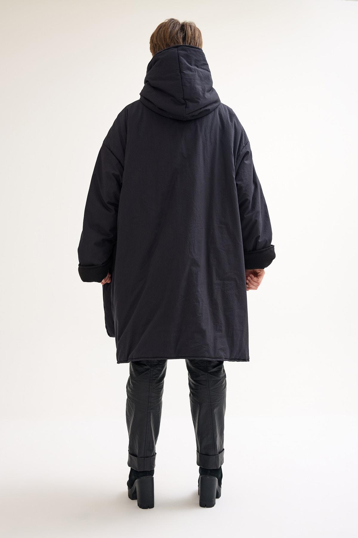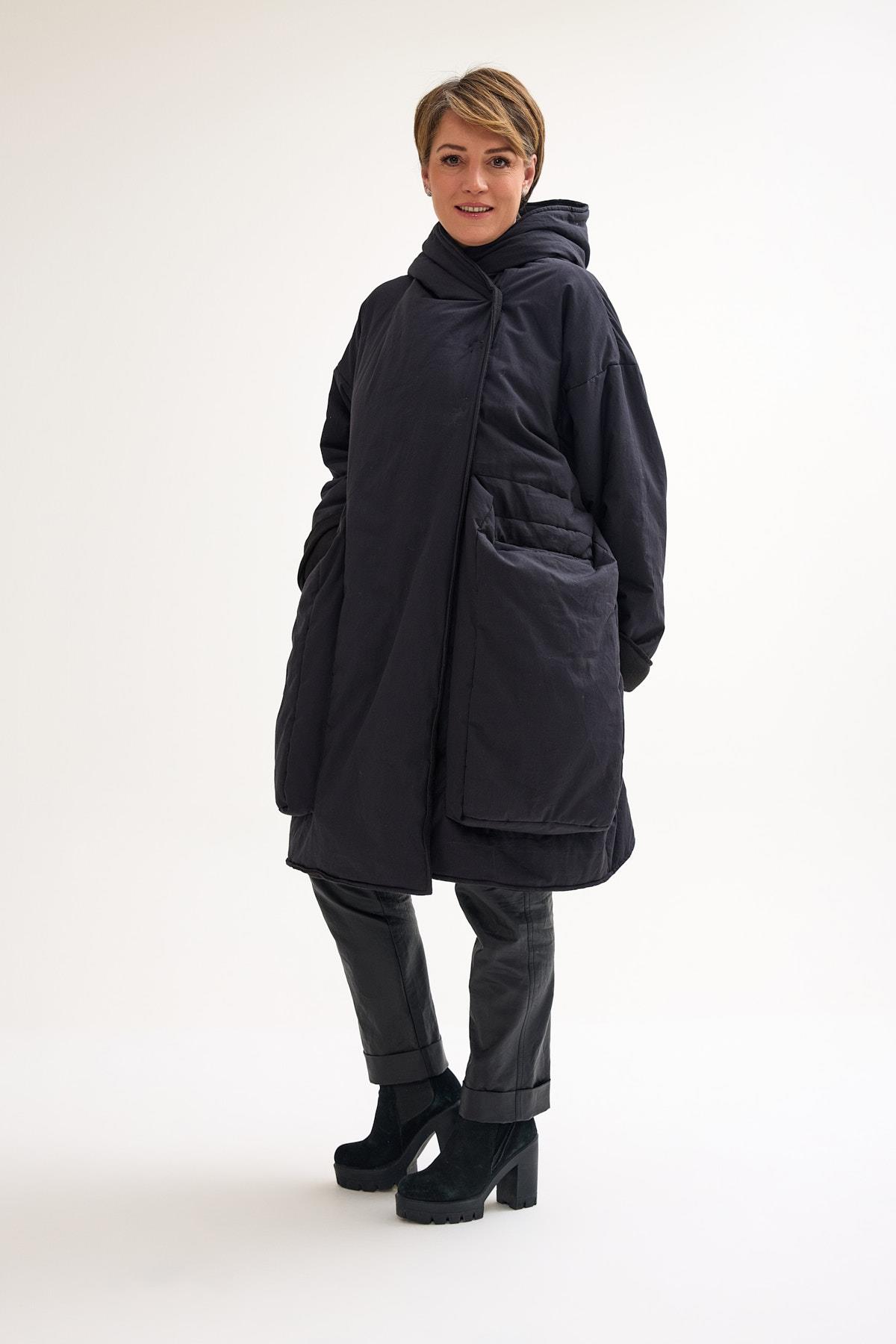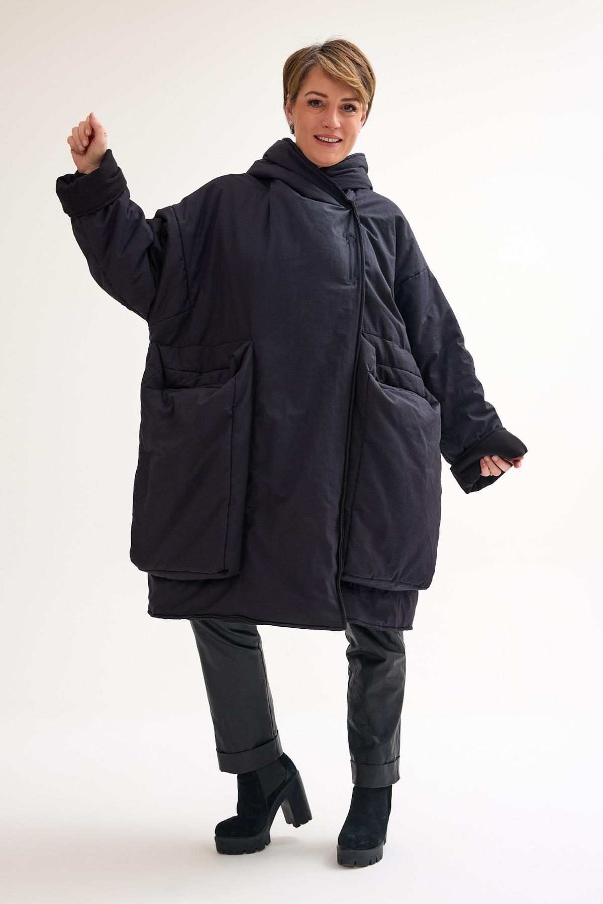 Oversize Wool Coat – Warmth, Comfort, and Modern Edge This oversize wool coat combines warmth and style with a relaxed, contemporary silhouette. Designed with a two-way zipper for versatile wear, it features large front pockets that add both practicality and a bold design detail. The wool lining on the inside provides natural insulation, while the cotton outer layer ensures breathability and structure. Perfect for colder days, this coat balances functionality with an effortless oversized cut. The loose fit makes it easy to layer over chunky knits or lighter outfits, adapting seamlessly to different looks. Key features: Two-way front zipper Oversize fit with extended shoulders Large decorative front pockets Wool interior lining for warmth Cotton exterior for comfort and durability A timeless outerwear piece that blends cozy functionality with modern design — ideal for everyday wear during the colder months.