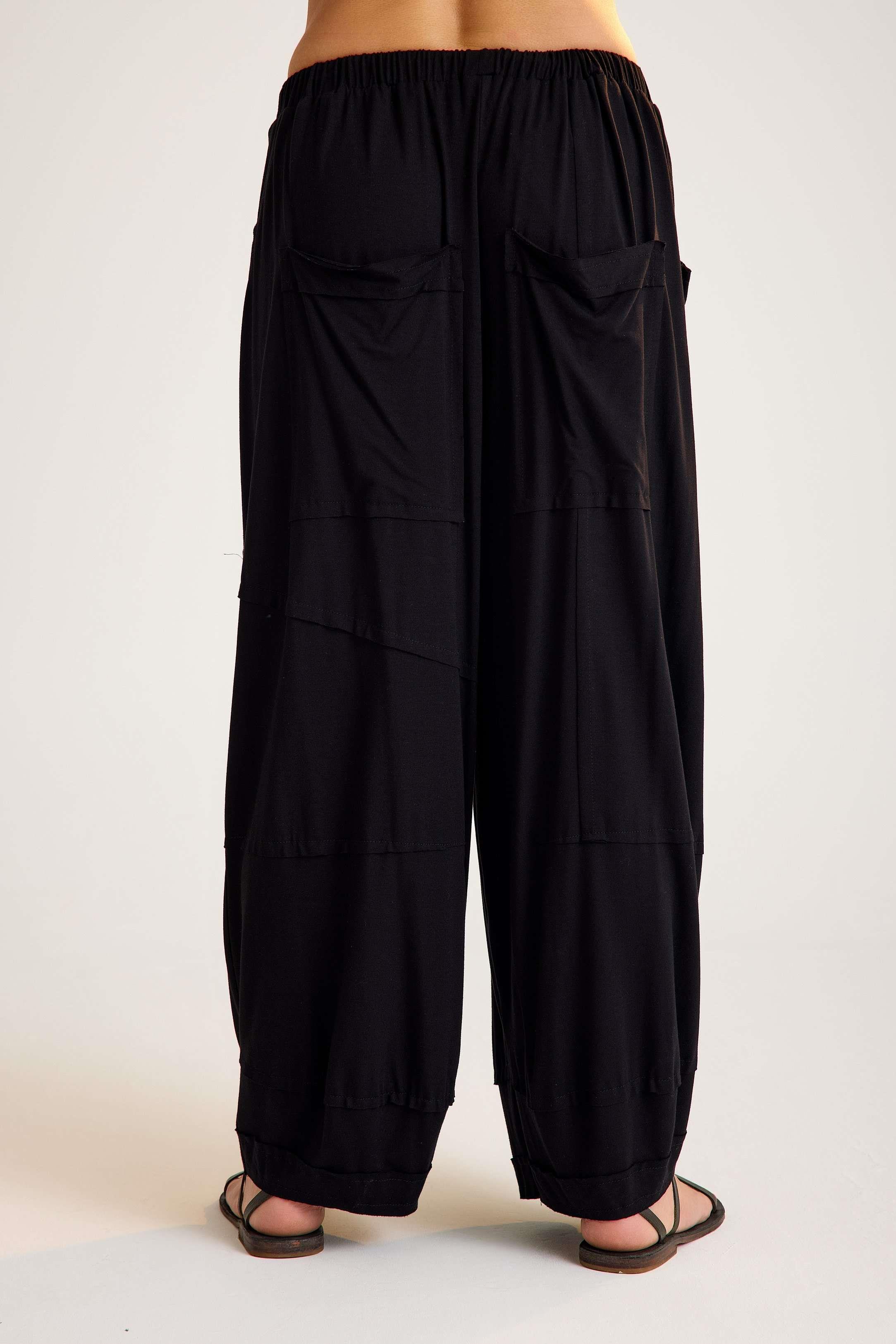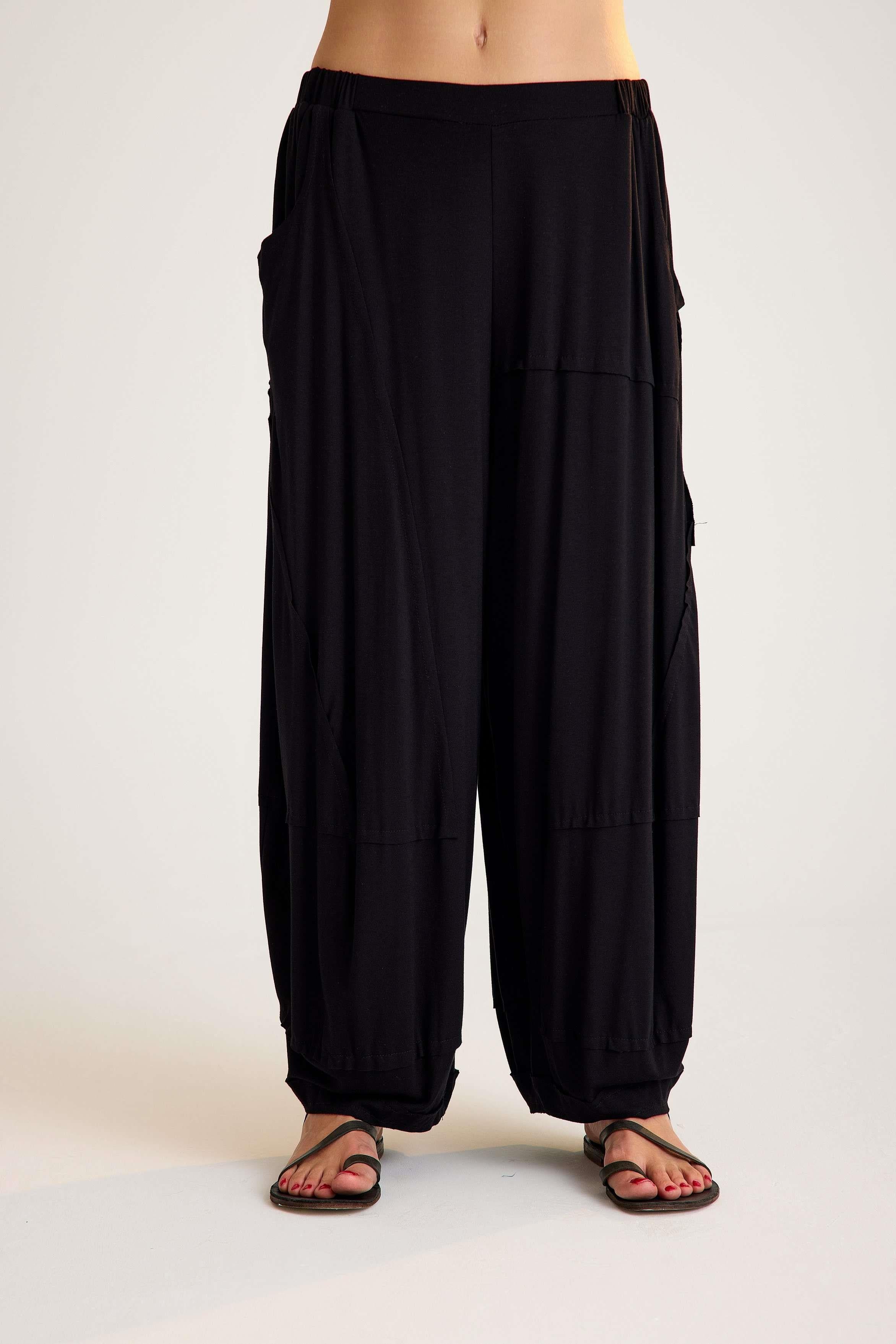 Viscose trousers with an elastic waistband – lightweight, flowy, and comfortable with a timeless avant-garde touch. A versatile piece designed for both wholesale buyers and retail fashion boutiques.