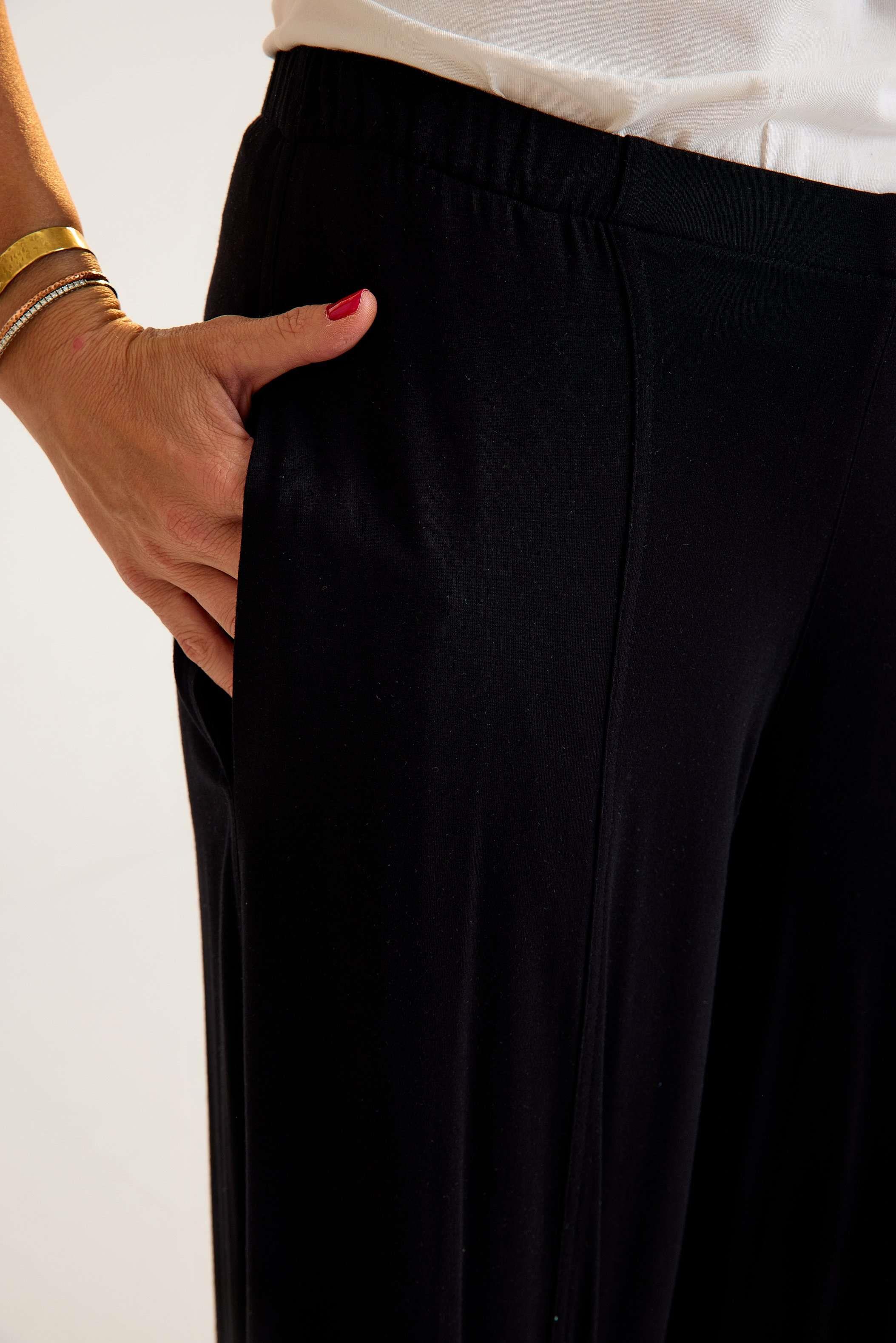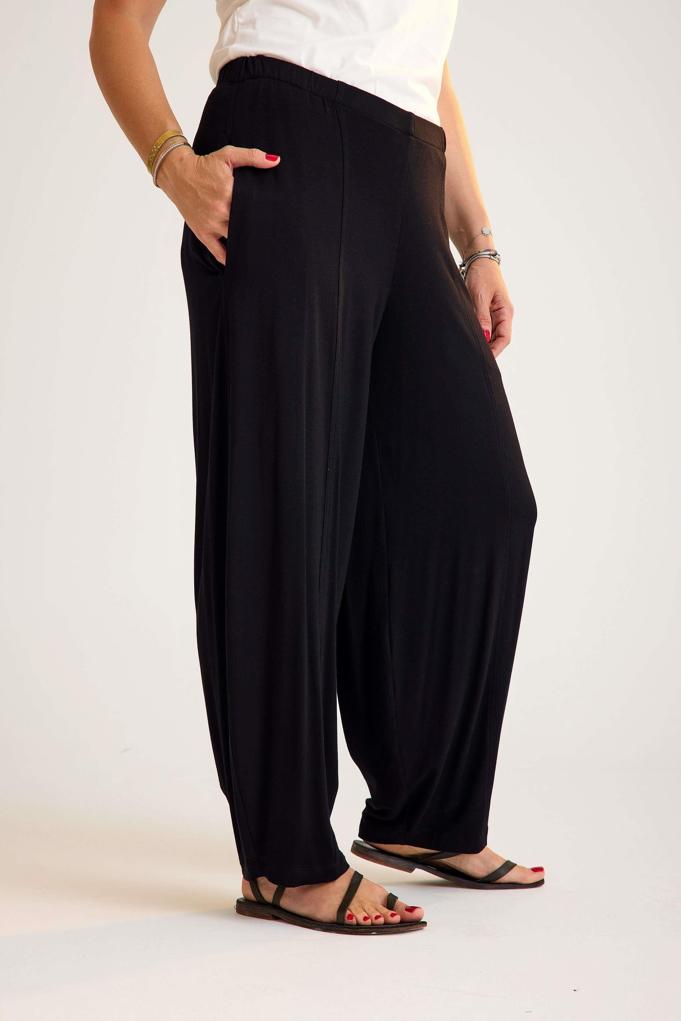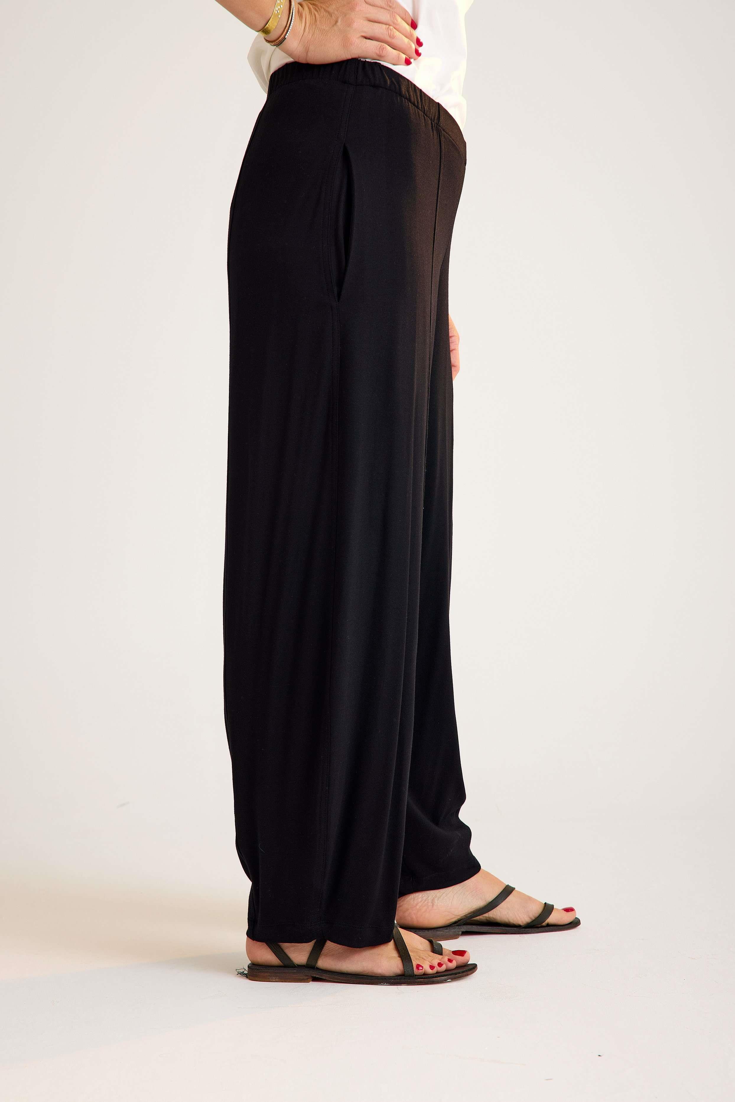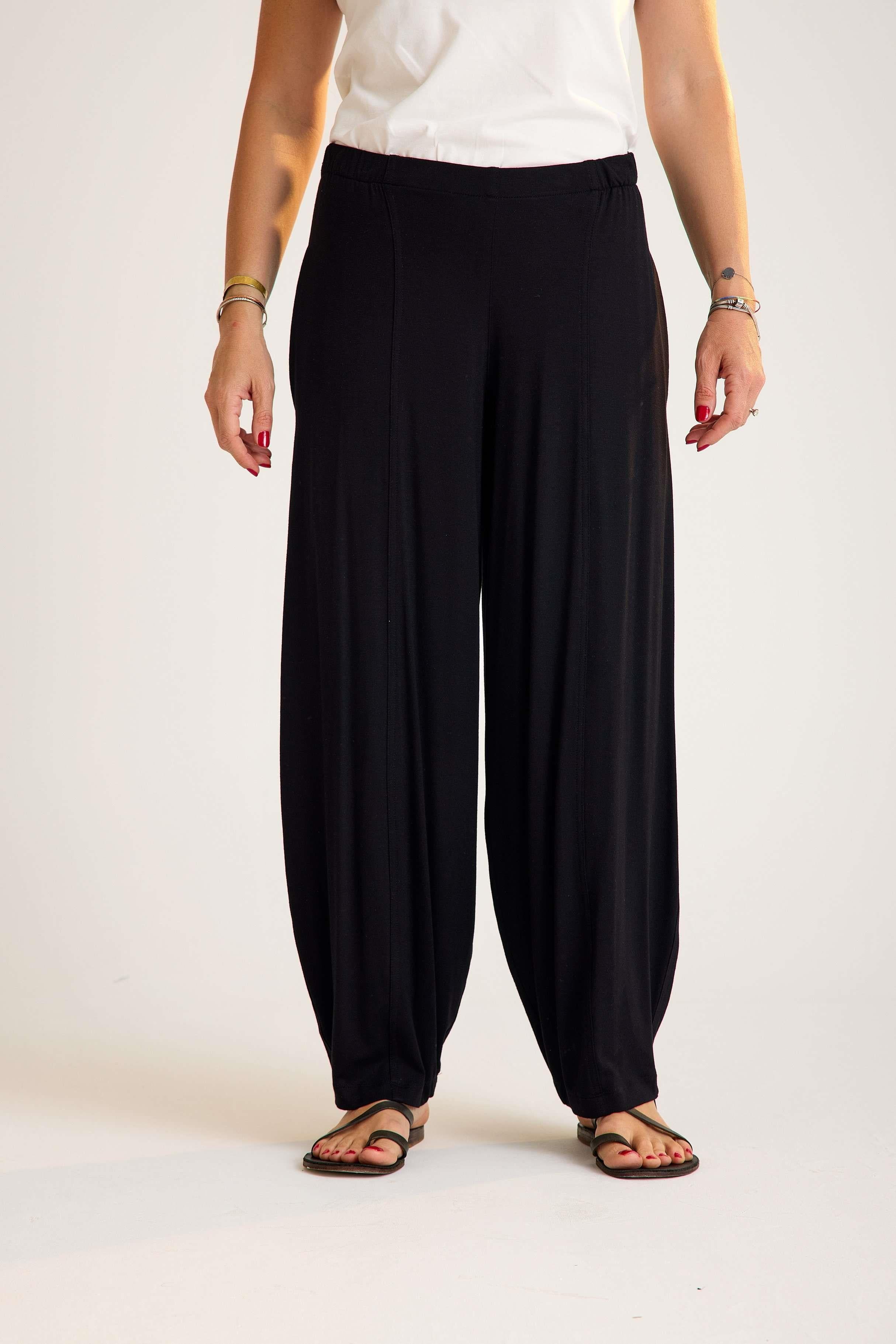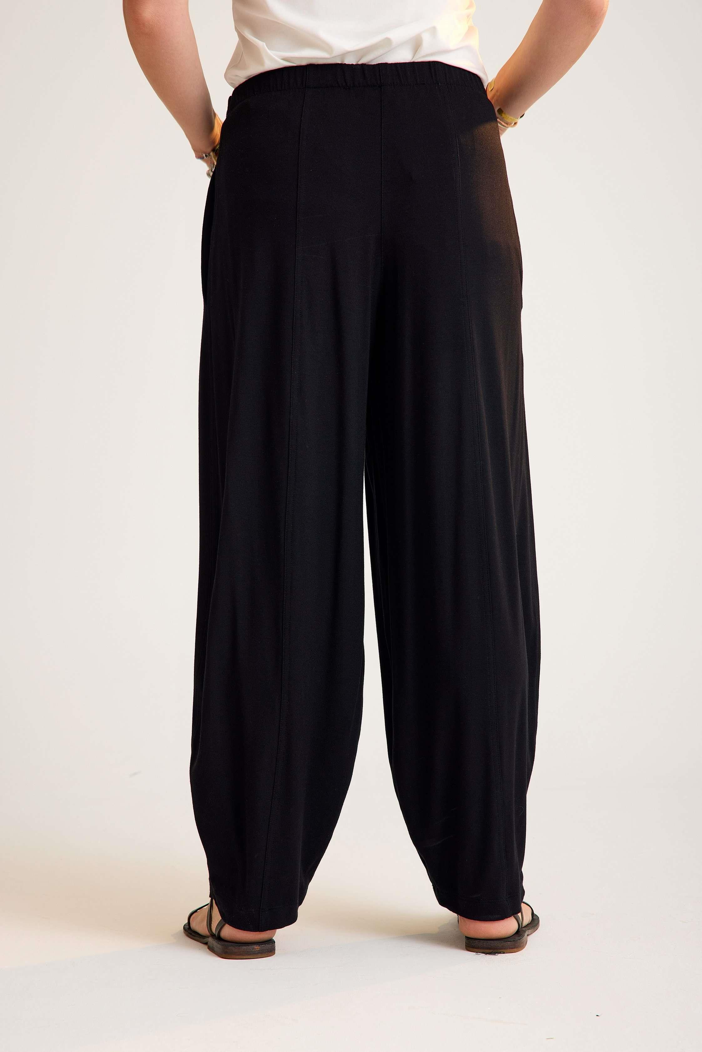Viscose trousers with an elastic waistband – lightweight, flowy, and comfortable with a timeless avant-garde touch. A versatile piece designed for both wholesale buyers and retail fashion boutiques.