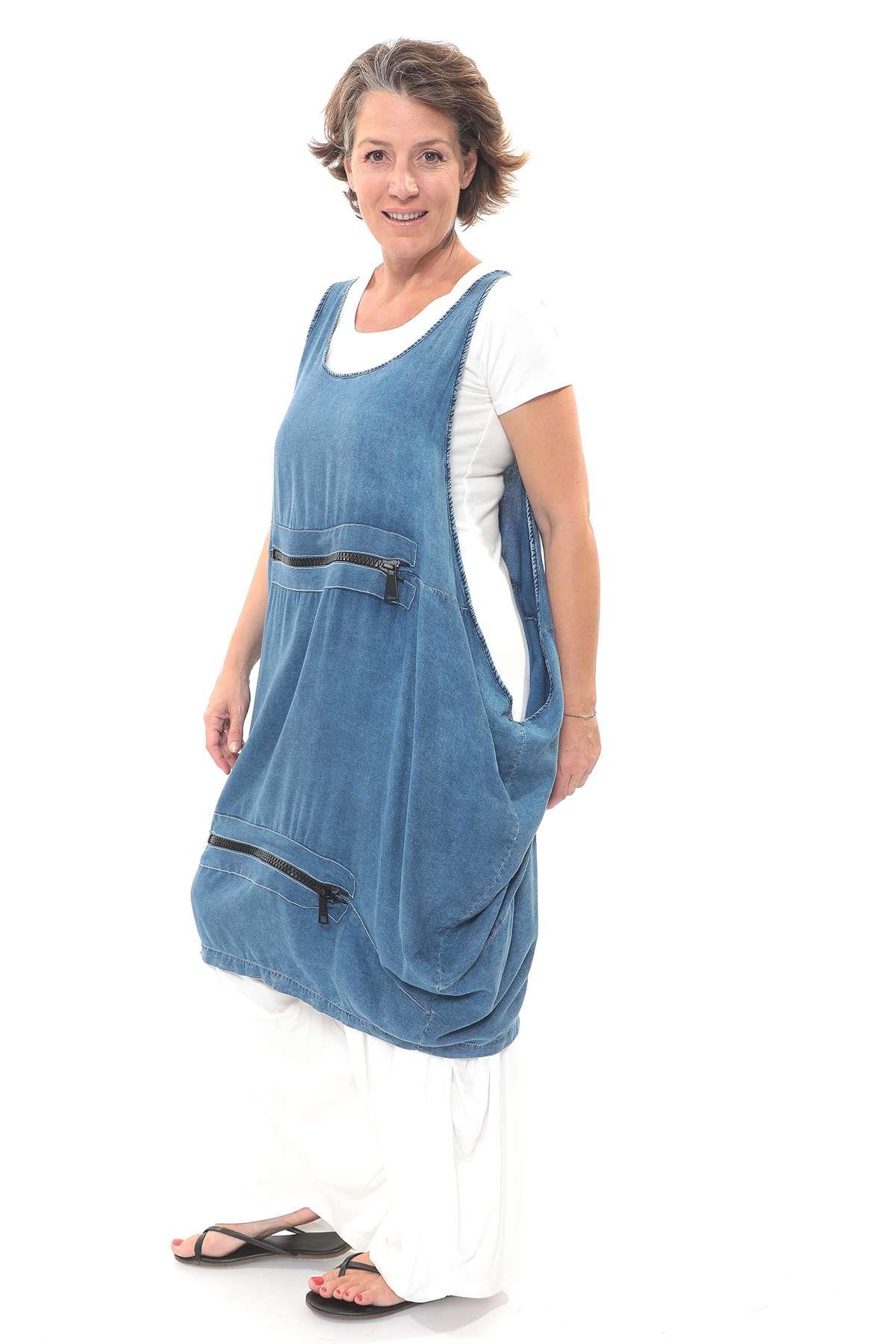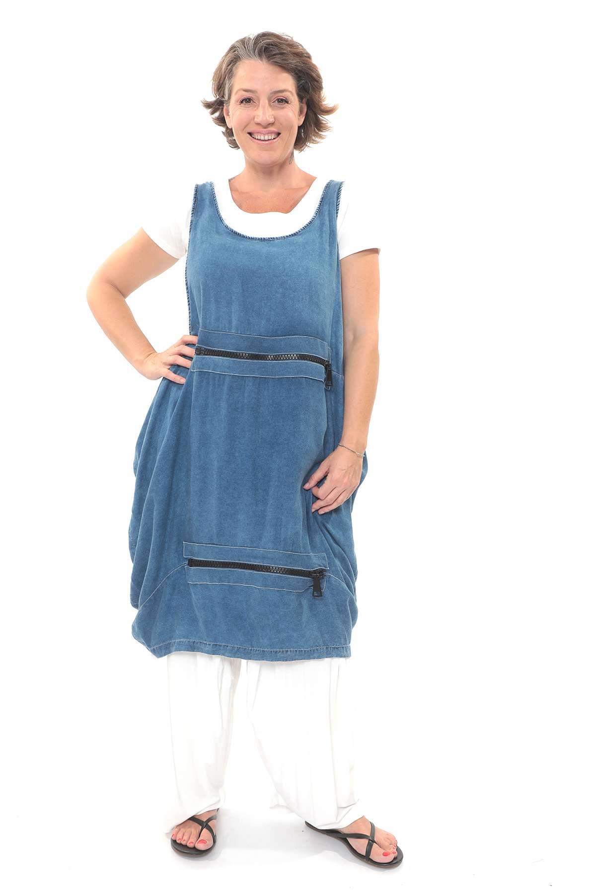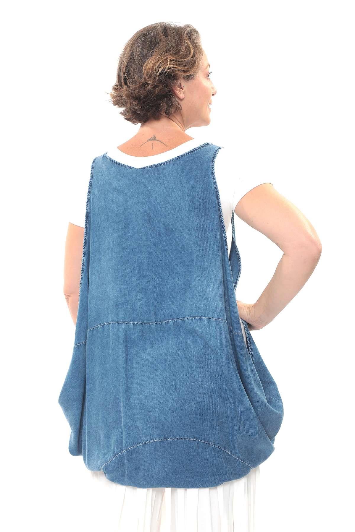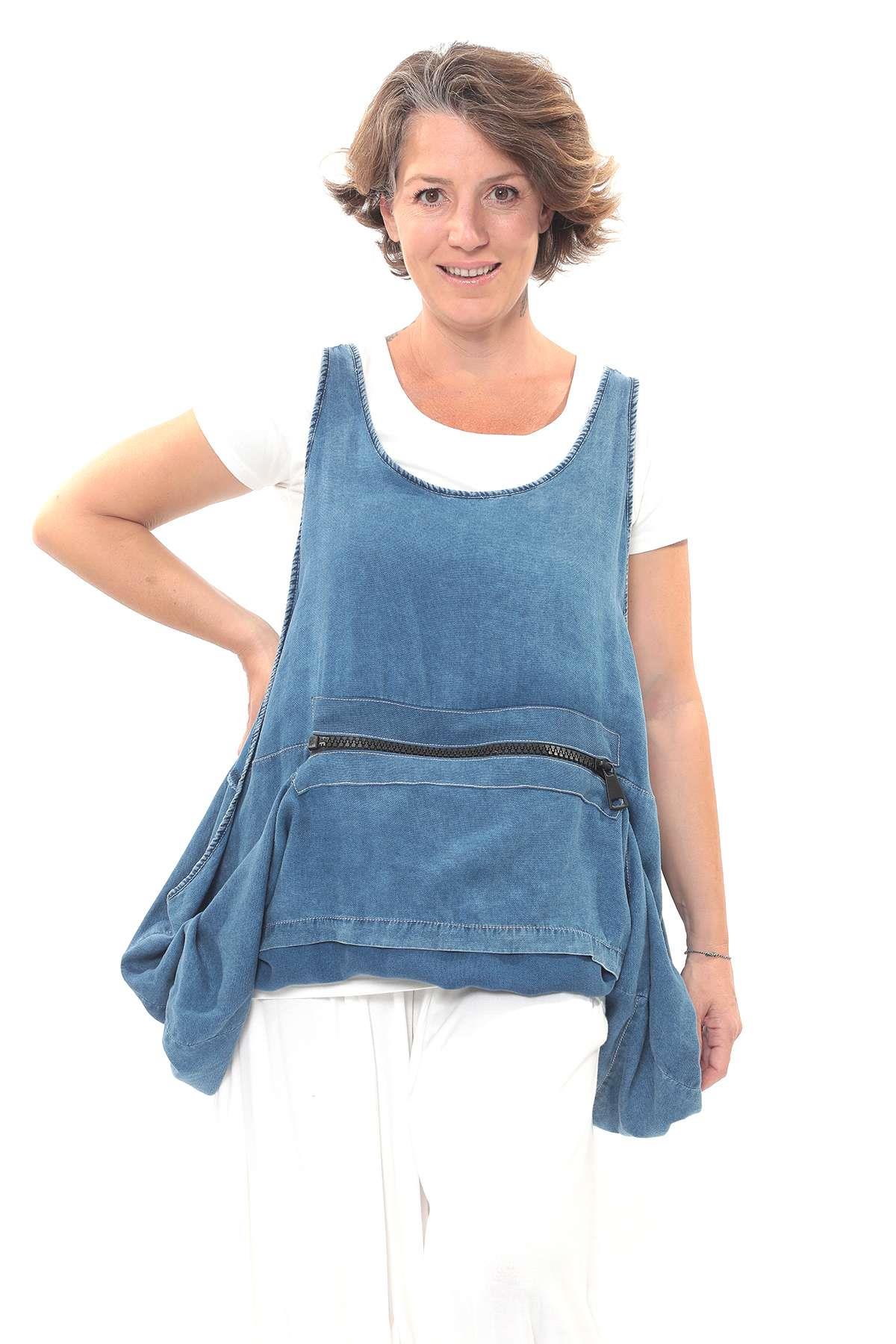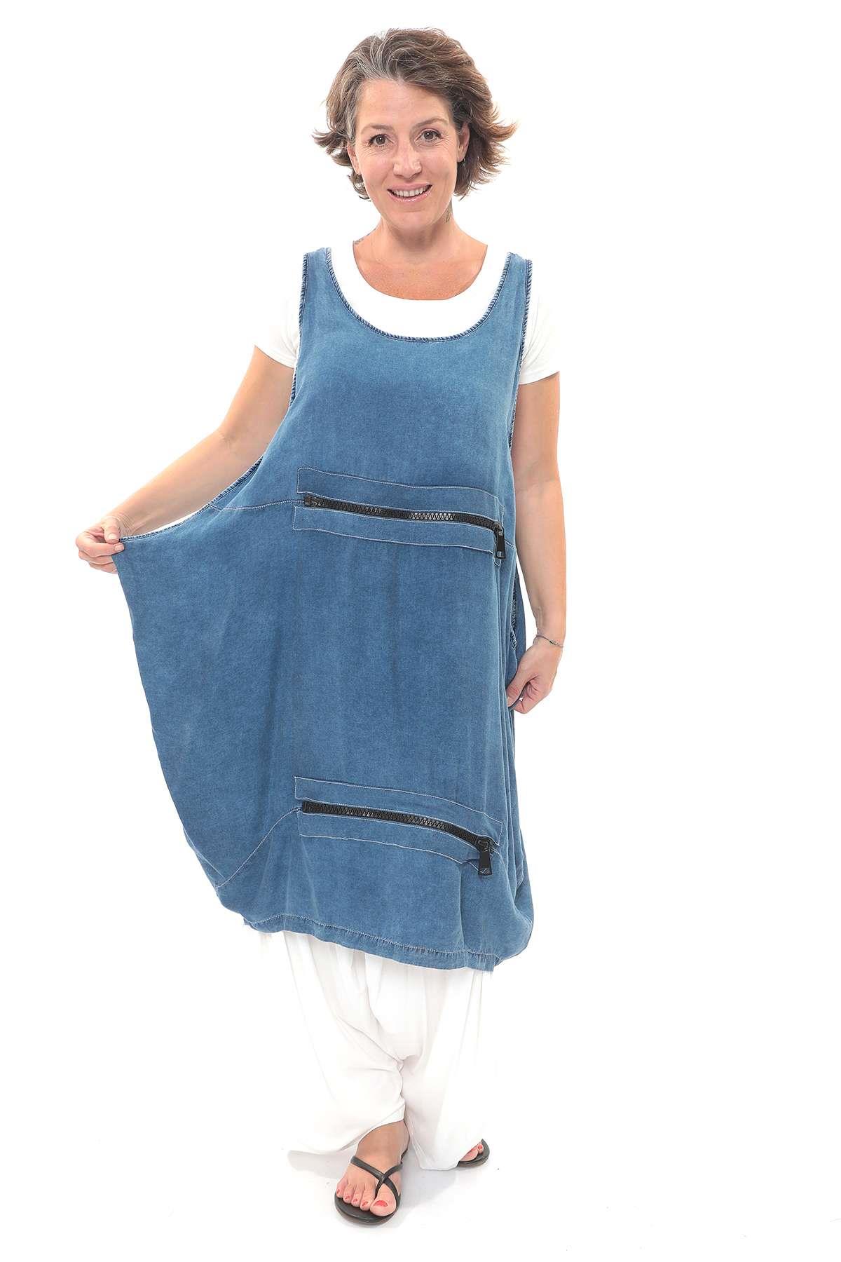 Oversized Sleeveless Tencel Tunic with Zipper Detailing A modern avant-garde tunic crafted from soft Tencel, featuring bold zipper details, a sleeveless cut, and adjustable length for versatile styling.