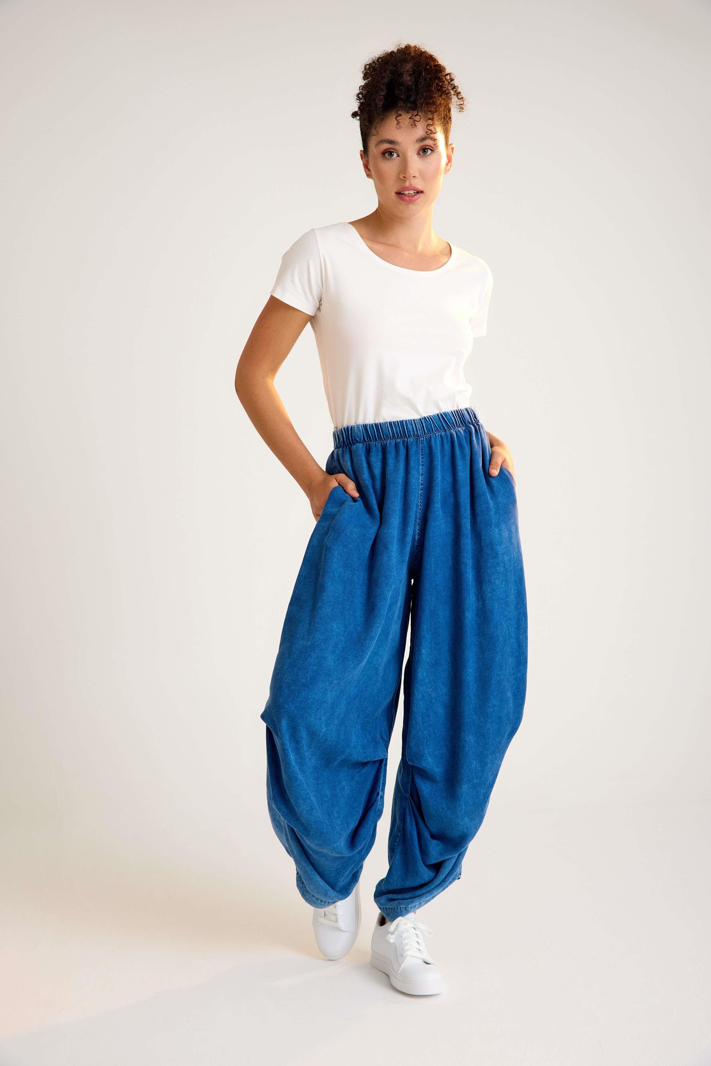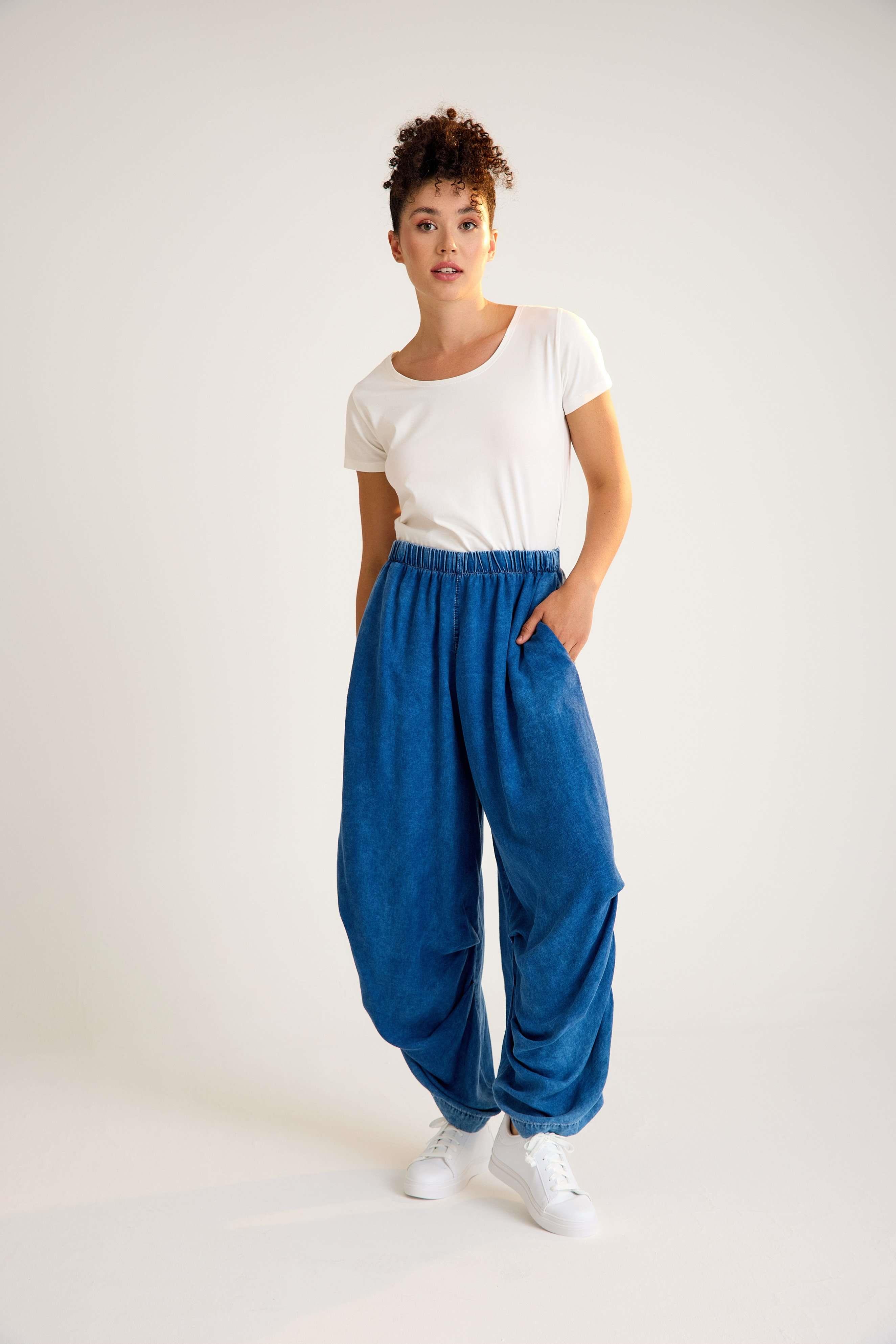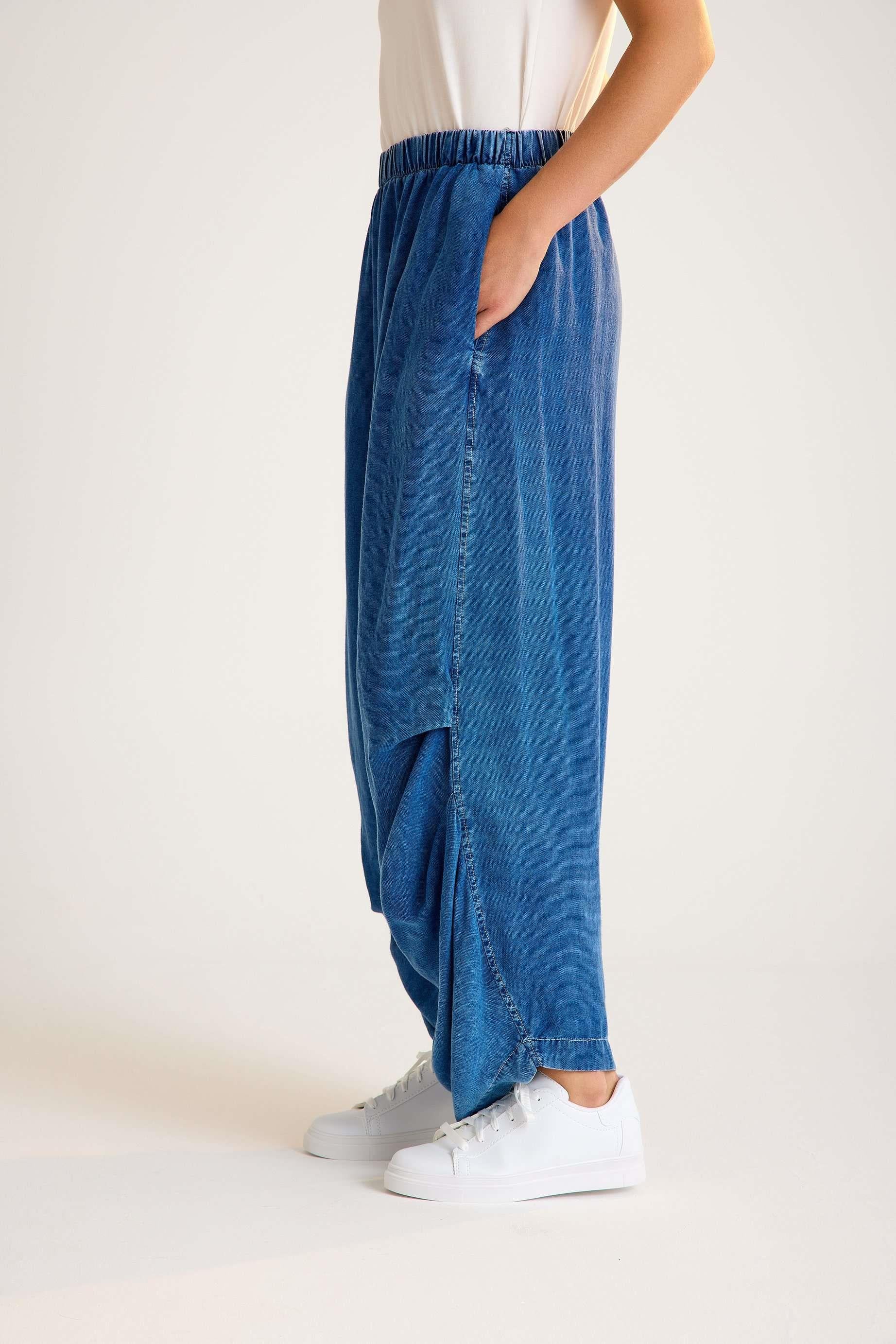 Tencel trousers with an elastic waistband – soft, breathable, and sustainably stylish, designed with a denim-look finish. A timeless avant-garde essential for modern wardrobes, perfect for wholesale buyers and retail fashion boutiques