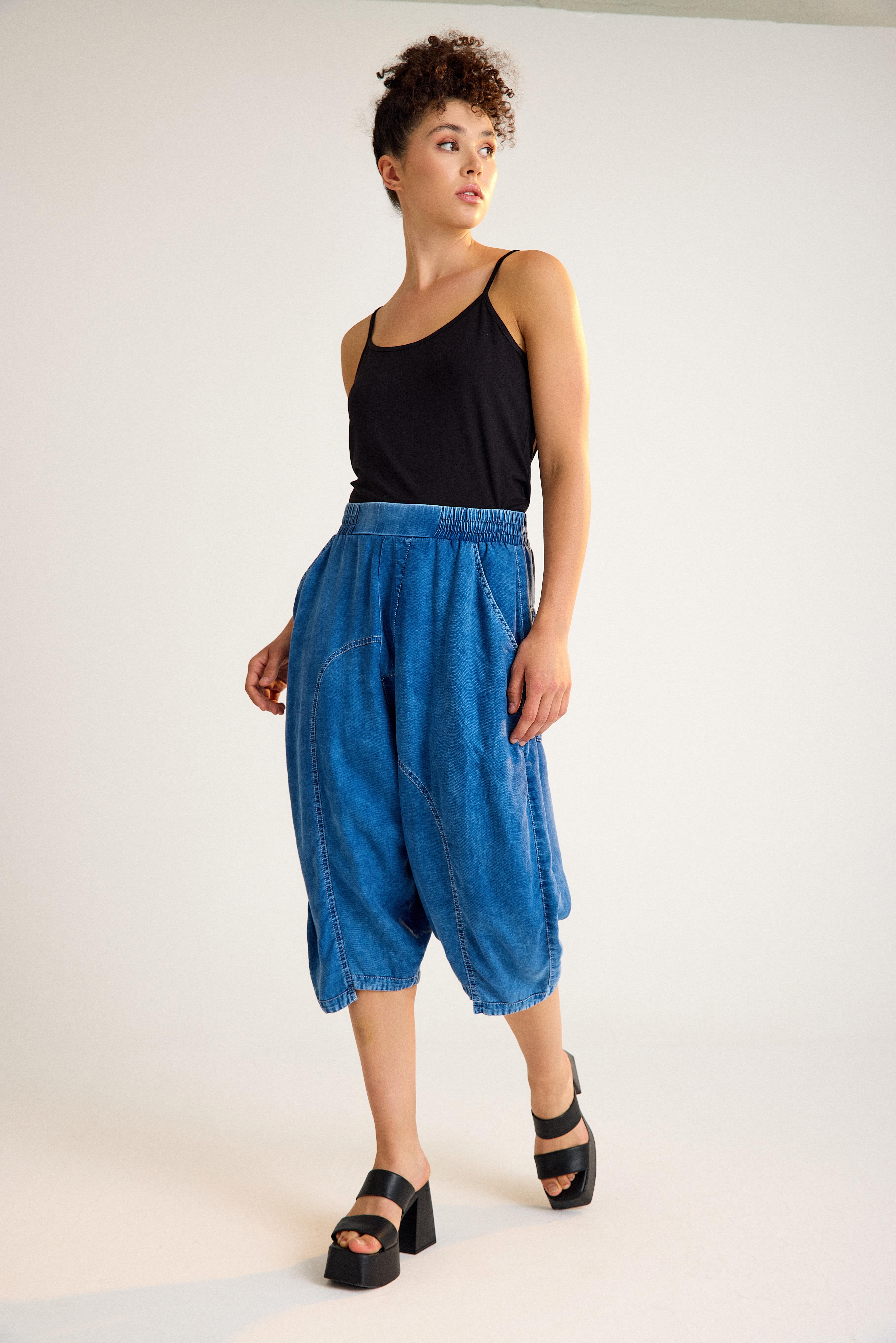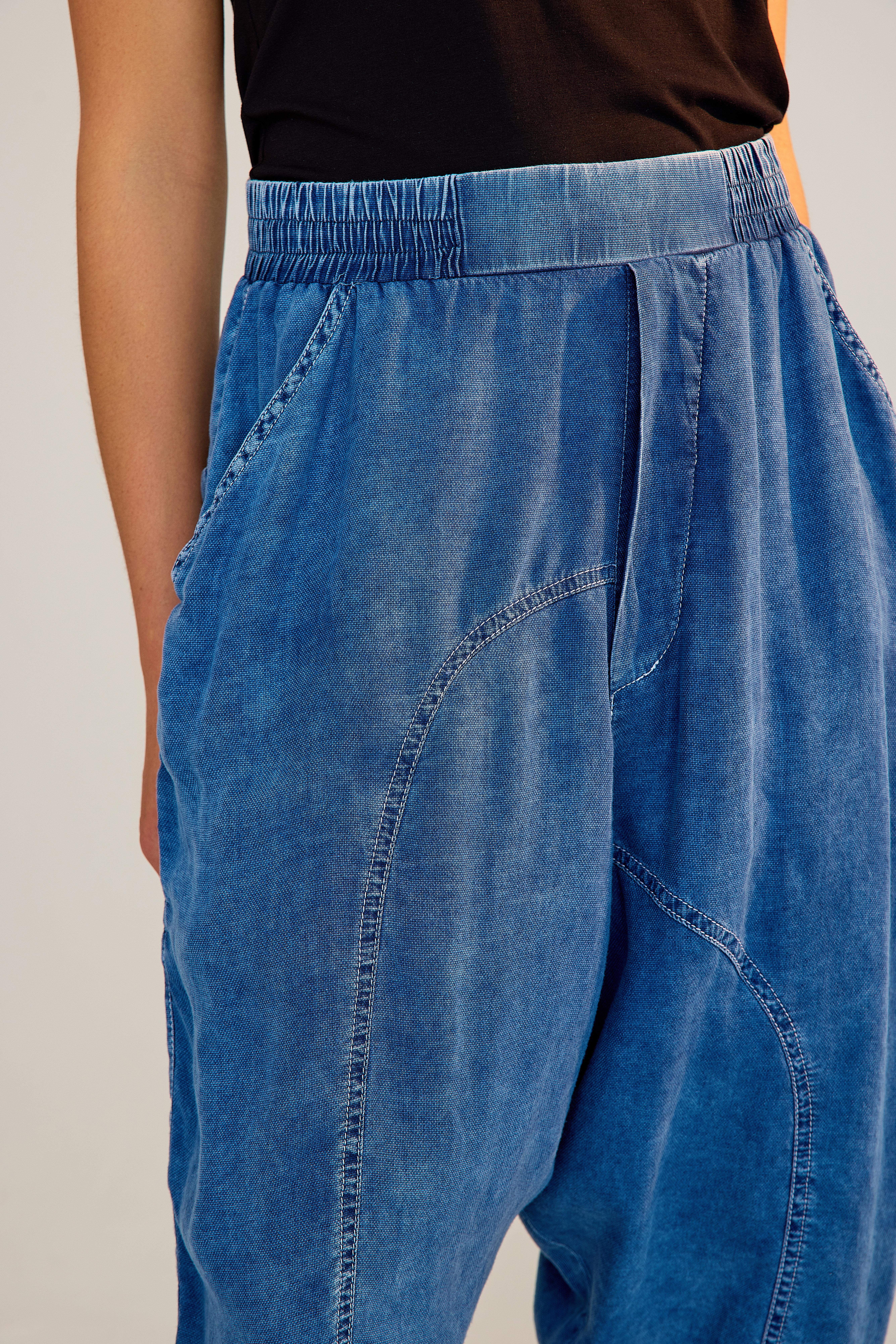 Tencel trousers with an elastic waistband – soft, breathable, and sustainably stylish, designed with a denim-look finish. A timeless avant-garde essential for modern wardrobes, perfect for wholesale buyers and retail fashion boutiques