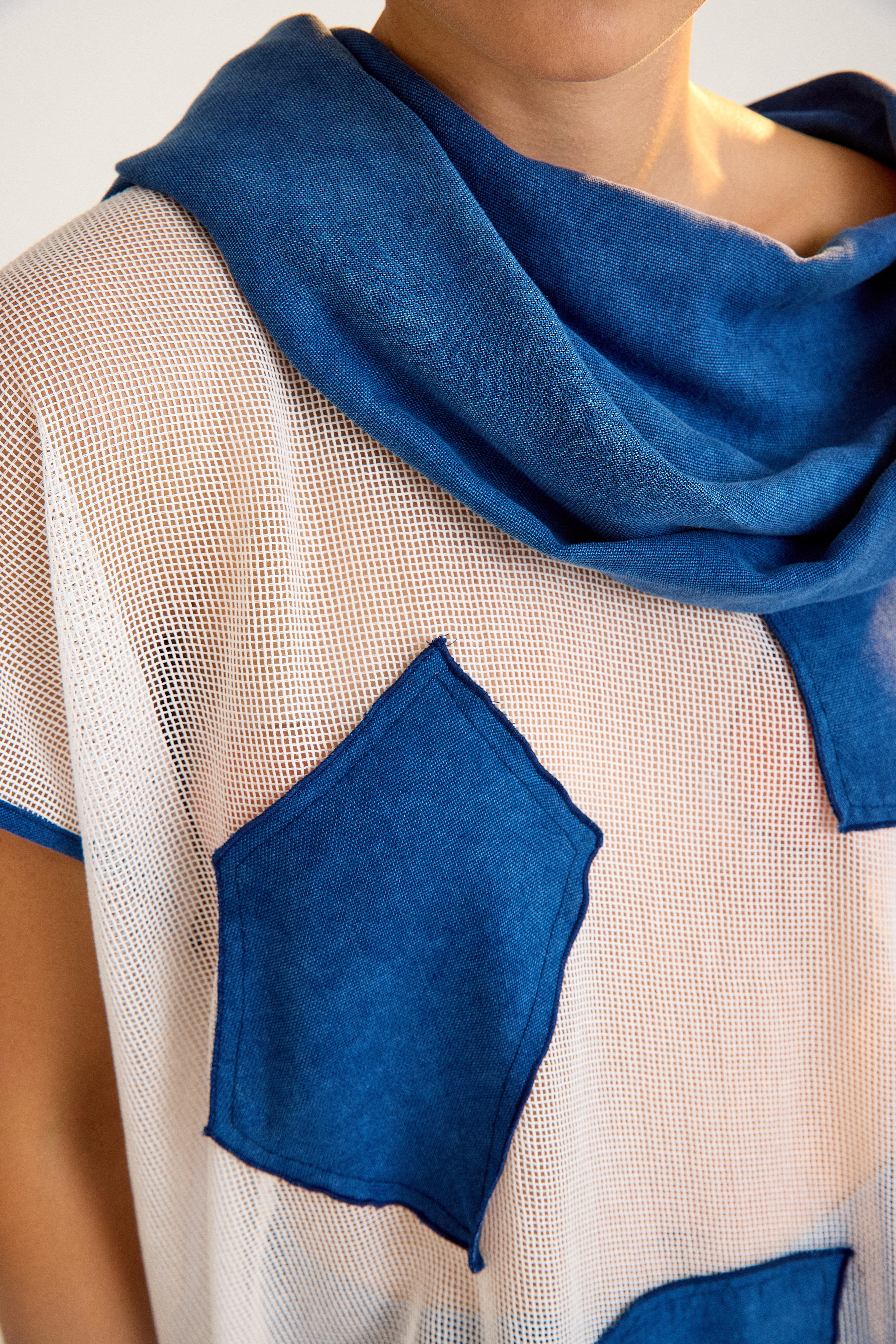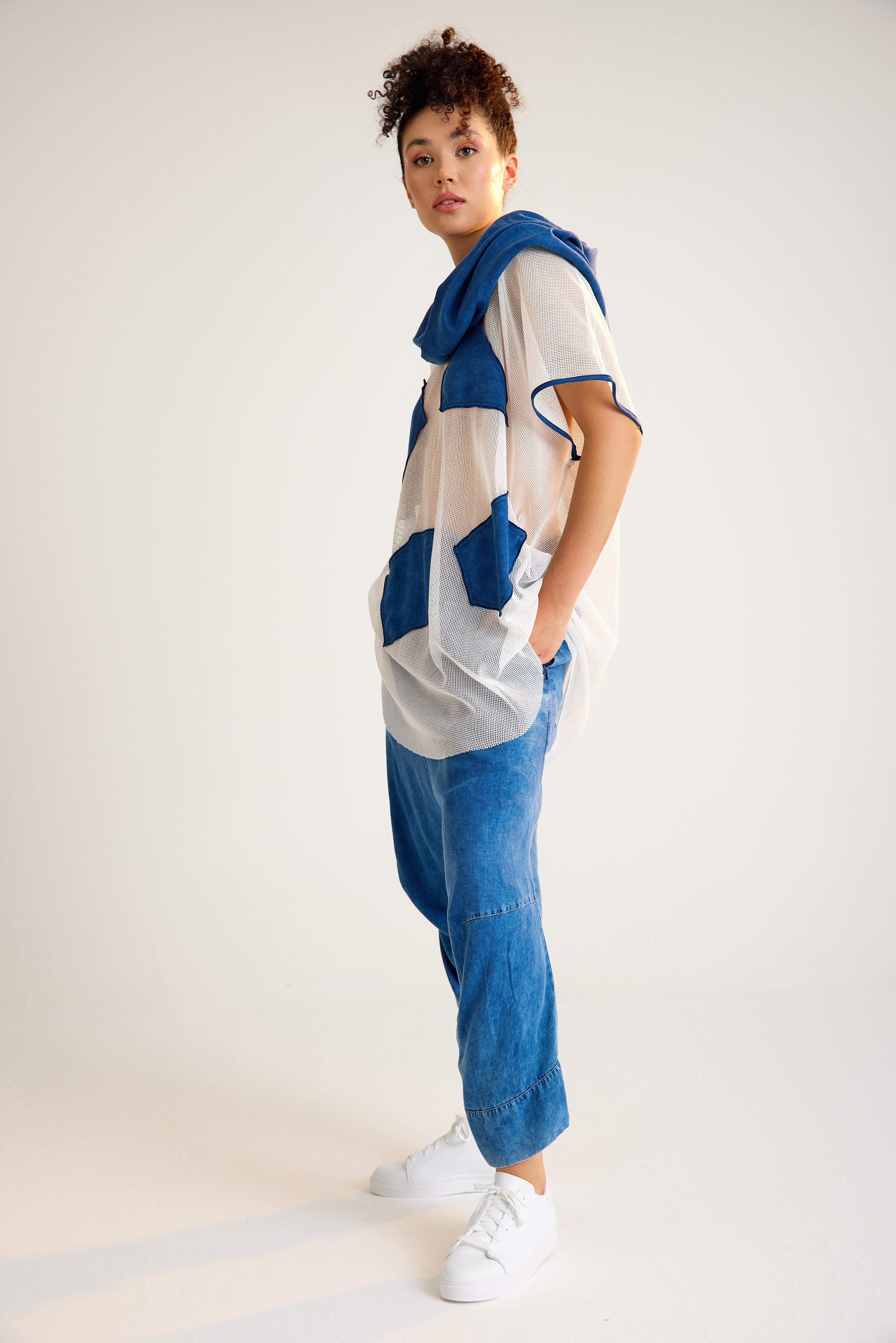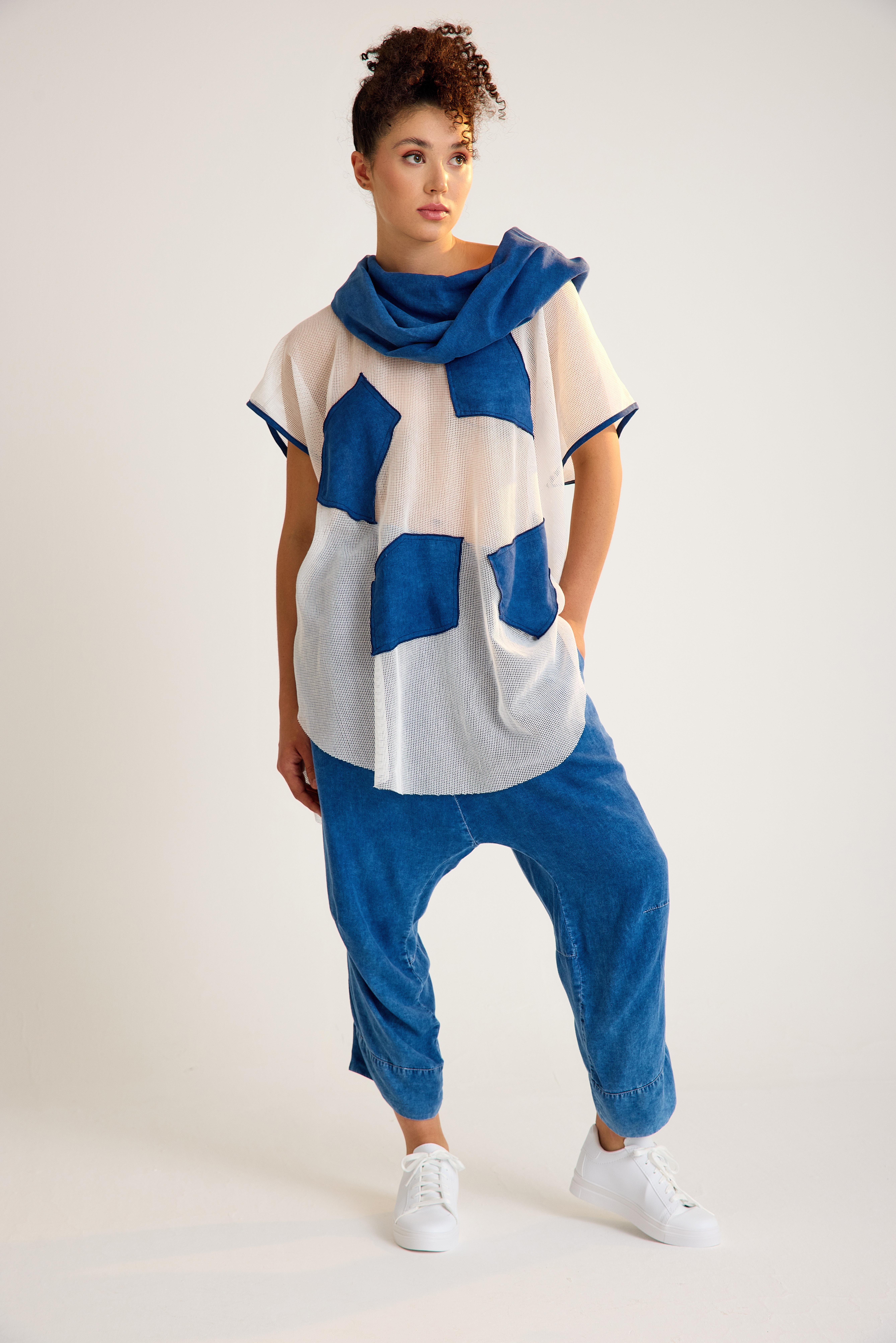 Blue-White Oversize Tencel Tunic (25064)