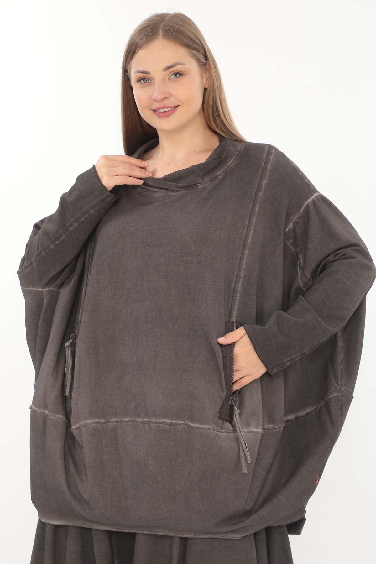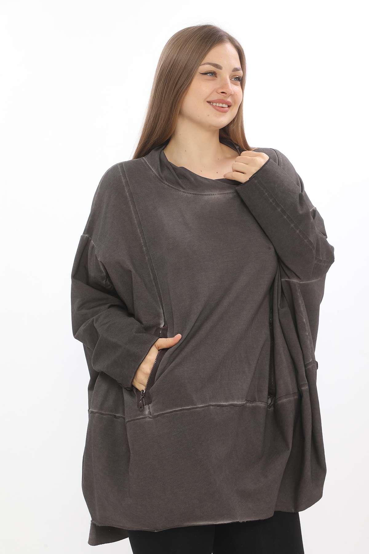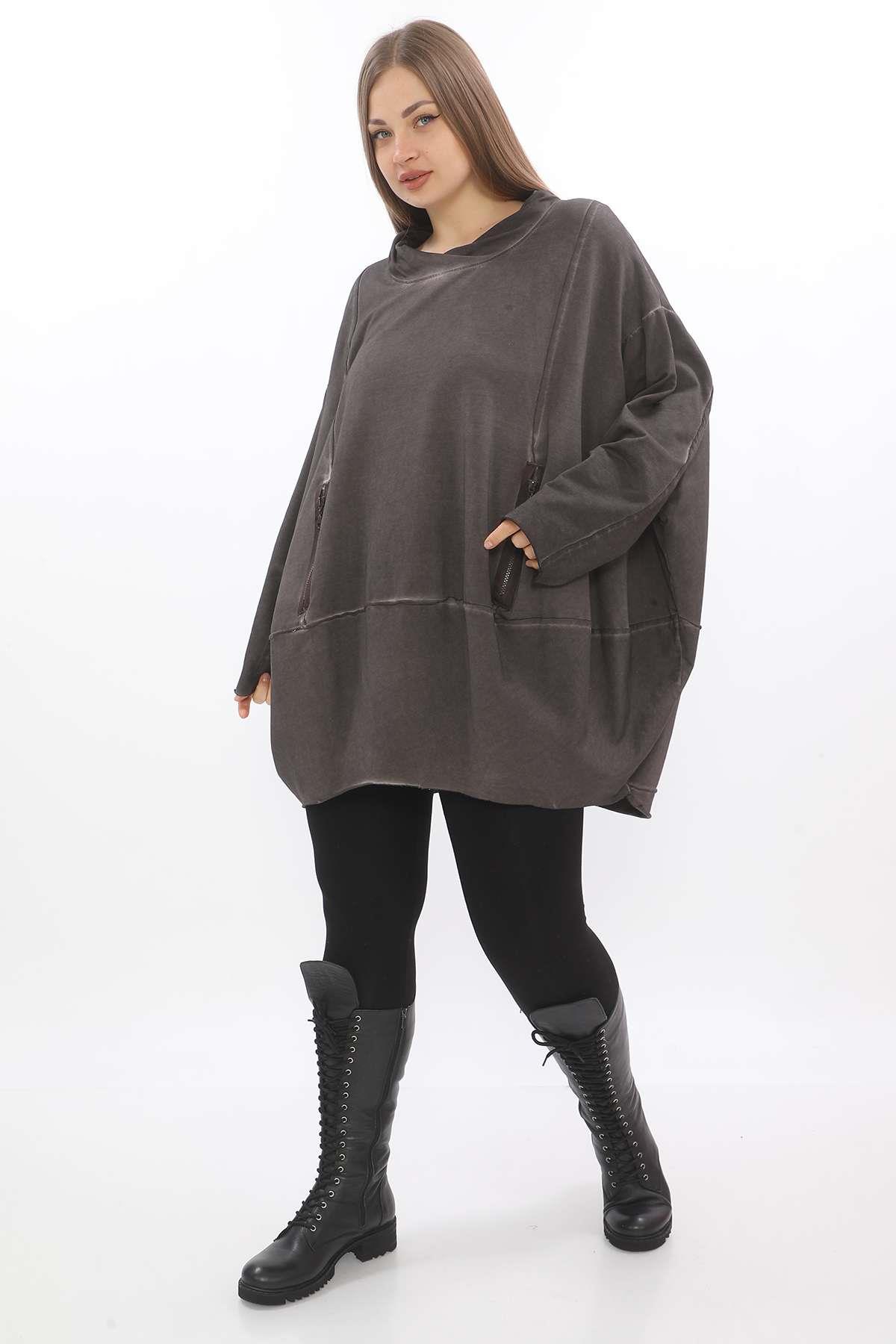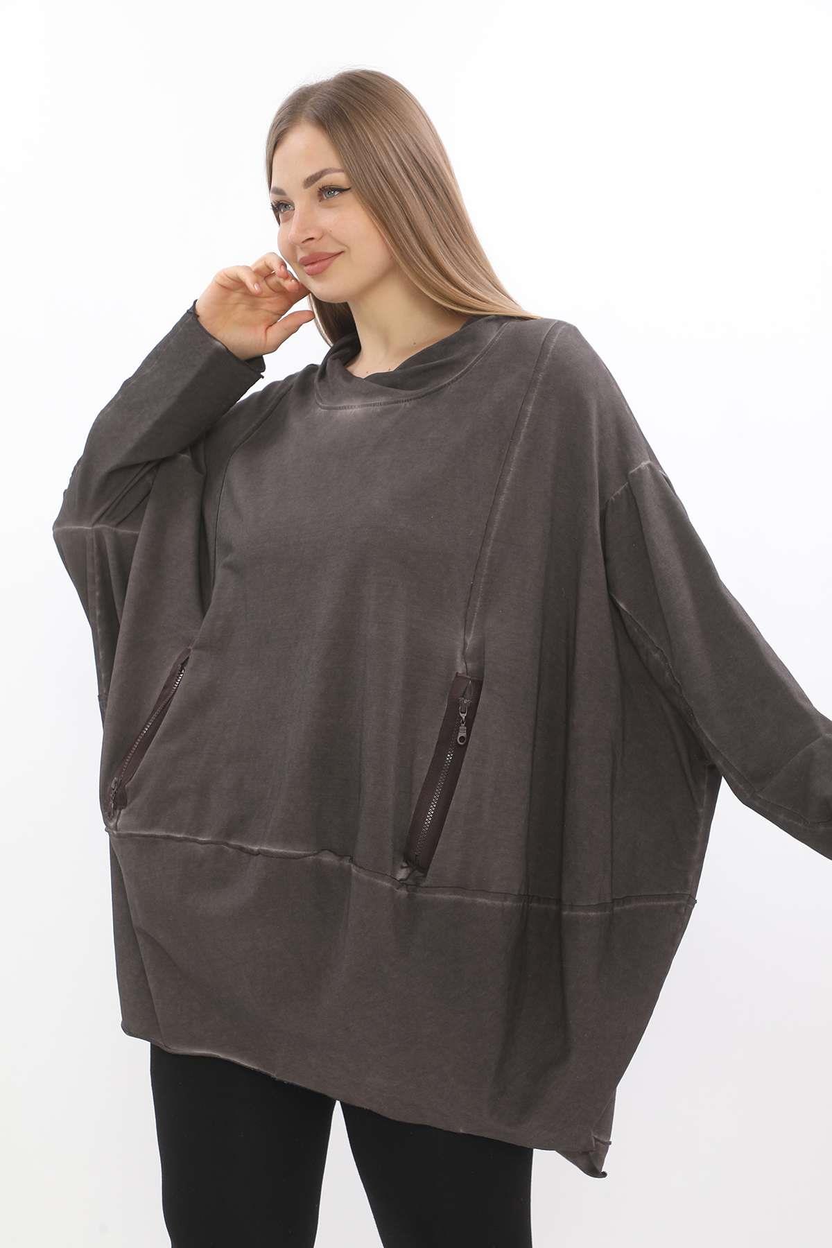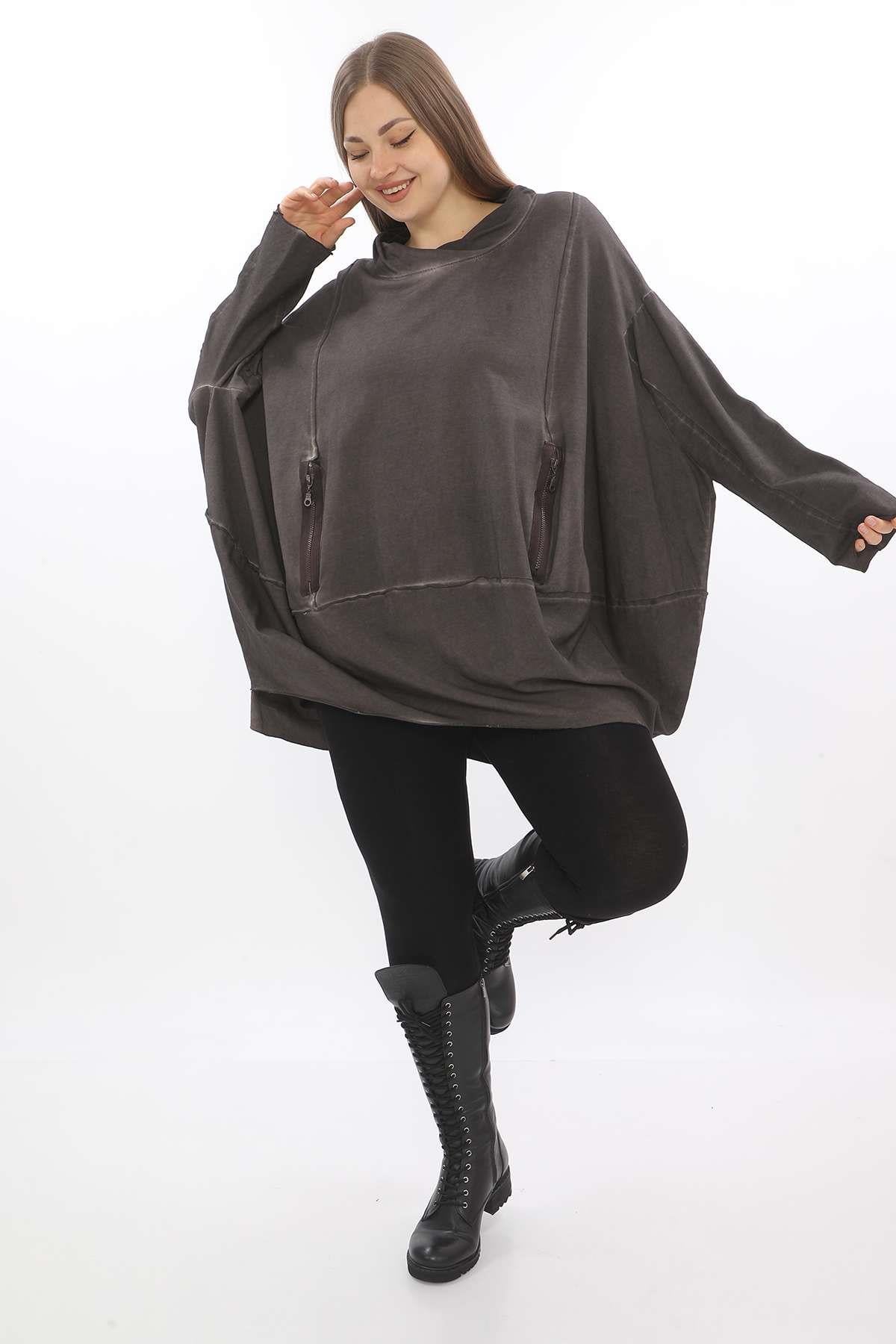 Oversize Hooded Tunic – Relaxed Fit, Double-Zip, Modern Comfort This oversize hooded tunic is designed with a relaxed silhouette and crafted from soft, washed fabric for a casual yet refined feel. Featuring a double-ended front zipper and two practical zippered pockets, it blends functionality with contemporary style. Dropped shoulders and an easy hood with drawstring enhance its laid-back character, while the oversized cut ensures all-day comfort. Perfect for layering or wearing solo, it’s a versatile staple for effortless everyday outfits. Key features: Oversize fit with dropped shoulders Double-ended front zipper Two functional front zip pockets Hood with drawstring Washed cotton-blend fabric for comfort A modern essential that combines ease, practicality, and style — ideal for casual wear with a contemporary twist.