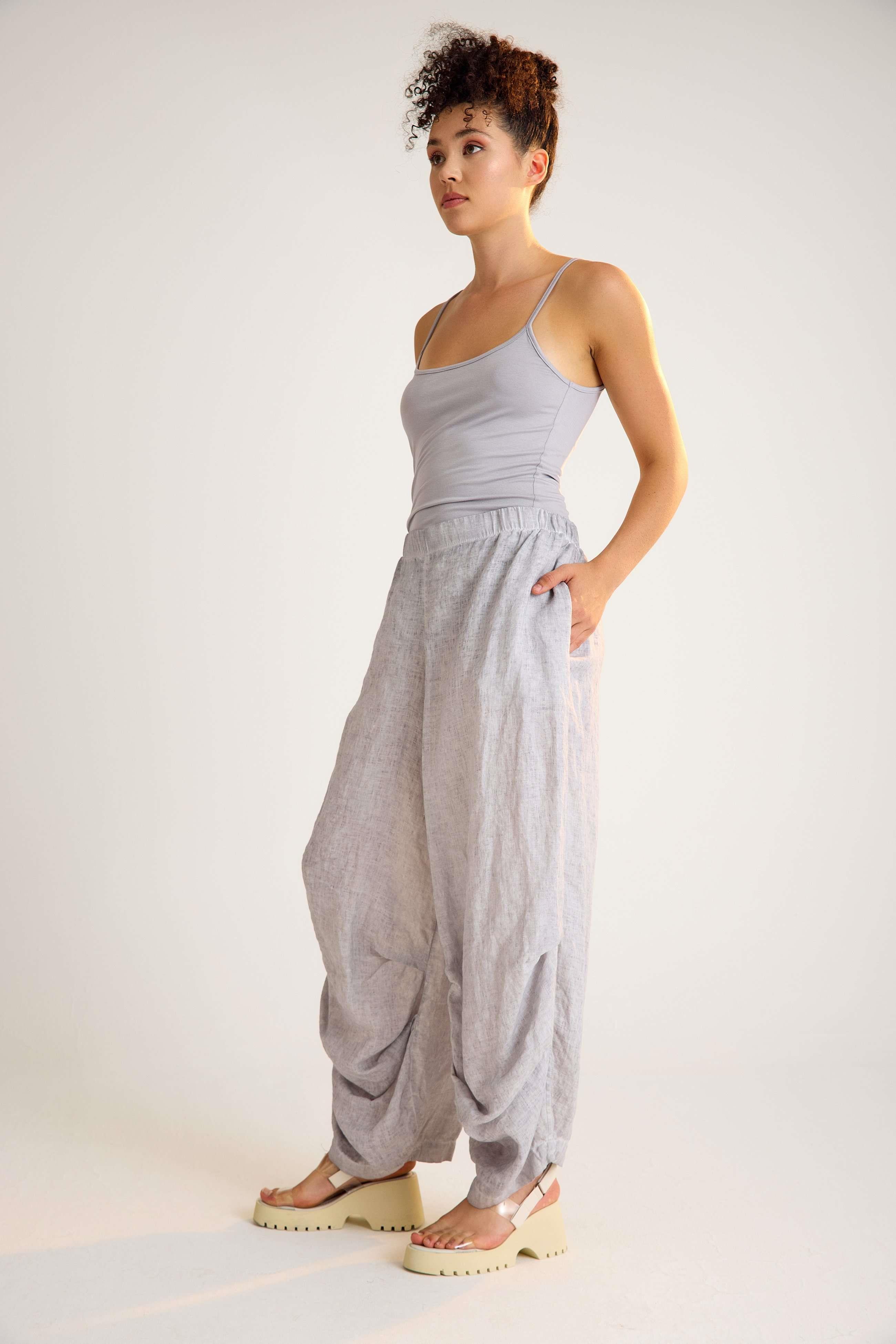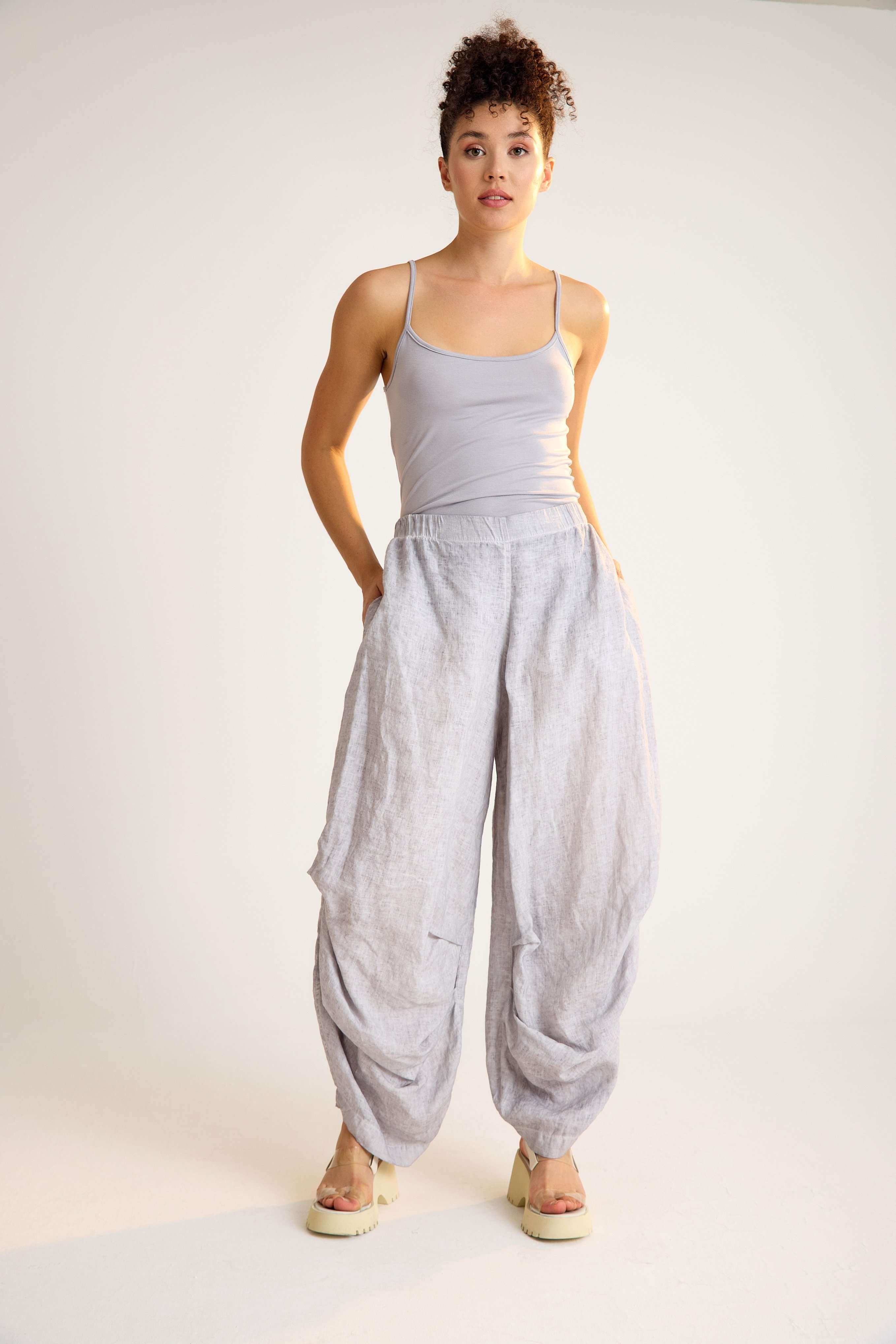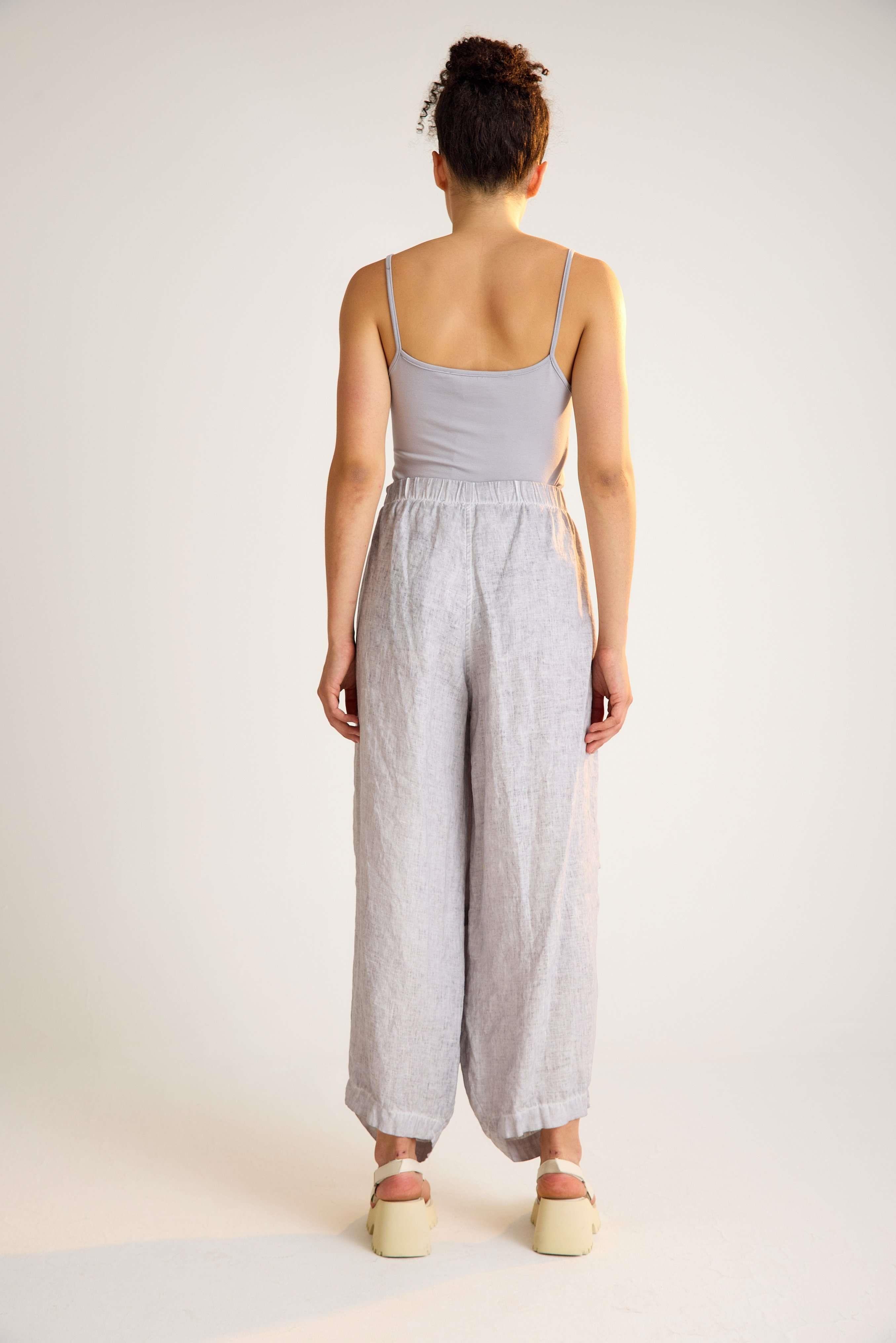 Linen trousers with an elastic waistband – lightweight, breathable, and effortlessly stylish. A timeless avant-garde essential for summer wardrobes, ideal for wholesale buyers and retail fashion boutiques.