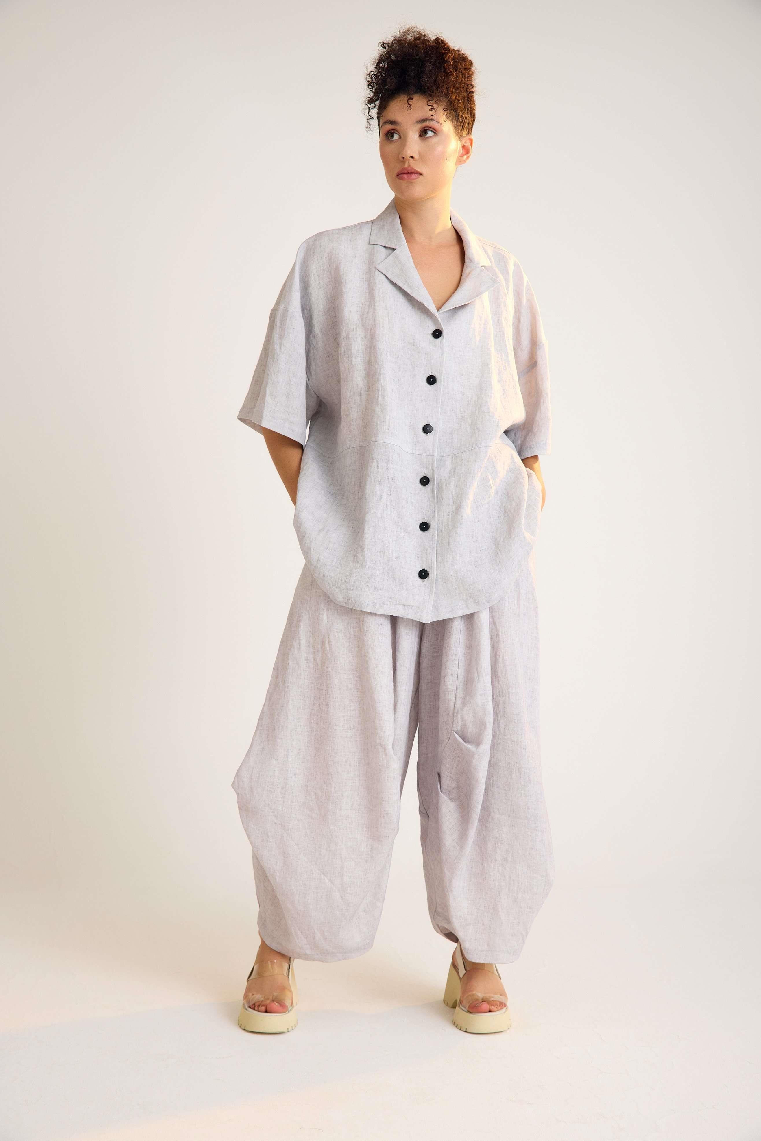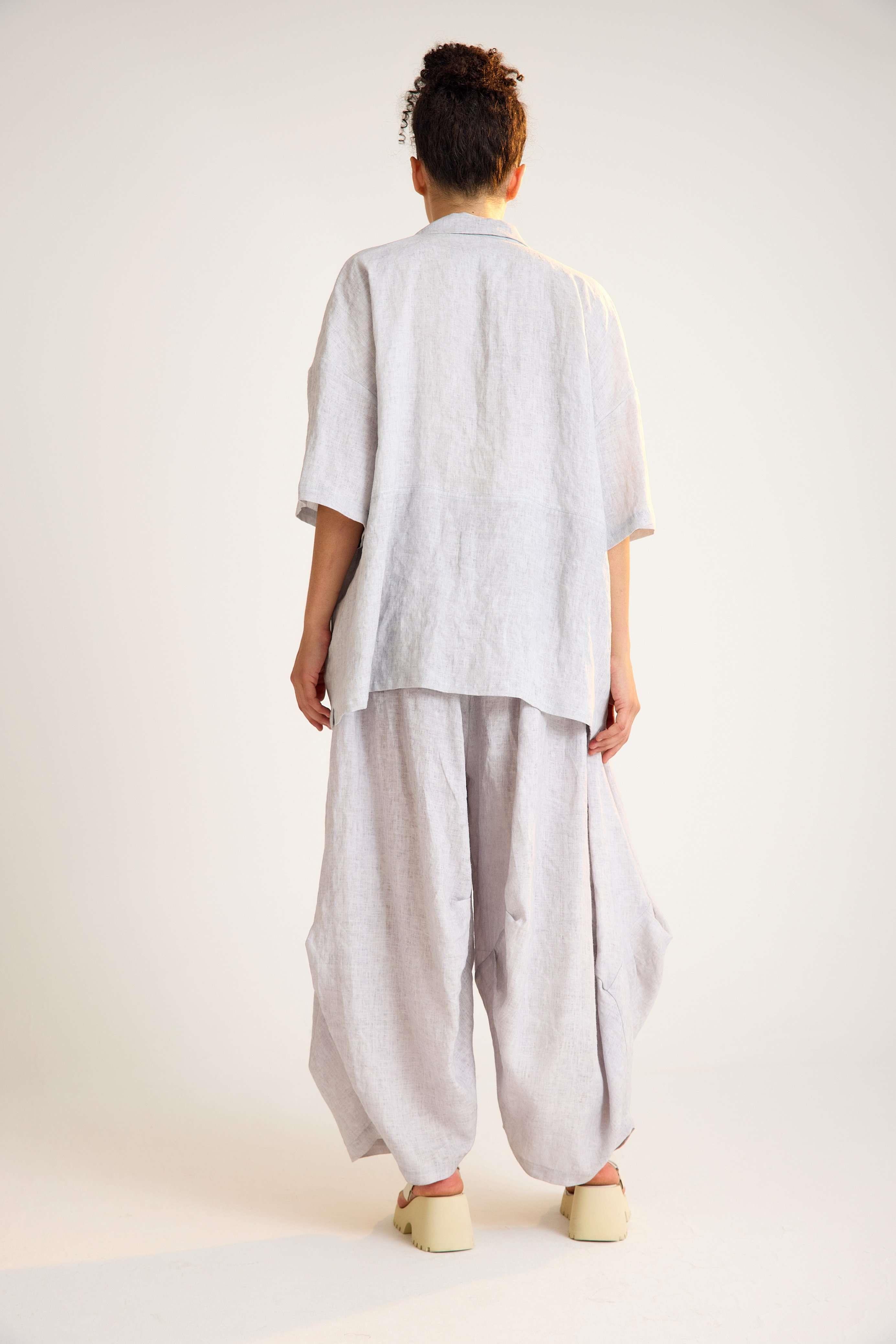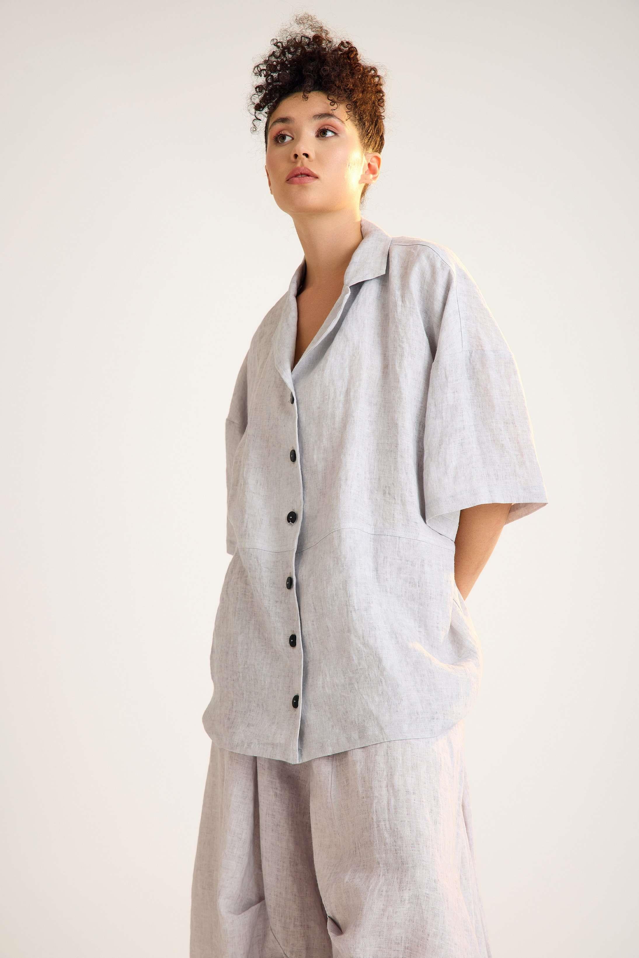 Oversized linen shirt with front button closure and relaxed three-quarter sleeves. Crafted from breathable linen, this timeless piece blends comfort with effortless style—perfect for both casual and elegant looks