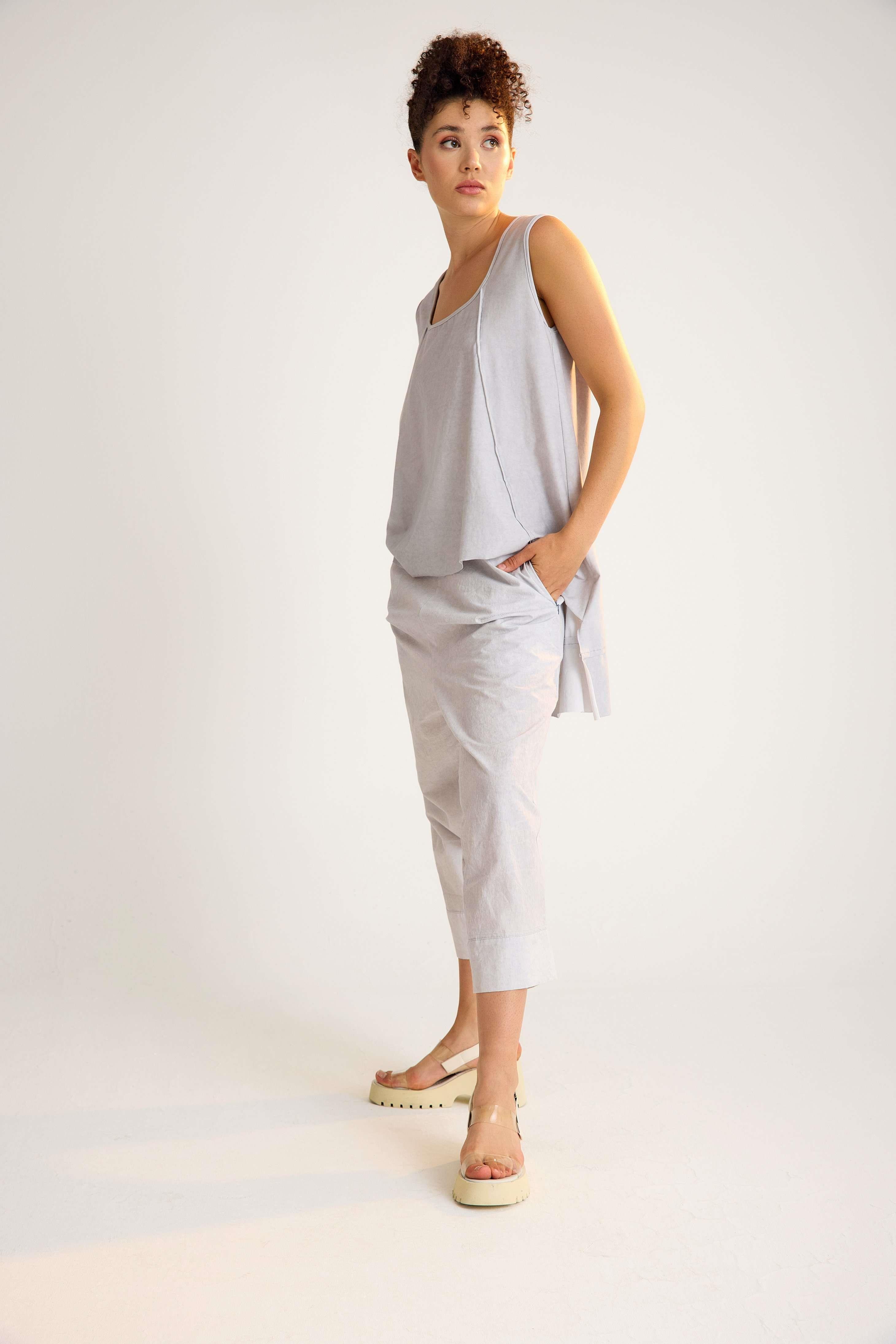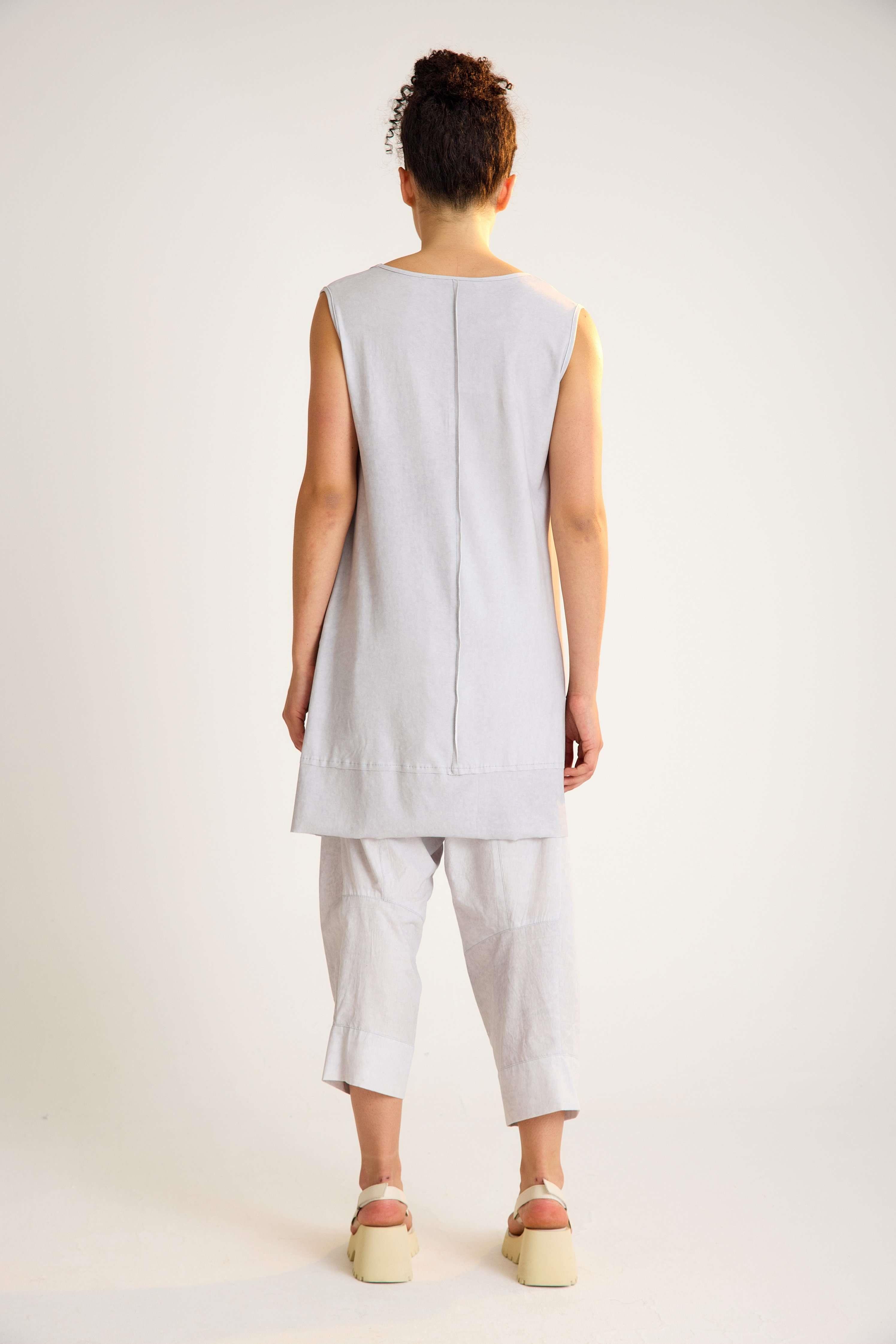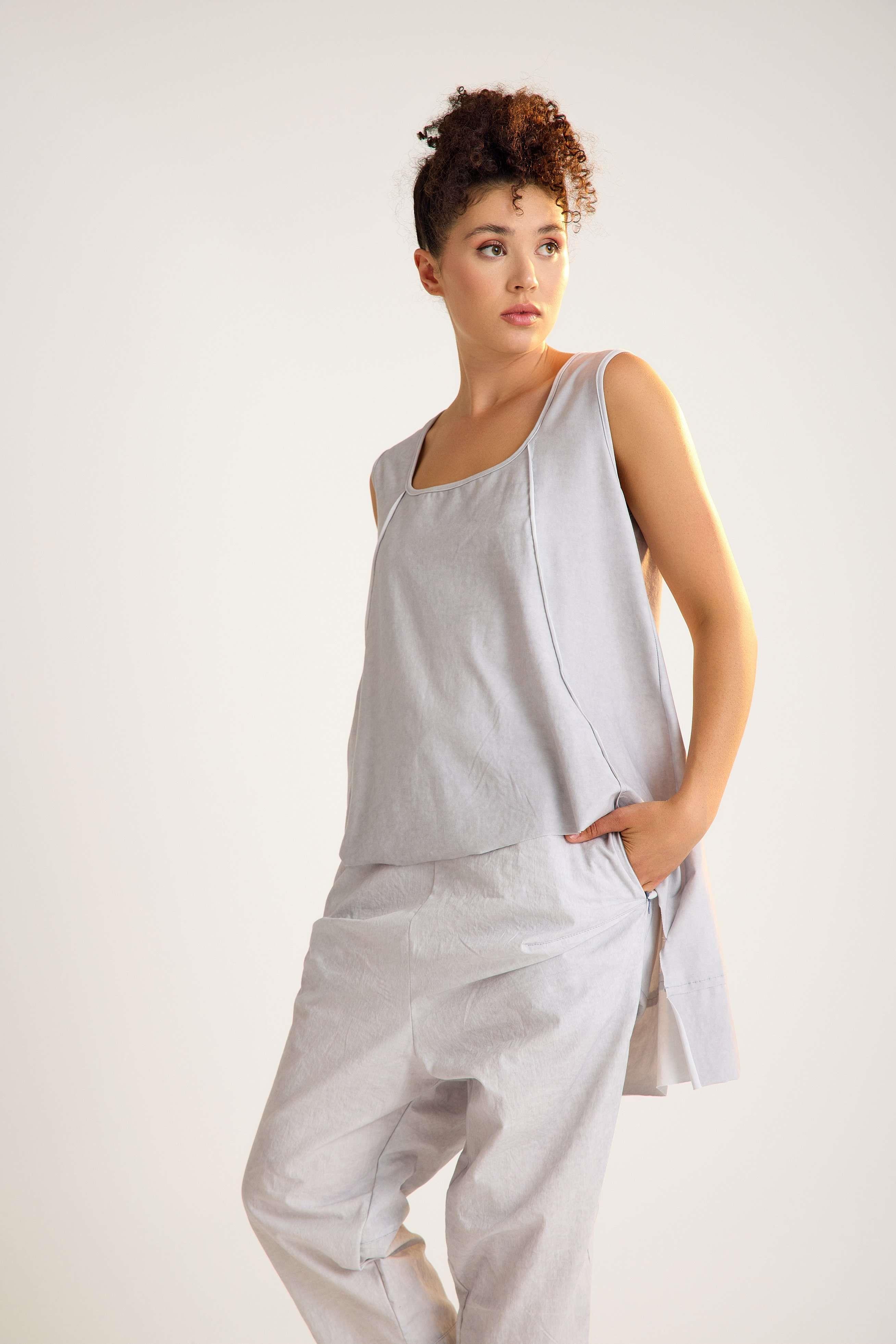 Sleeveless cotton tunic with a U-neckline and a stylish high-low hem. A versatile, breathable design that blends comfort with timeless elegance – perfect for wholesale orders and retail fashion collections.