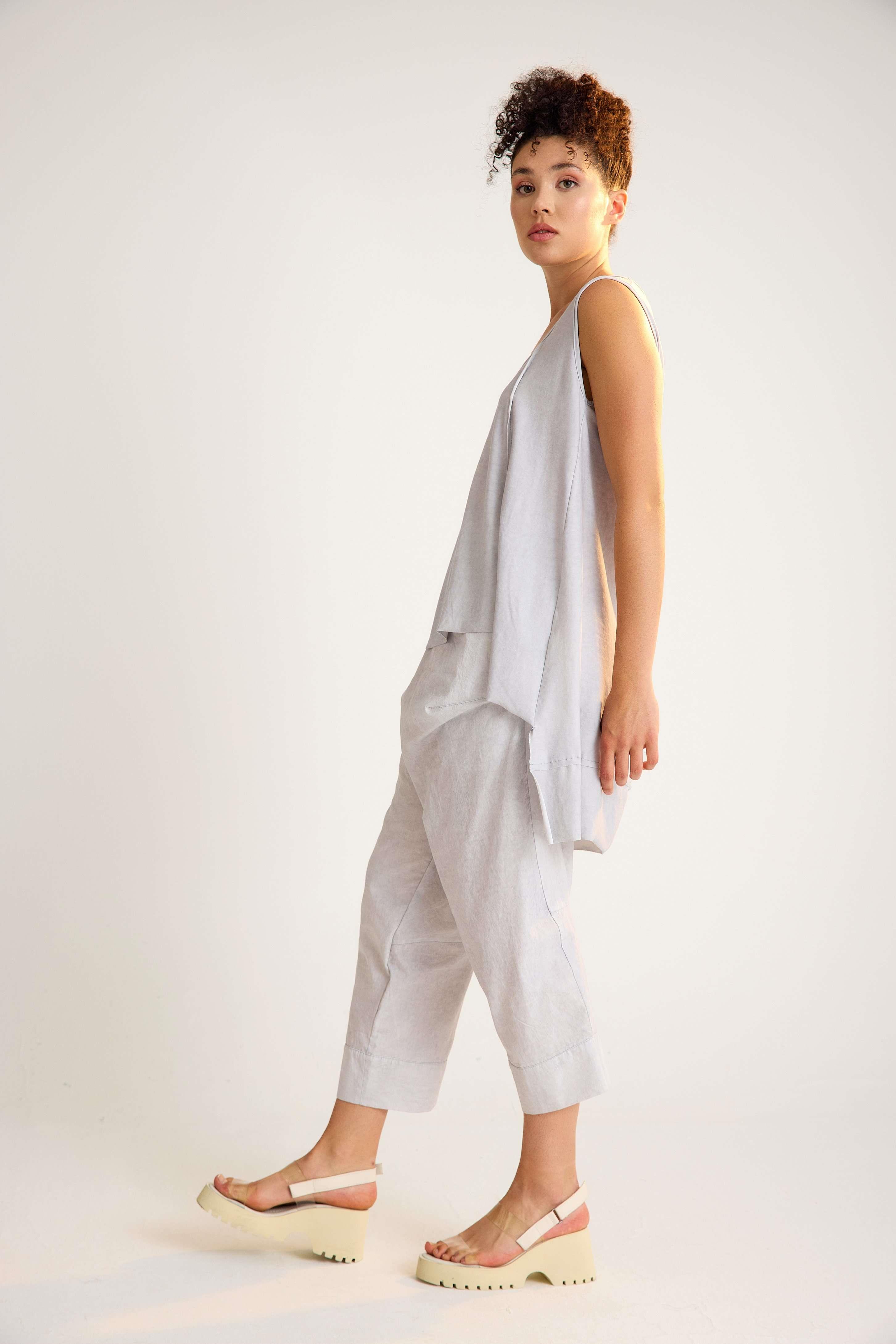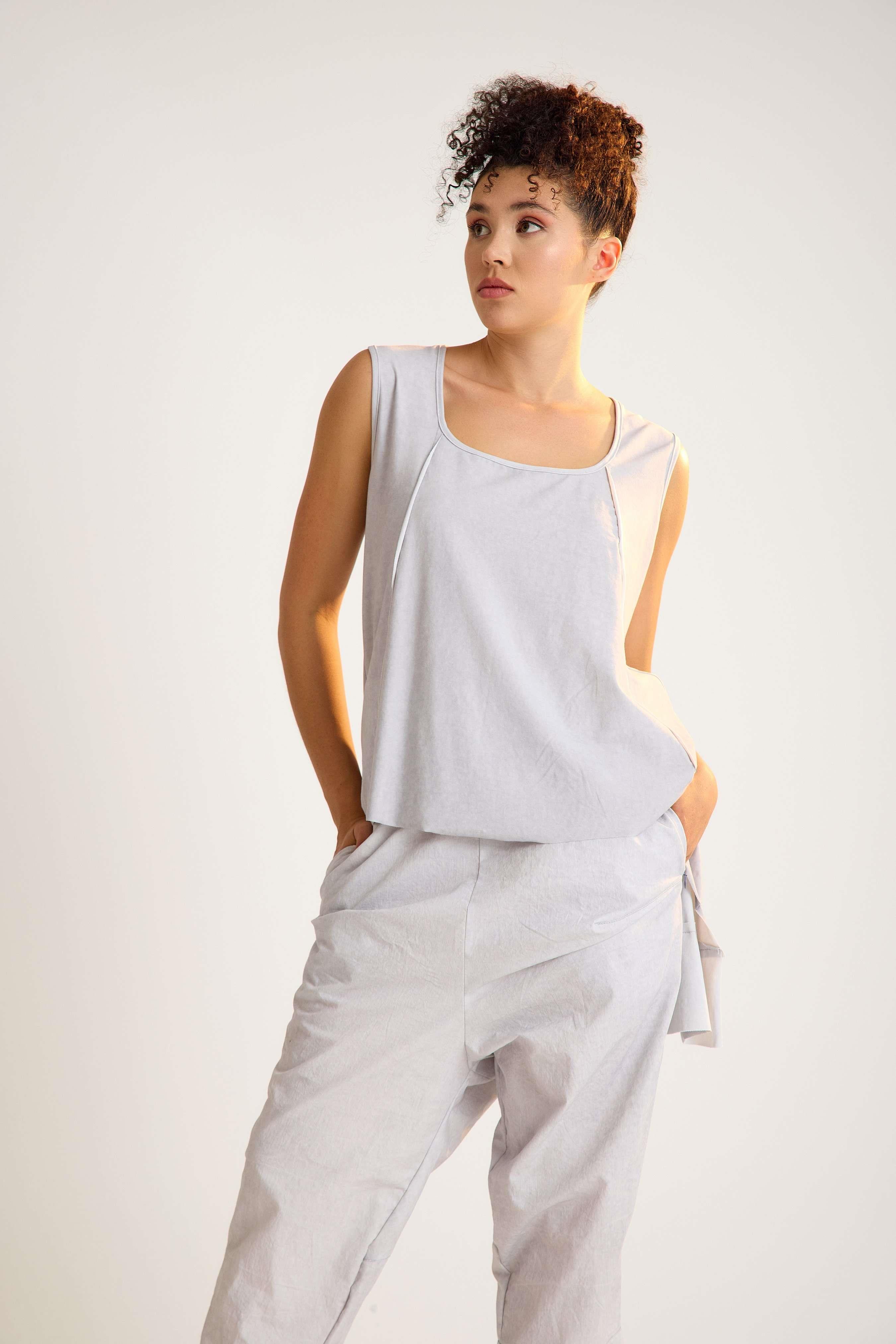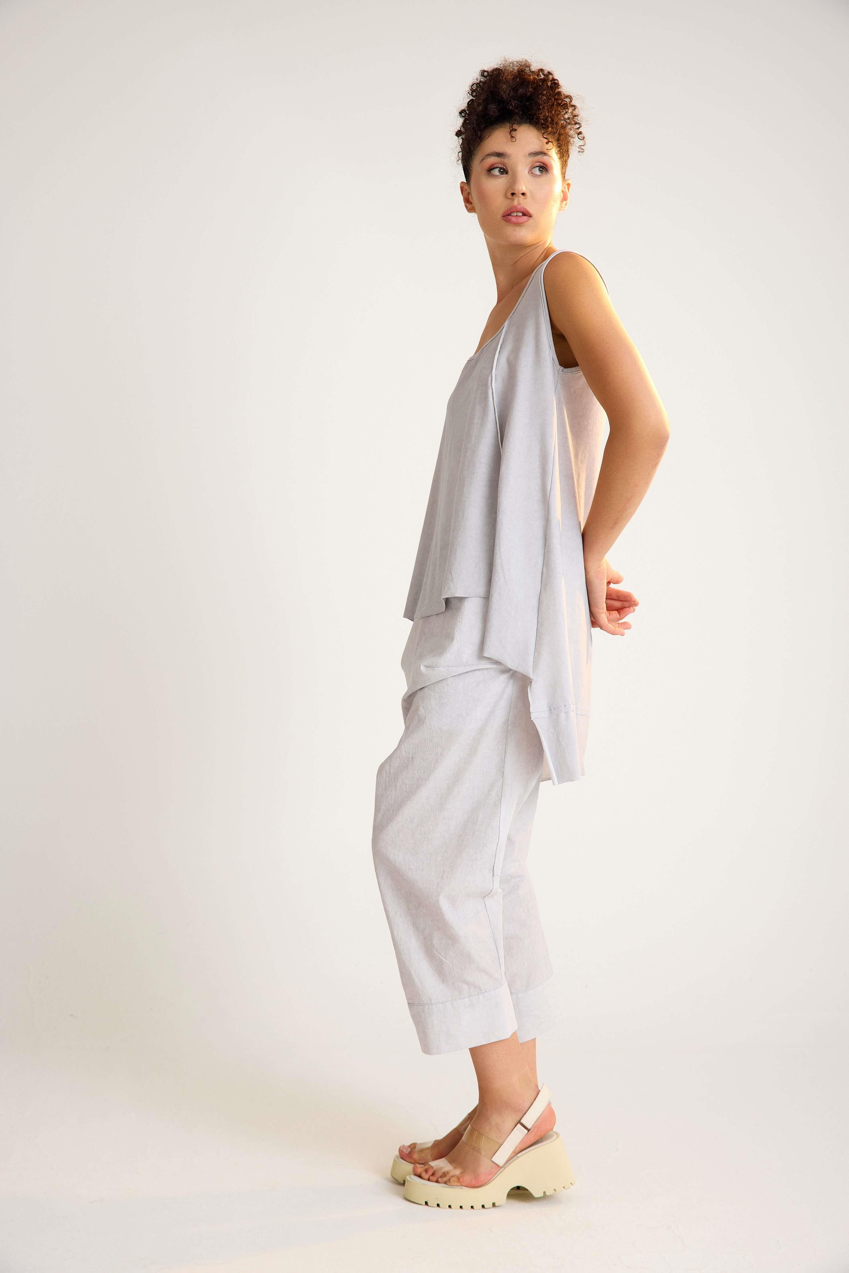 Sleeveless cotton tunic with a U-neckline and a stylish high-low hem. A versatile, breathable design that blends comfort with timeless elegance – perfect for wholesale orders and retail fashion collections.