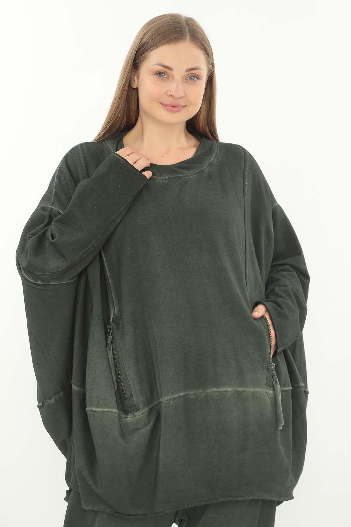 Oversize Cotton Tunic – Relaxed Fit, Modern Details This oversize tunic is designed for effortless comfort with a relaxed silhouette and washed cotton fabric. Featuring a round neckline and dropped shoulders, it offers a laid-back yet stylish look that’s perfect for everyday wear. Two practical front zip pockets add a modern edge while keeping essentials close at hand. The soft, cozy material with a slightly textured finish ensures ease of movement and all-day comfort, making it a versatile piece for casual styling. Key features: Oversize fit with dropped shoulders Round neckline for a clean look Two functional zip pockets Washed cotton-blend fabric Comfortable, relaxed silhouette A contemporary essential that blends practicality with timeless casual style.