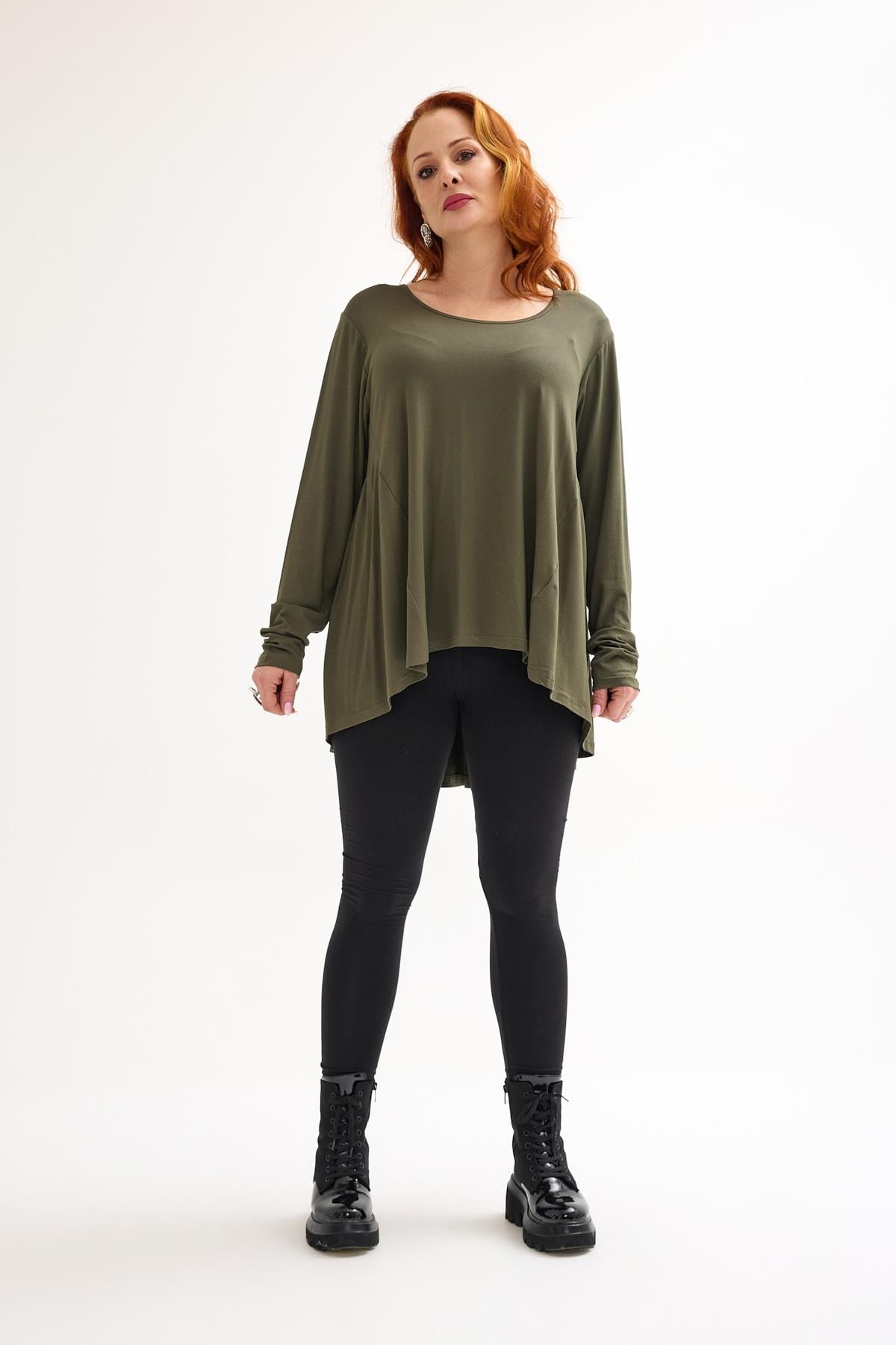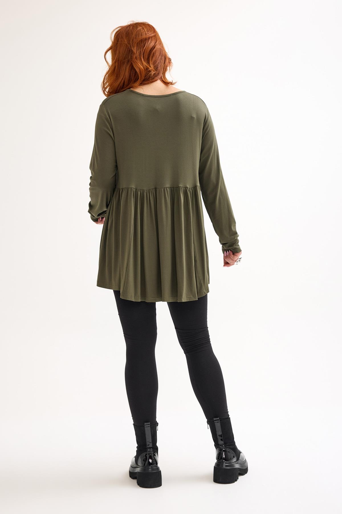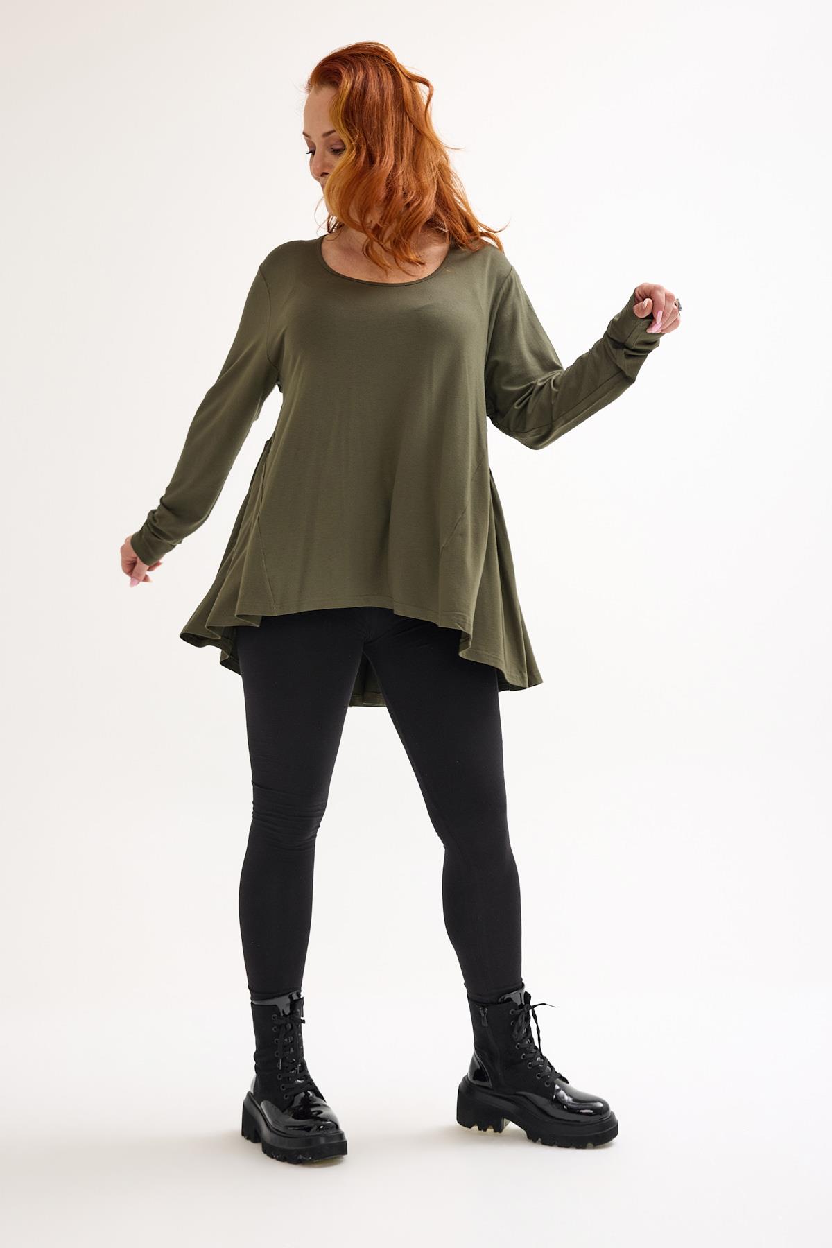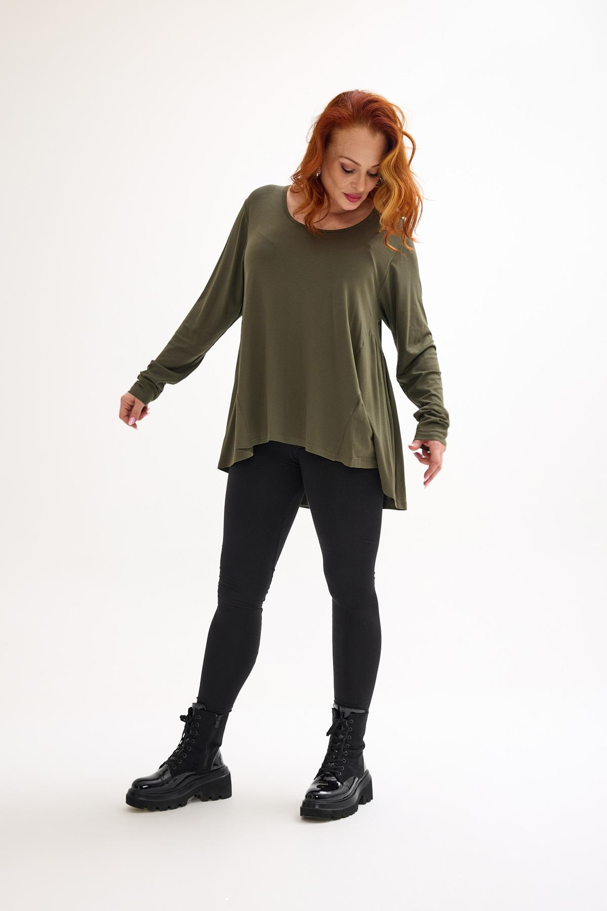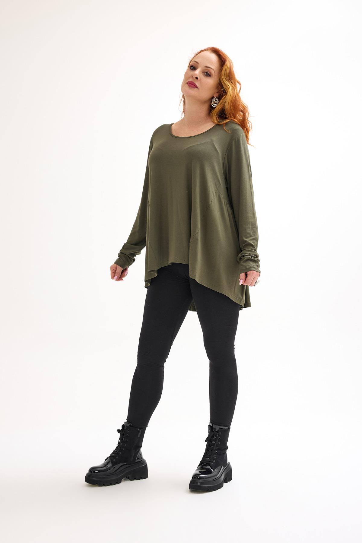 Viscose tunic with a straight front, extended back, and pleated hem detail. Designed with a crew neckline and long sleeves, this timeless piece combines elegance with everyday comfort.