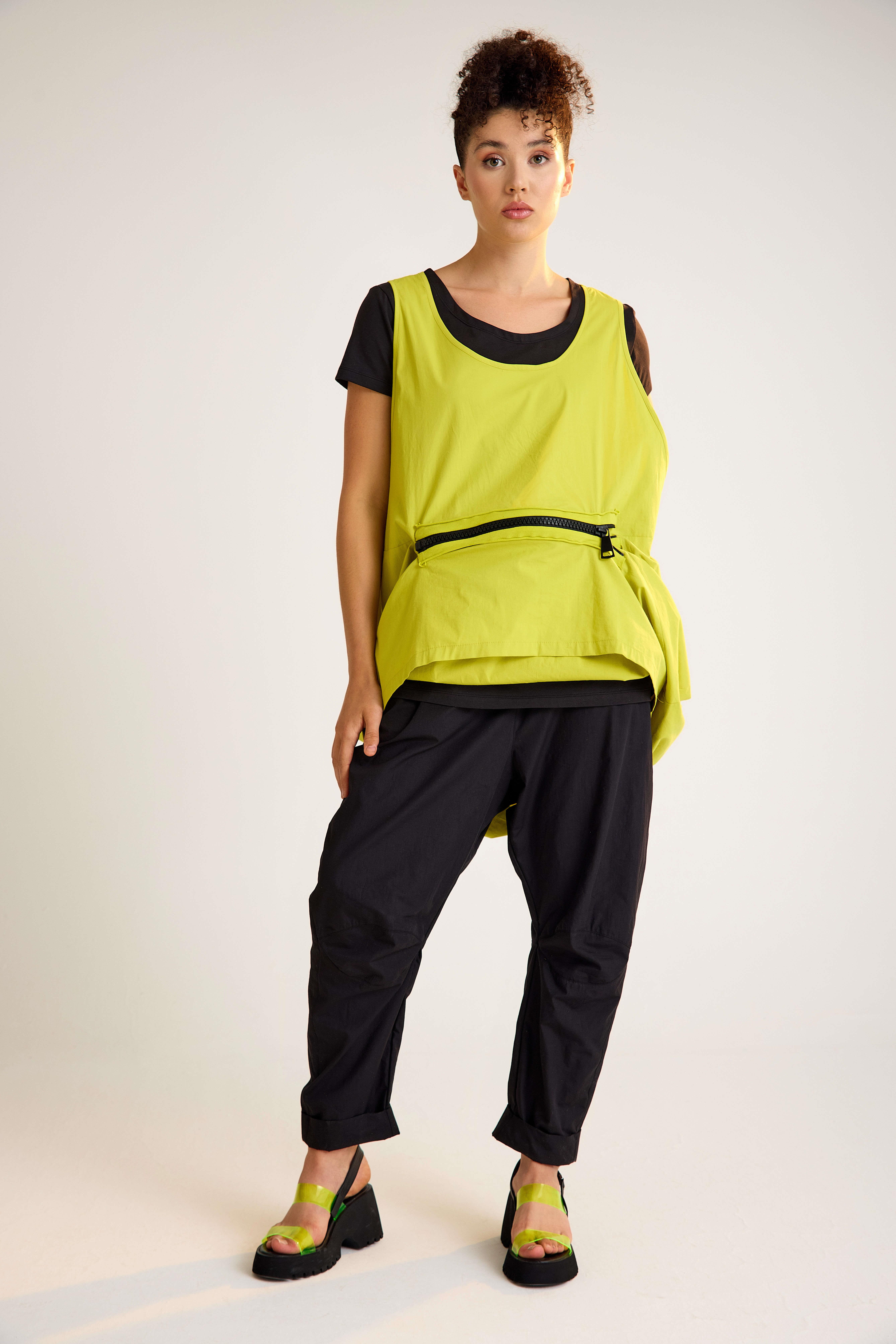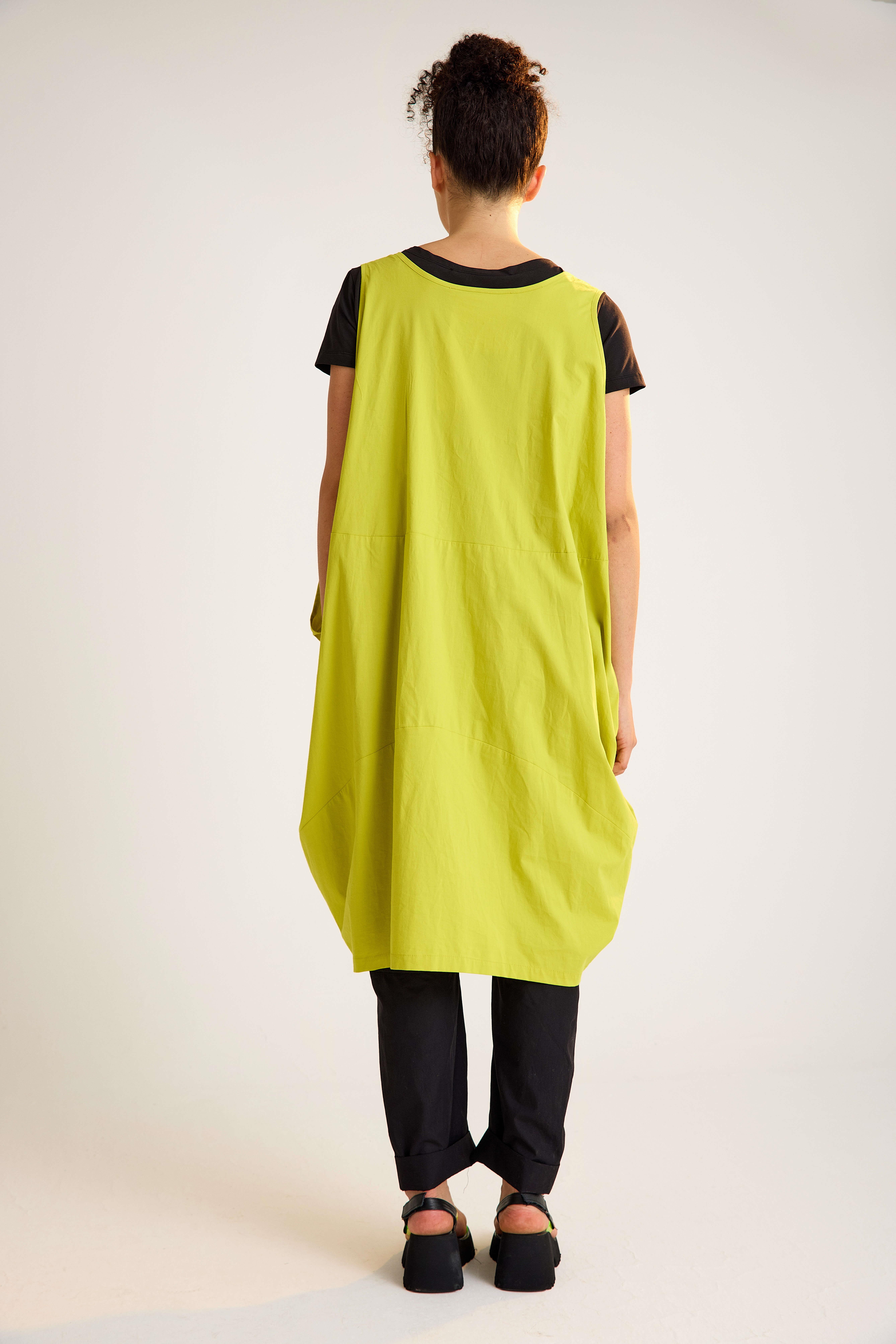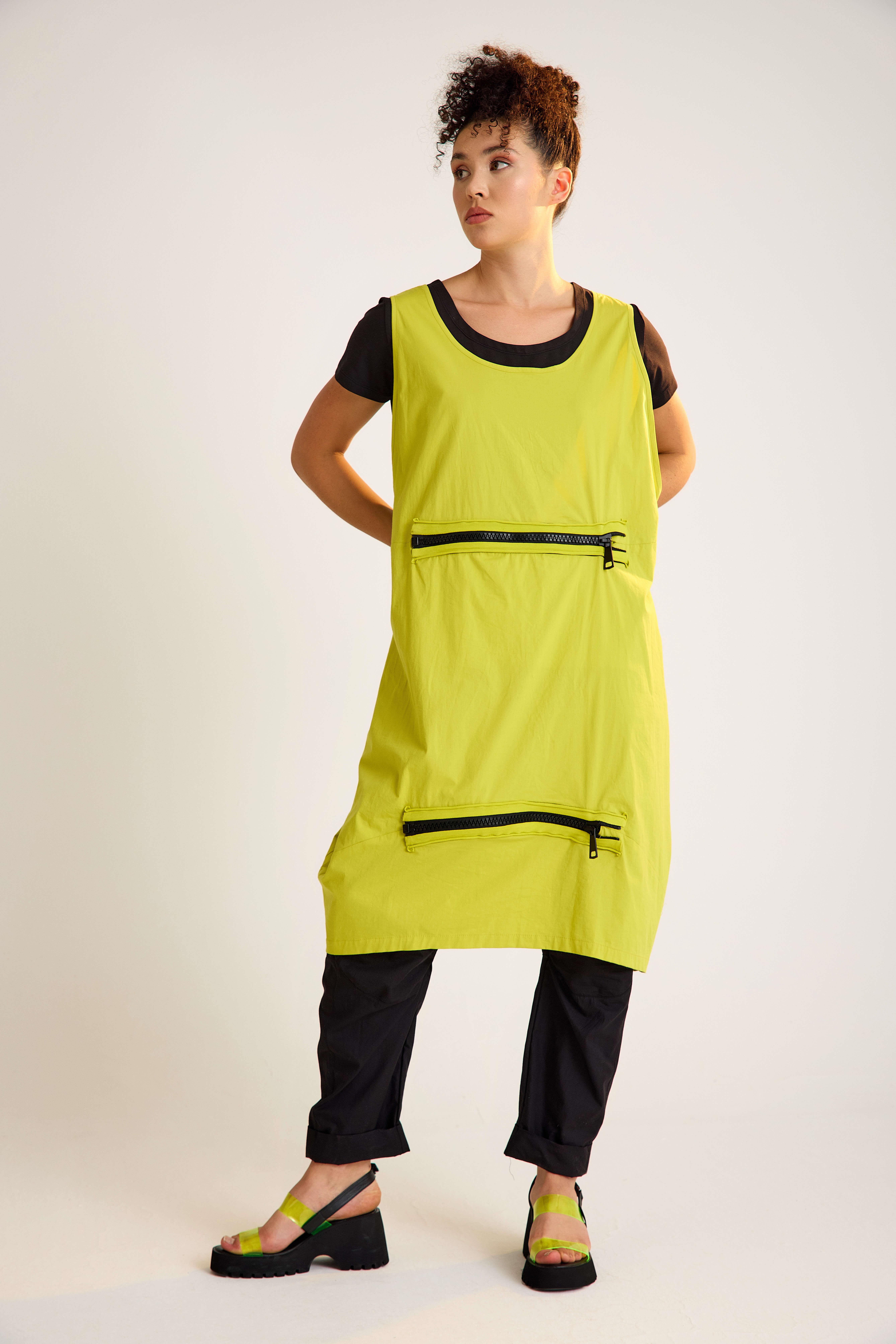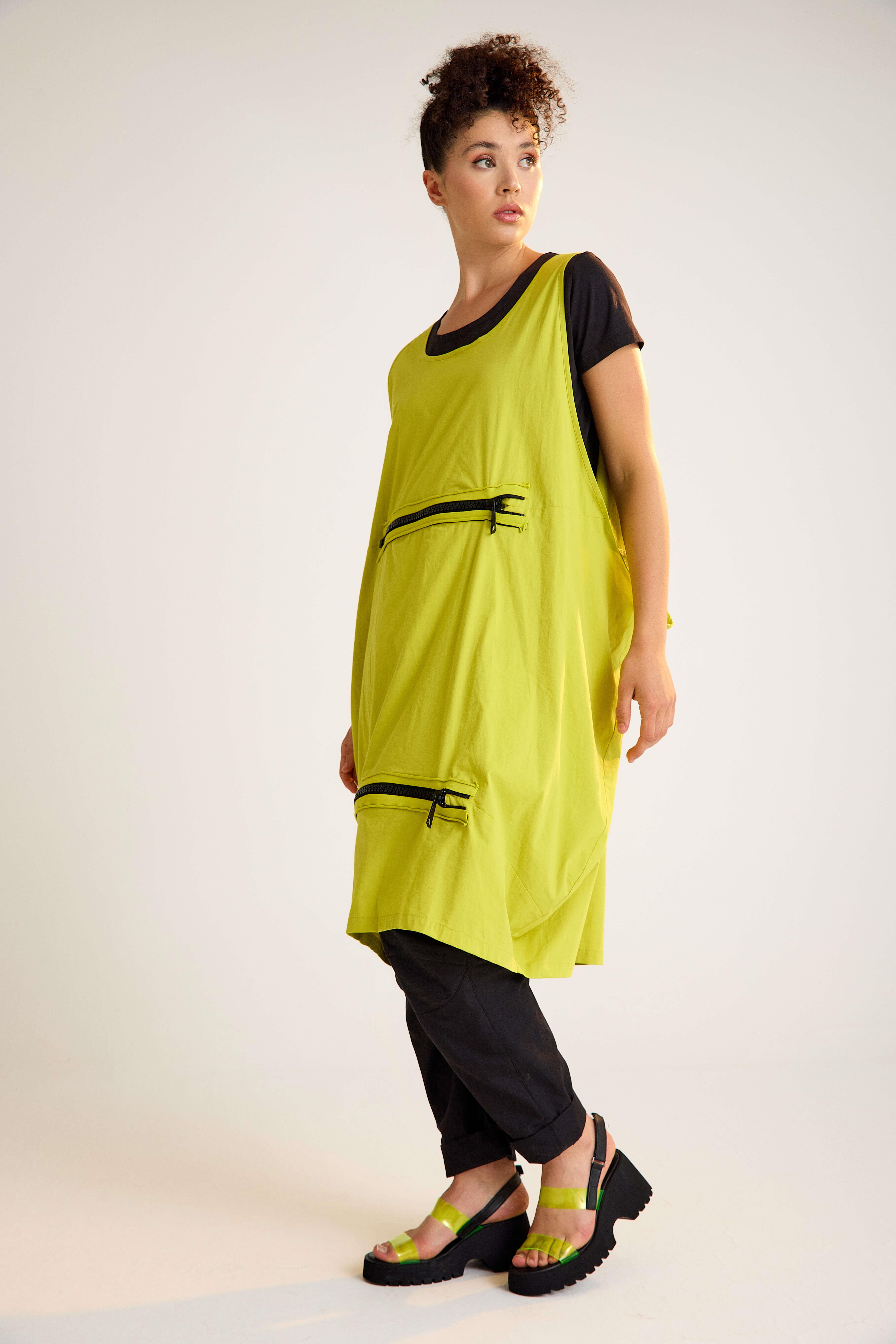 Oversize Cotton Tunic – Modern, Versatile, Effortless This oversize cotton tunic brings together comfort and statement style with its relaxed fit and sleek zip details. Designed sleeveless for easy layering, the tunic can be worn long or shortened thanks to its adjustable length, offering versatility for different looks and occasions. Crafted from breathable 100% cotton, it combines effortless wearability with a contemporary silhouette. The scooped hemline and minimalist design elevate its oversized form, while the front zipper detail adds a bold, modern edge. Key features: Sleeveless, oversize cut for layering Adjustable length with functional zippers Relaxed, breathable cotton fabric Modern scooped hemline 100% cotton composition A versatile piece that transitions seamlessly from casual daywear to elevated evening styling.
