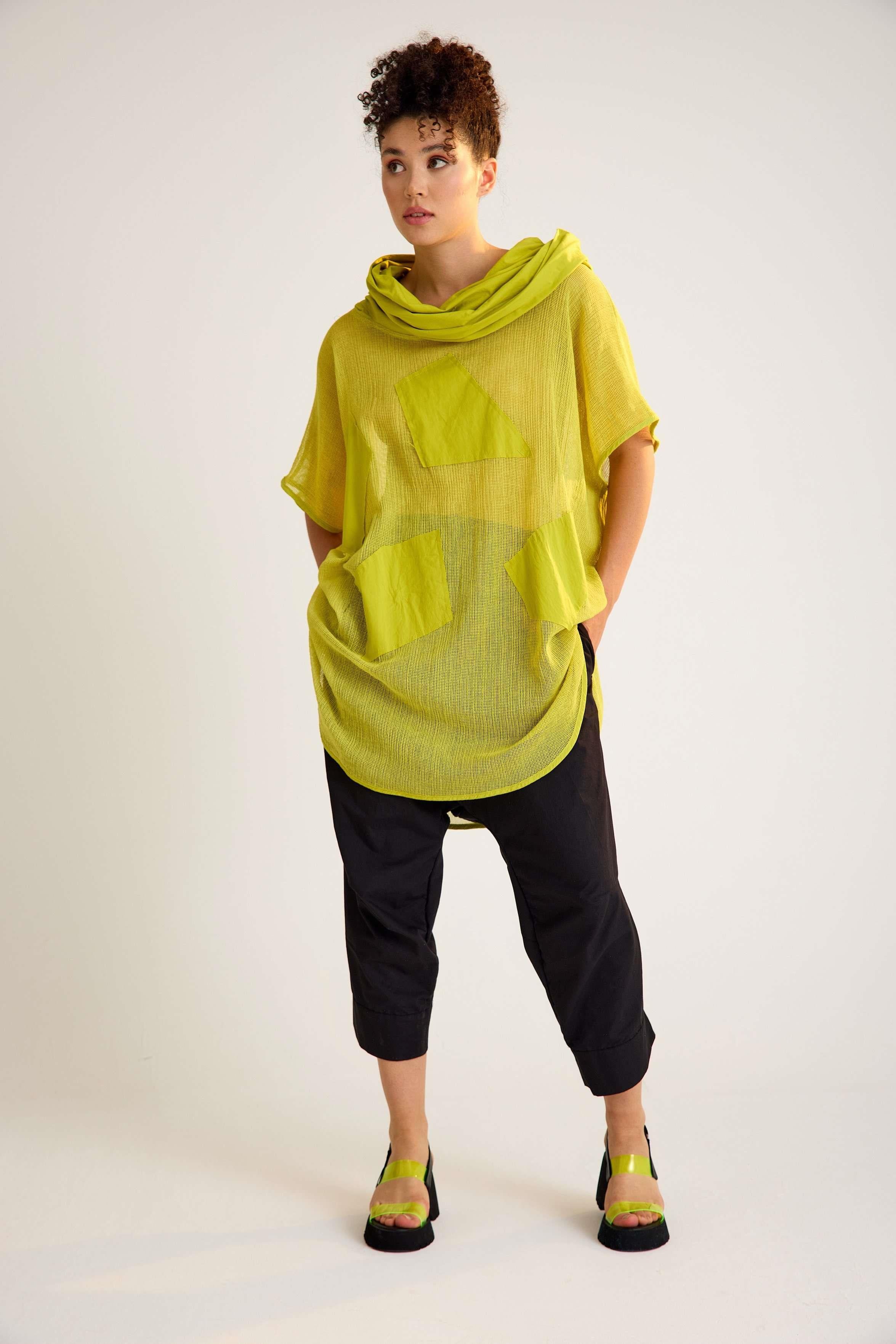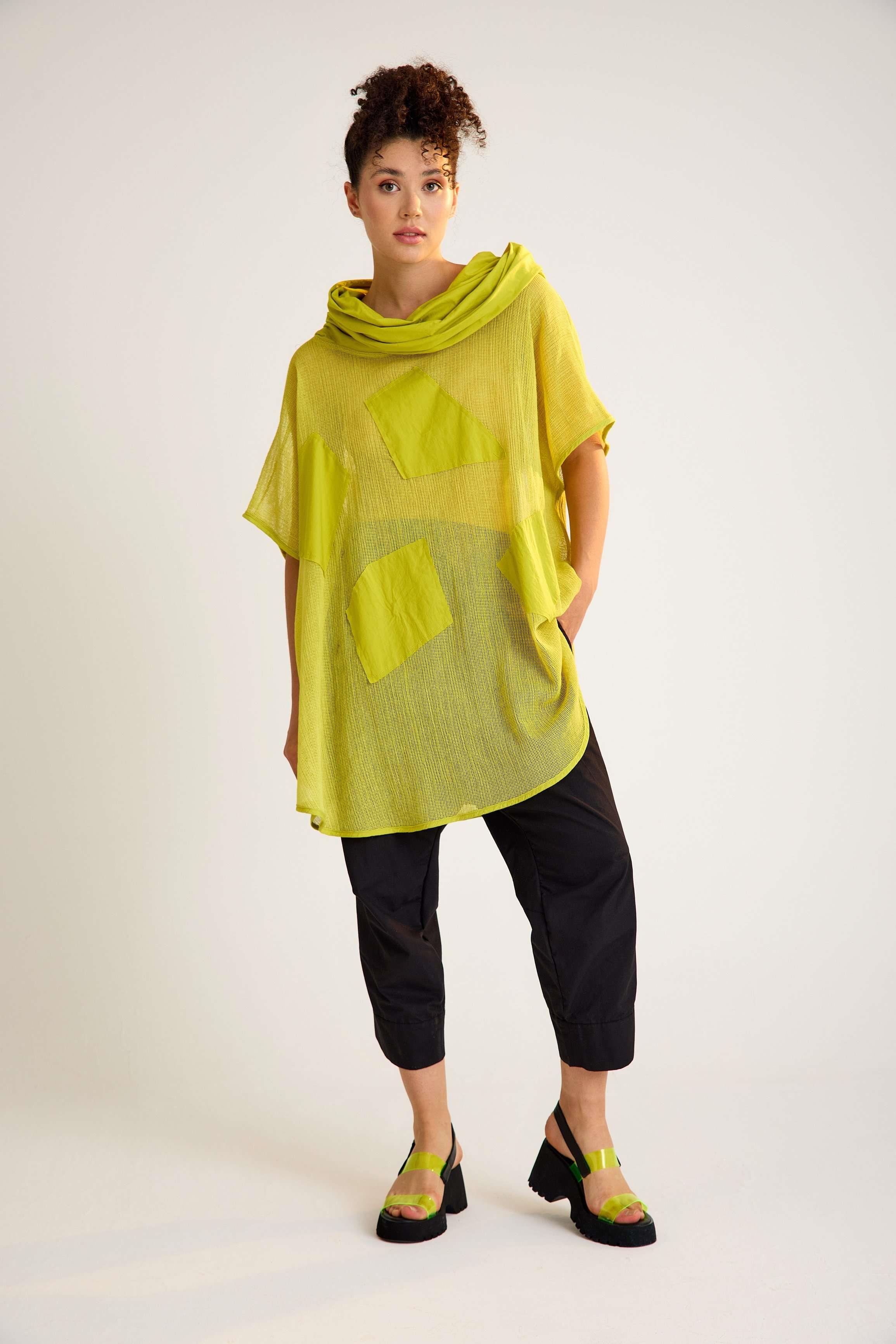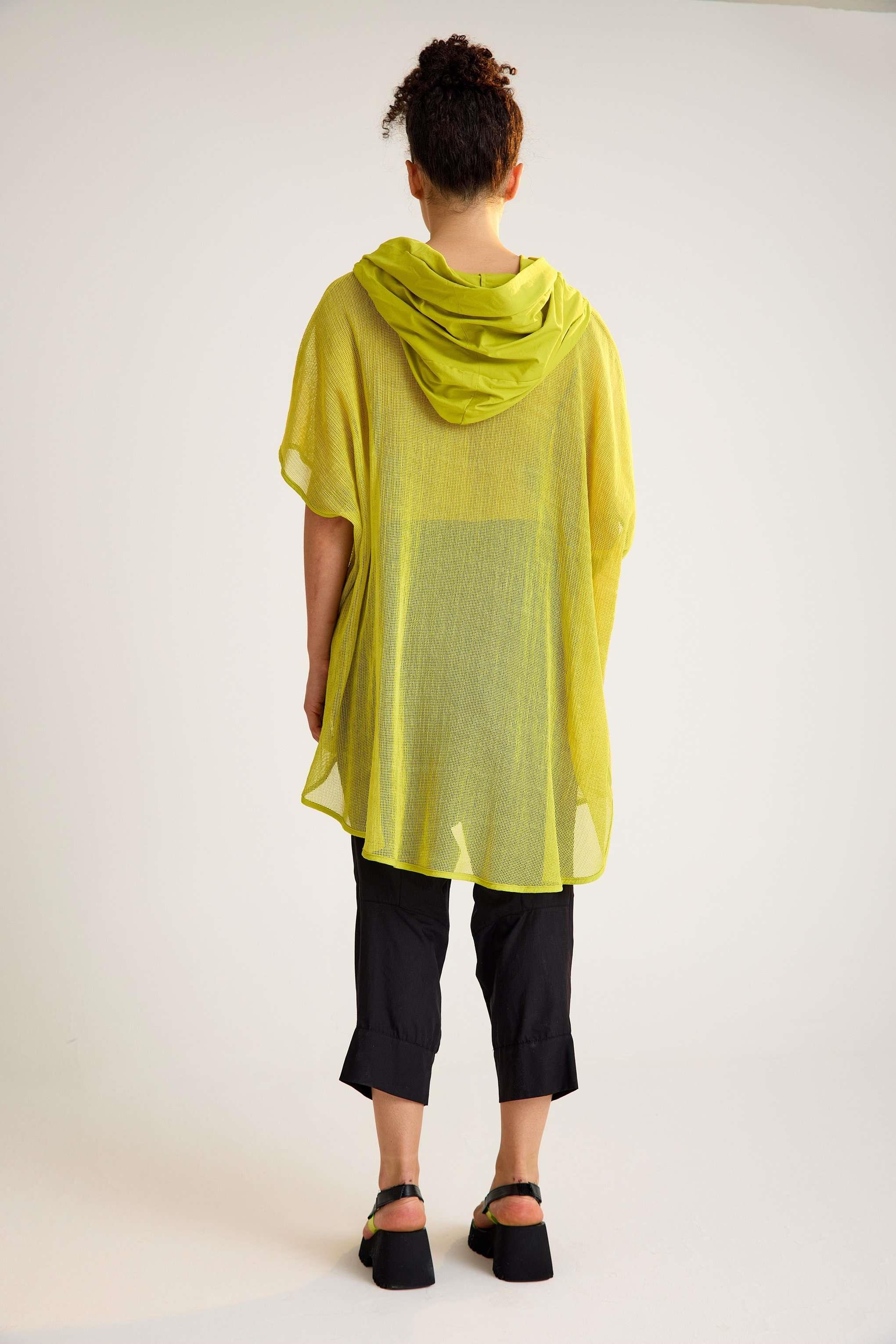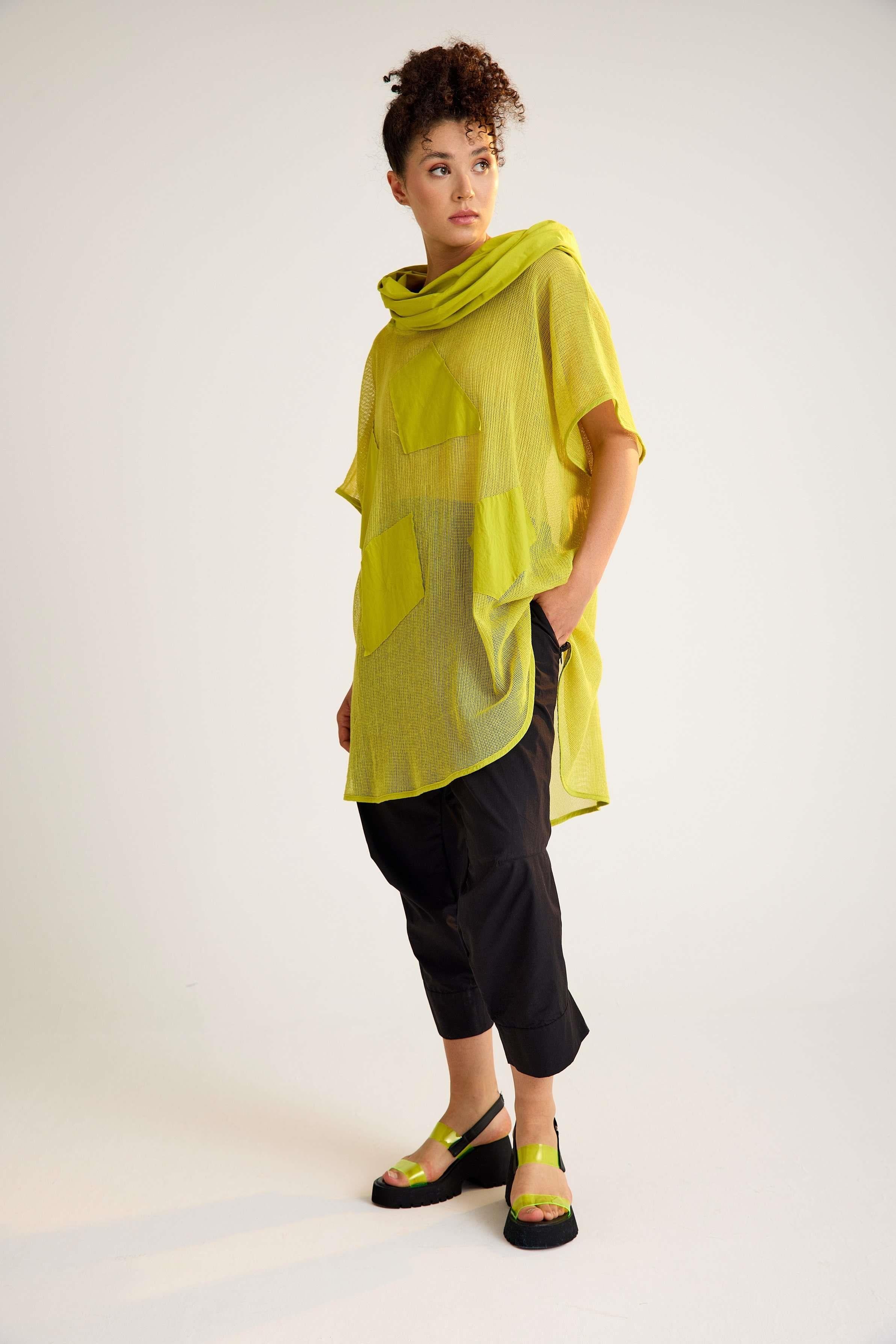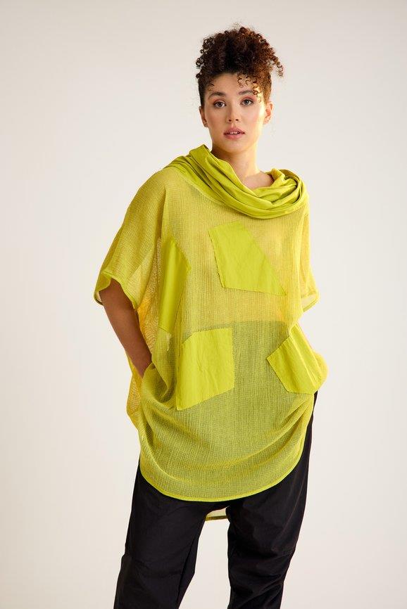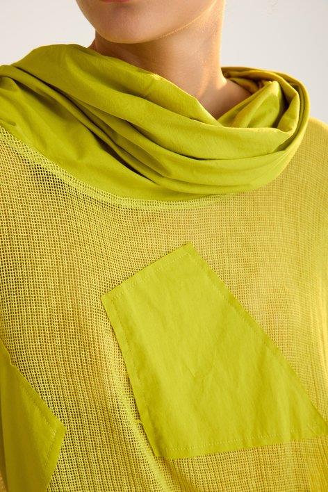 Oversize Cotton Tunic – Layered Textures, Relaxed Style This oversize cotton tunic is designed with a modern mix of fabrics, combining soft woven cotton with airy mesh details for a distinctive layered look. Featuring a relaxed hood and dropped shoulders, it offers effortless comfort with a contemporary edge. The tunic is finished with an asymmetrical silhouette that enhances its oversized shape, making it a versatile piece for layering and statement styling. Perfect for casual days or bold urban outfits, it balances comfort and individuality. Key features: Hooded design with dropped shoulders Mesh and woven cotton fabric combination Oversize fit with relaxed silhouette Modern layered texture effect 100% cotton composition A bold yet versatile wardrobe essential that fuses comfort with a stylish urban attitude.