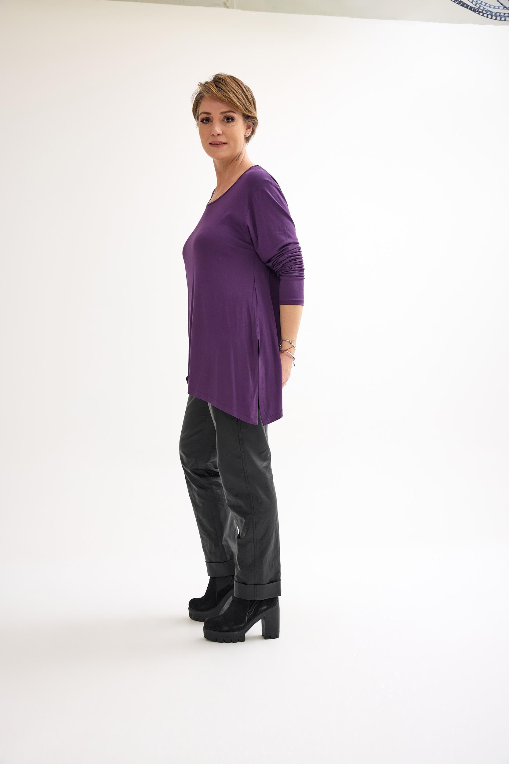 Long sleeve basic Viscose blouse with round neck, designed with a stretchy structure for comfort and versatile daily wear.